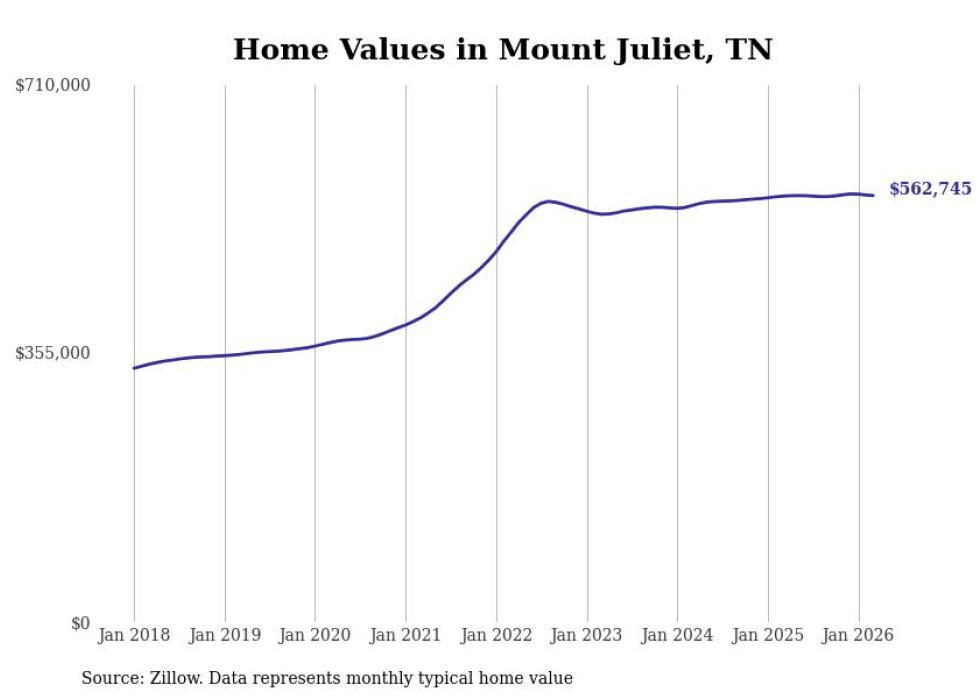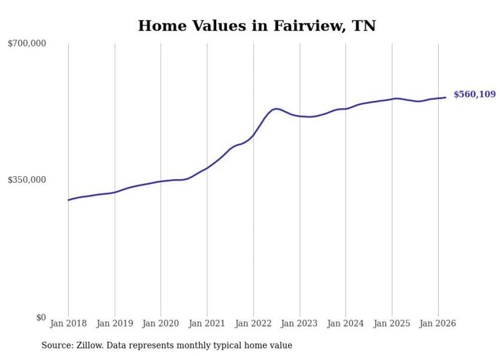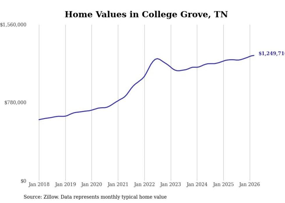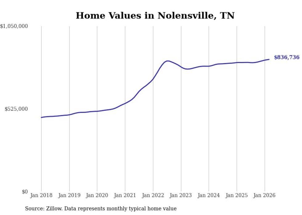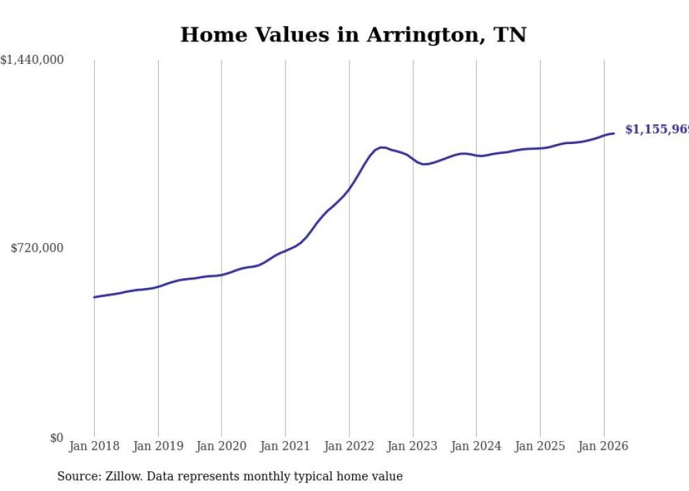 Stacker compiled a list of cities with the most expensive homes in Tennessee using data from Zillow. Cities are ranked by the Zillow Home Values Index for all homes as of March 2026. The charts in this story were created automatically using Matplotlib.