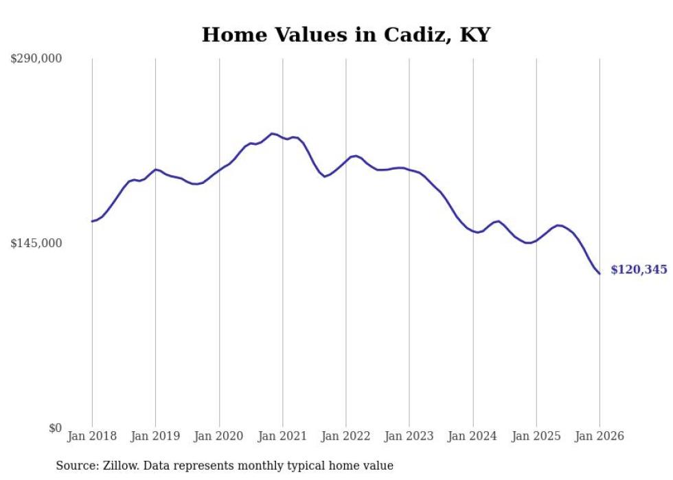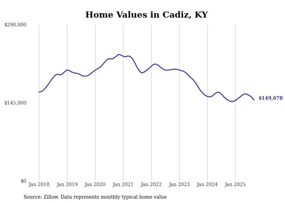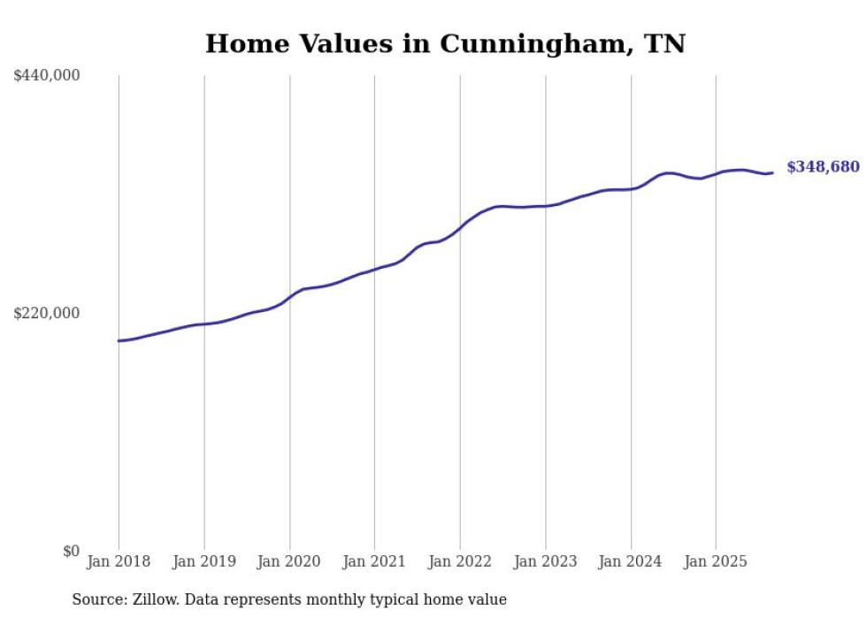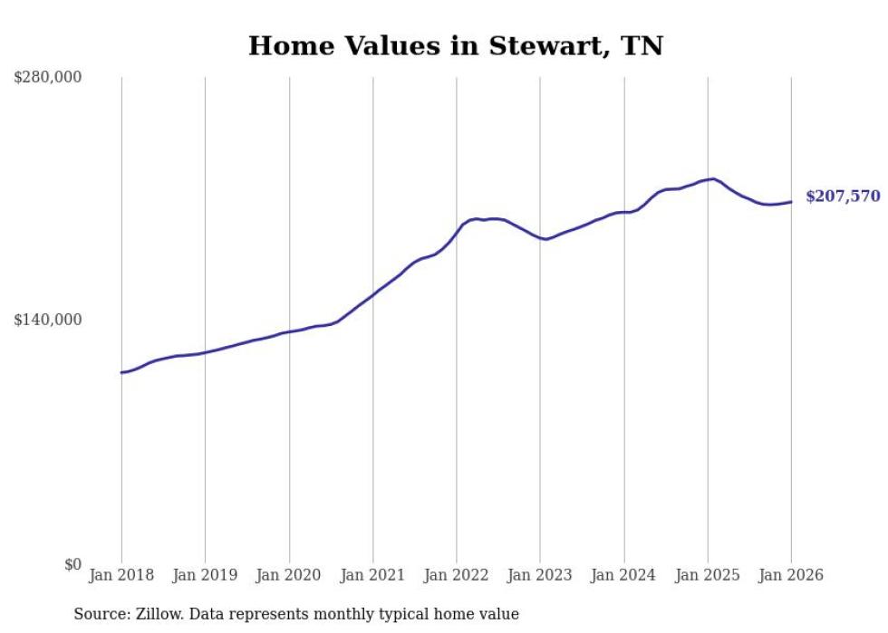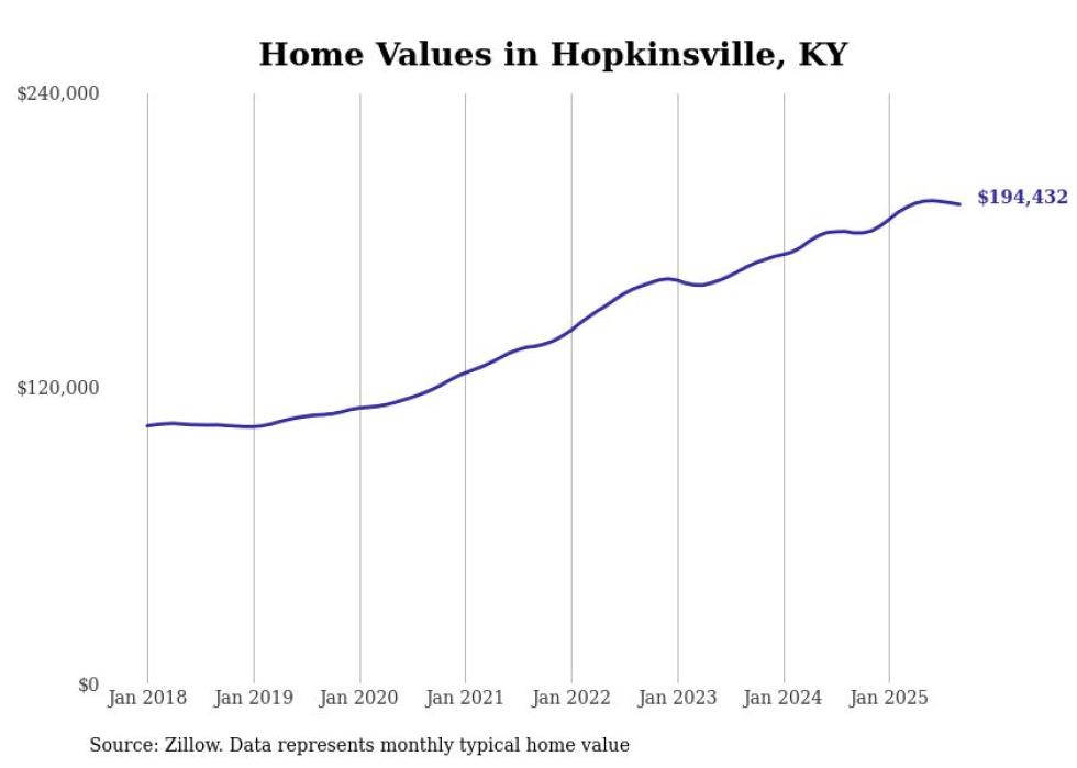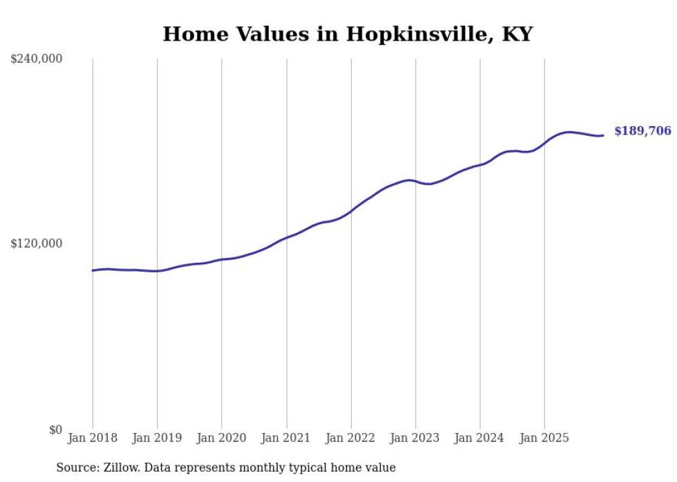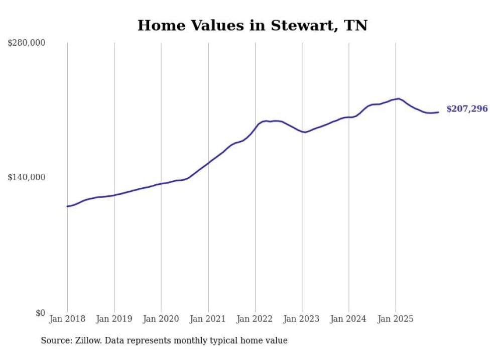 Stacker compiled a list of cities with the most expensive homes in the Clarksville, TN-KY metro area using data from Zillow. Charts show the monthly typical home value since January 2018.