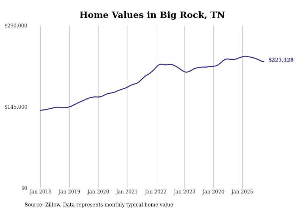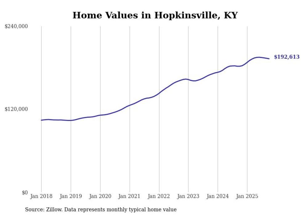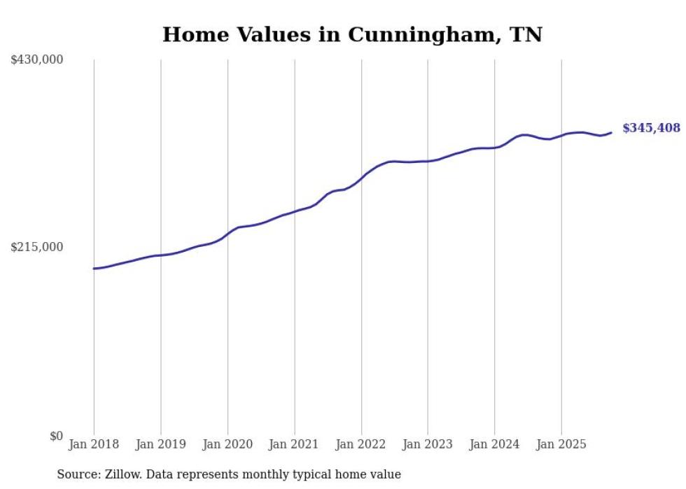 Stacker compiled a list of cities with the most expensive homes in the Clarksville metro area using data from Zillow. Charts show the monthly typical home value since January 2018. All 20 cities and towns with data available were included in the list.