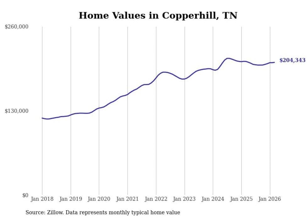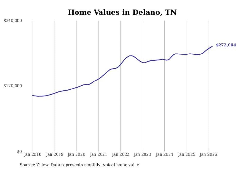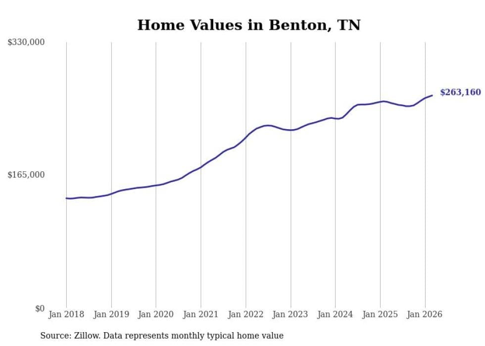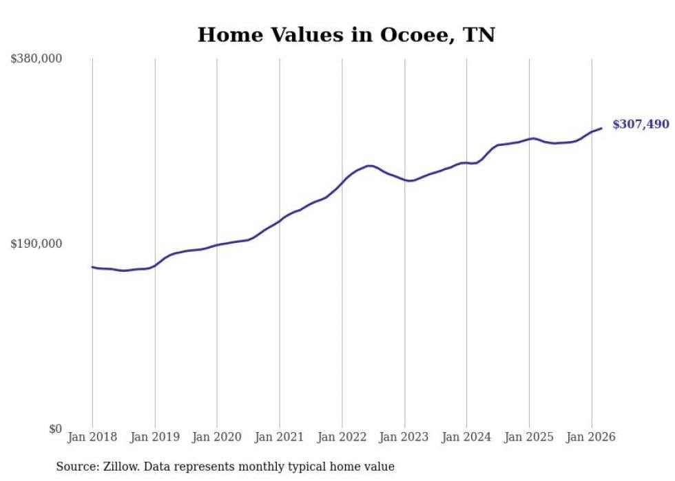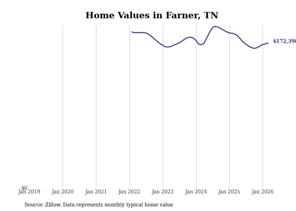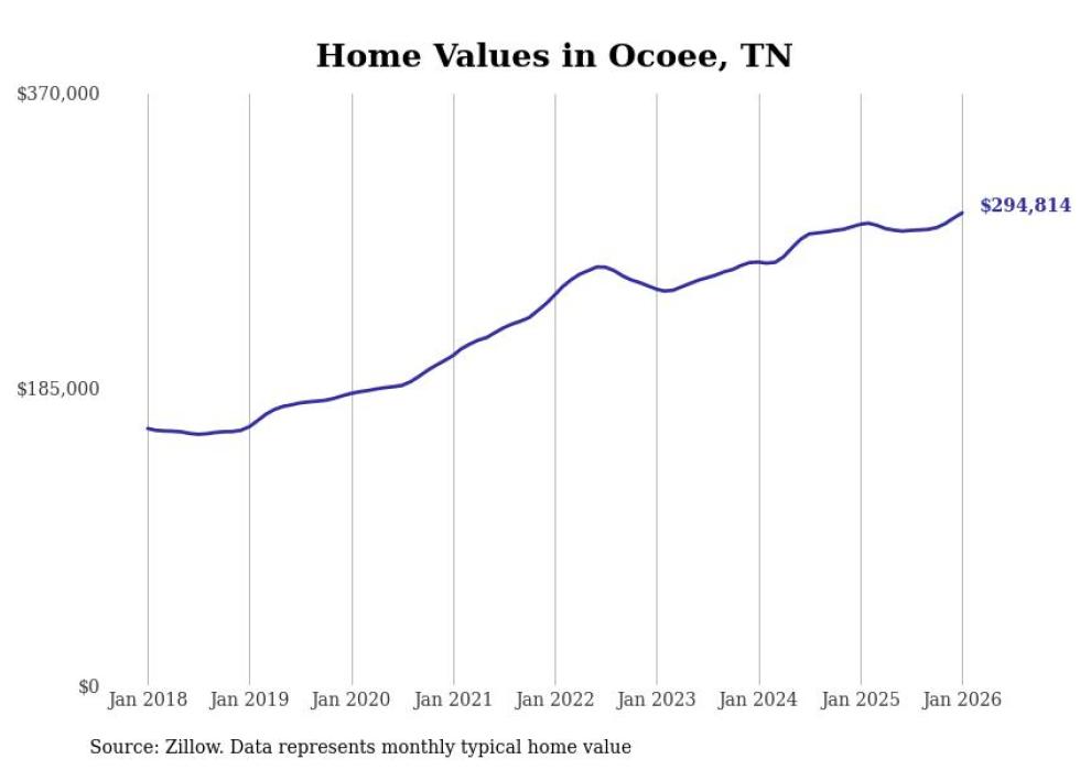 Stacker compiled a list of cities with the most expensive homes in the Cleveland, Tennessee metro area using data from Zillow. Charts show the monthly typical home value since January 2018. All 12 cities and towns with data available were included in the list.