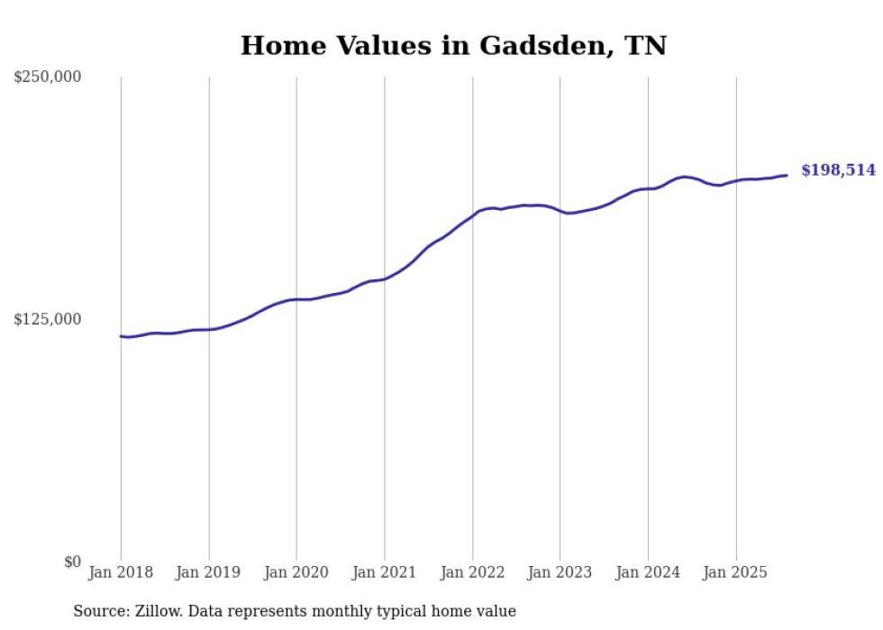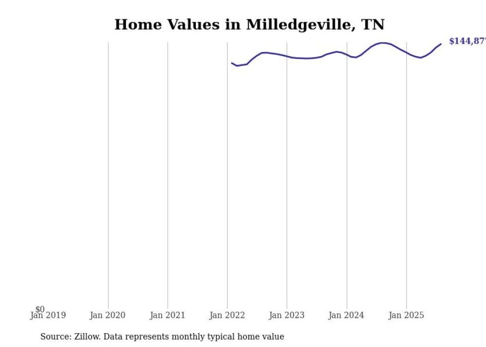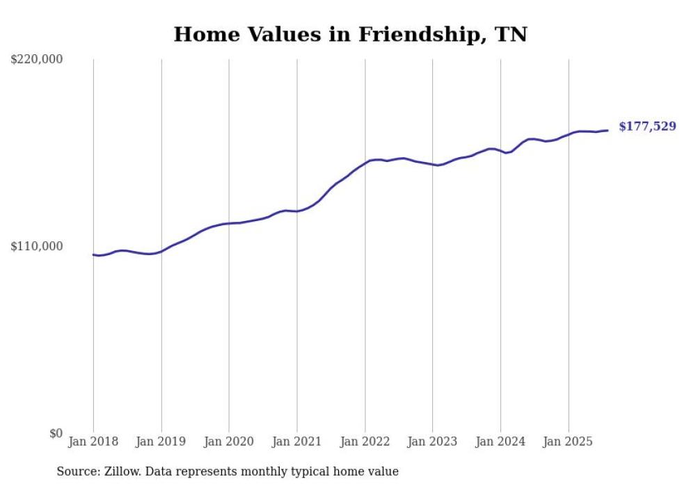 Stacker compiled a list of cities with the most expensive homes in the Jackson, Tennessee metro area using data from Zillow. Charts show the monthly typical home value since January 2018. All 29 cities and towns with data available were included in the list.