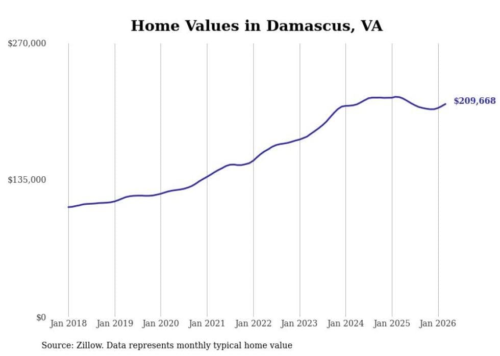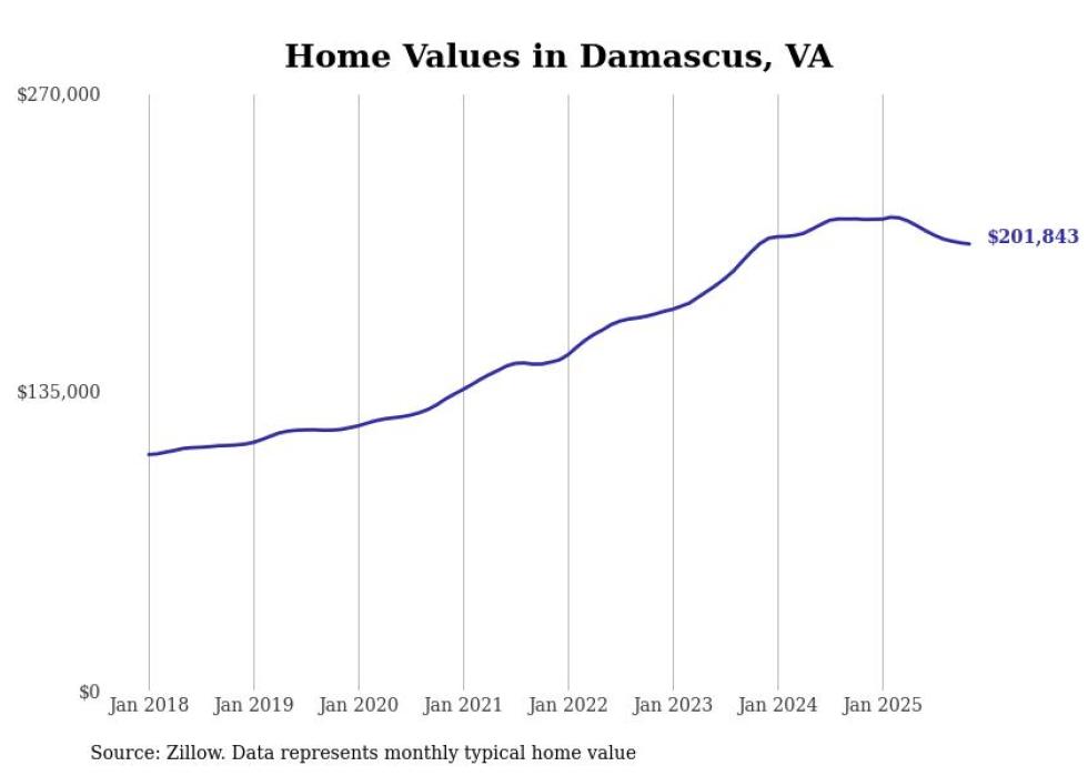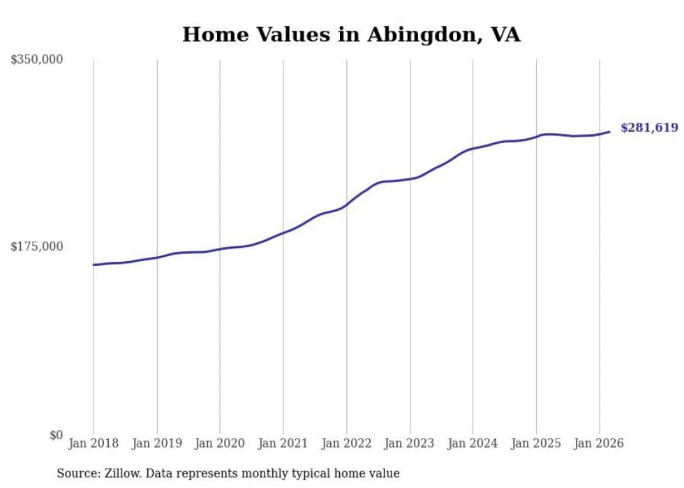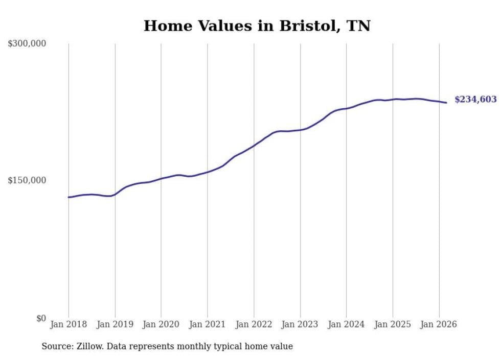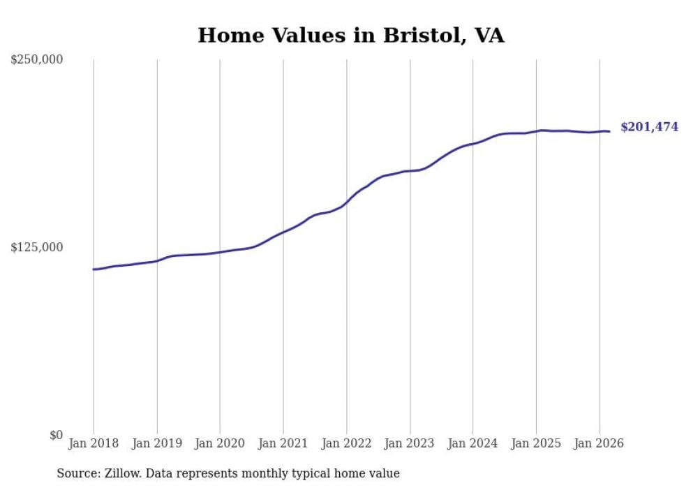 Stacker compiled a list of cities with the most expensive homes in the Kingsport-Bristol, TN-VA metro area using data from Zillow. Charts show the monthly typical home value since January 2018.