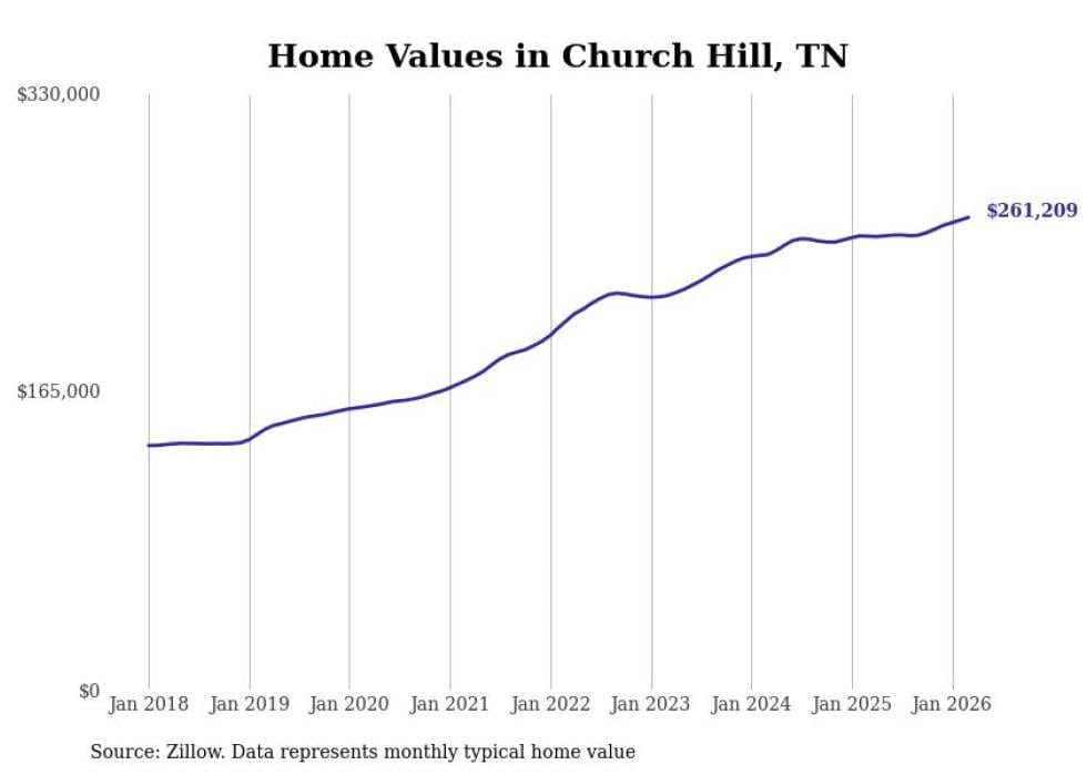 Cities with the fastest-growing home prices in the Kingsport metro area