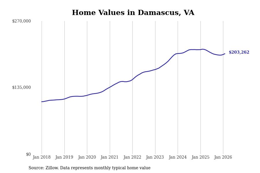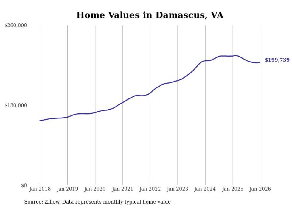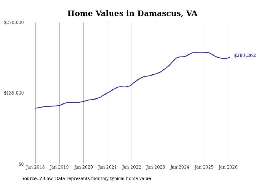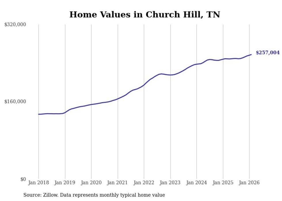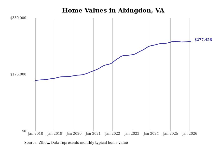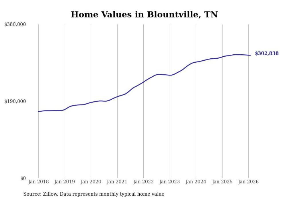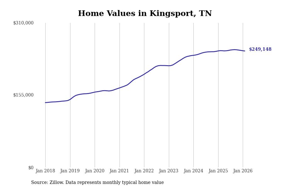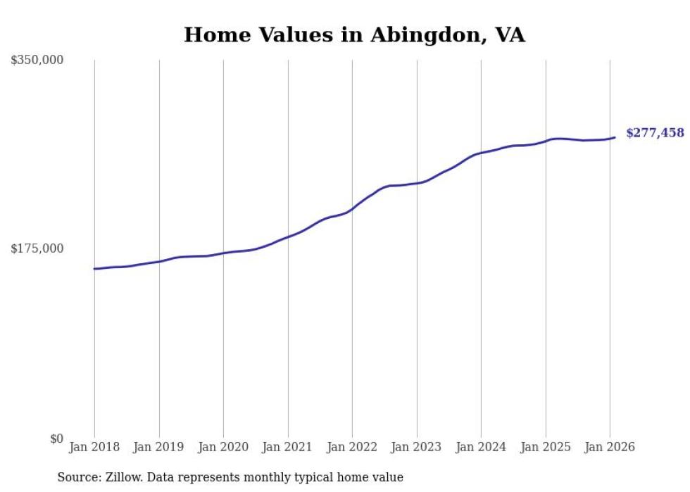 Stacker compiled a list of cities with the most expensive homes in the Kingsport metro area using data from Zillow. Charts show the monthly typical home value since January 2018. All 27 cities and towns with data available were included in the list.
