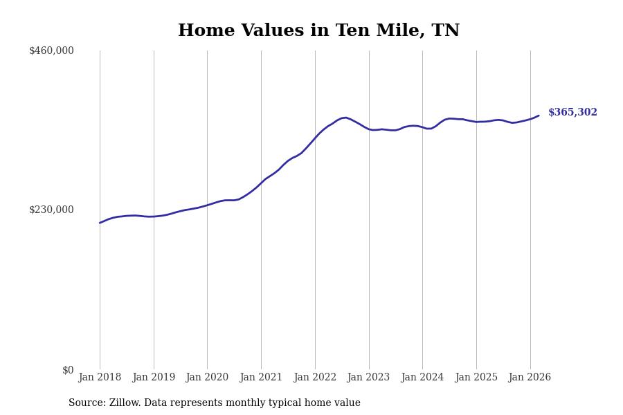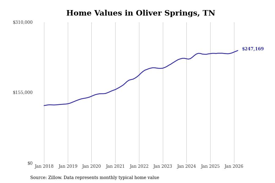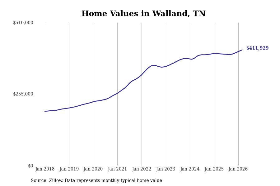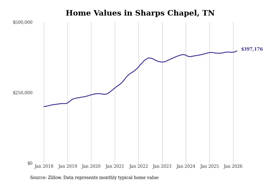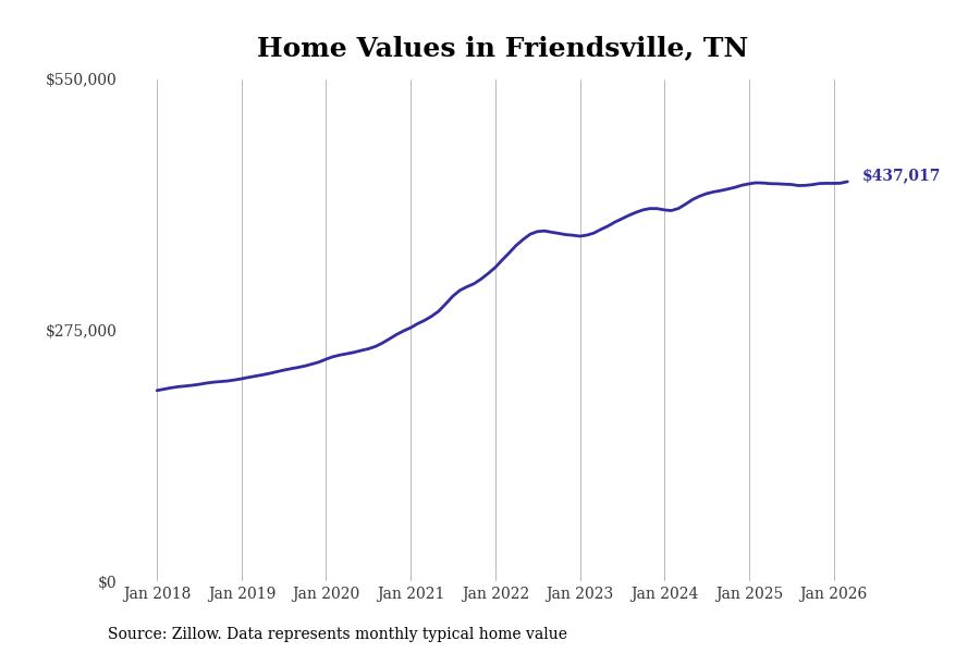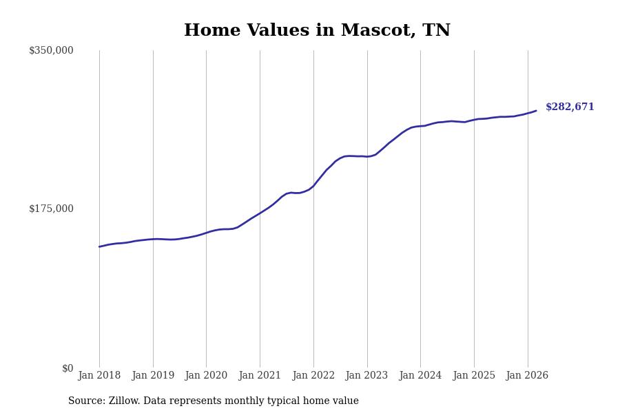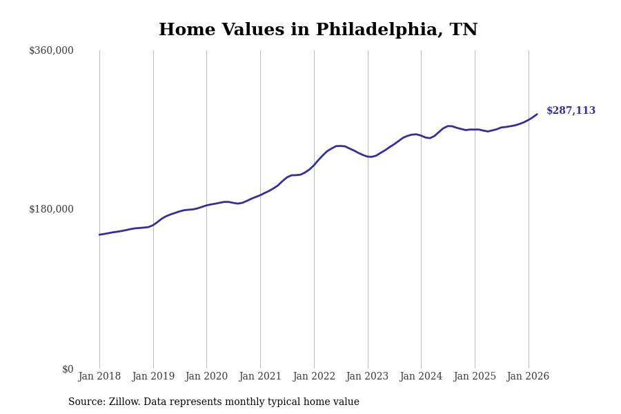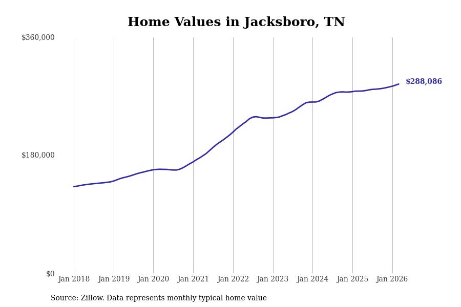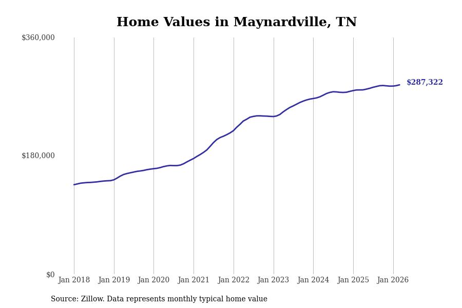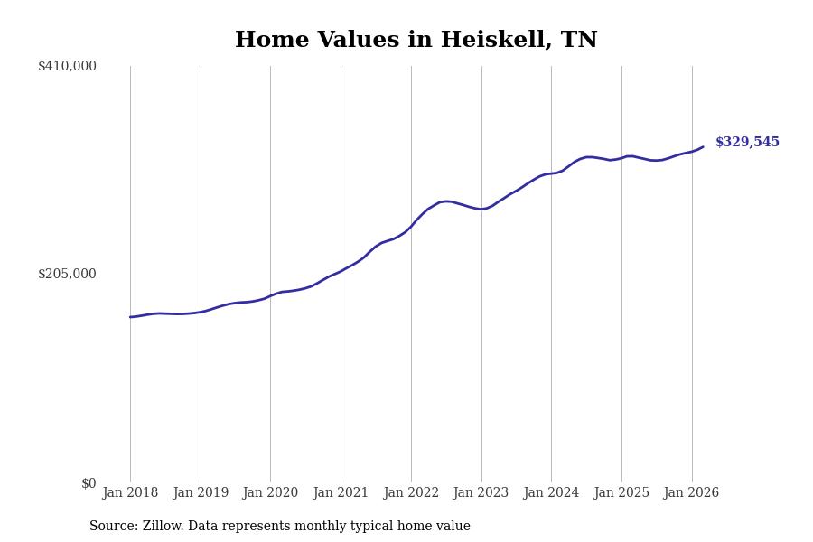 Stacker compiled a list of cities with the most expensive homes in the Knoxville metro area using data from Zillow. Charts show the monthly typical home value since January 2018. Data was available for 47 cities and towns.