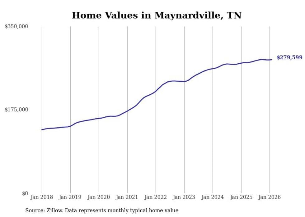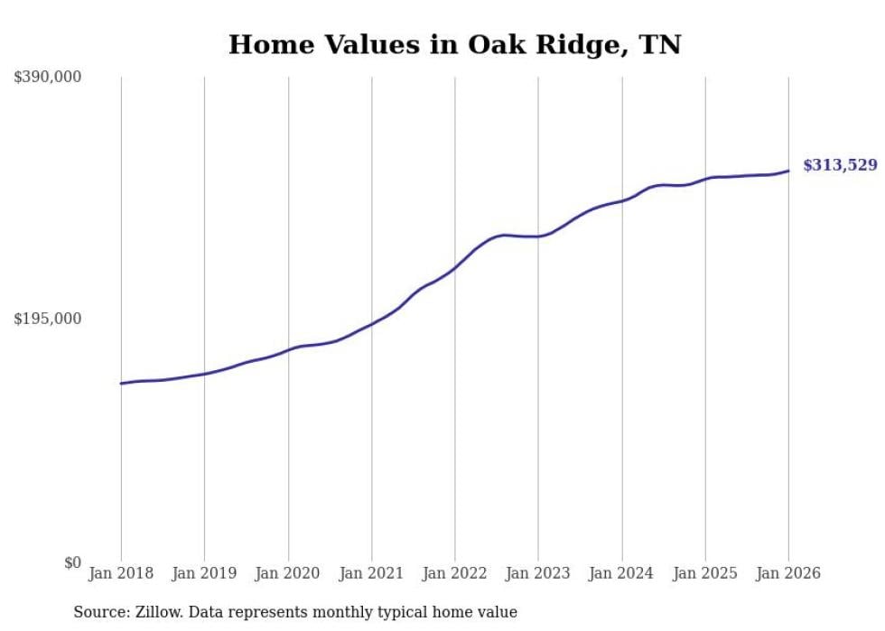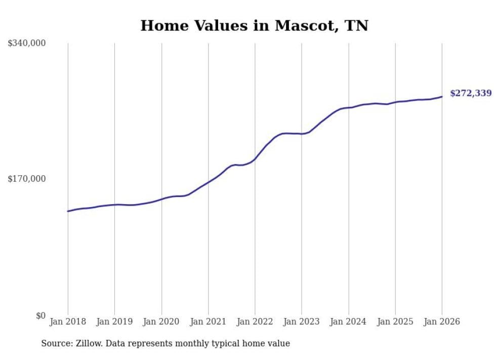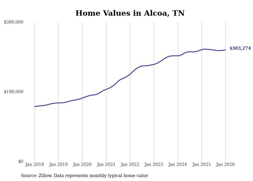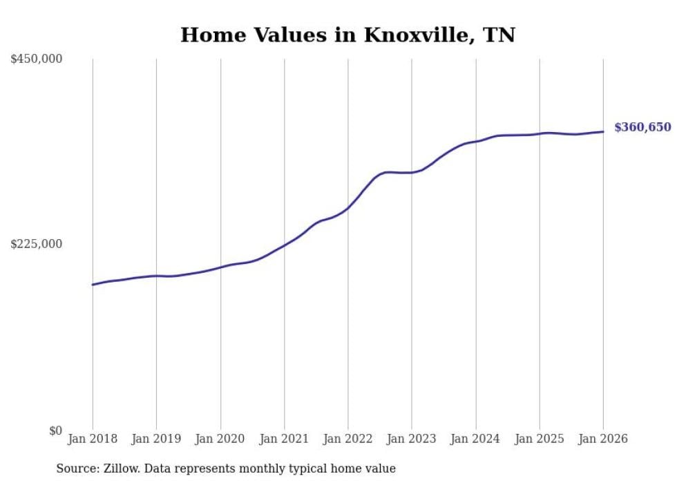 Stacker compiled a list of cities with the most expensive homes in the Knoxville metro area using data from Zillow. Charts show the monthly typical home value since January 2018. Data was available for 48 cities and towns.