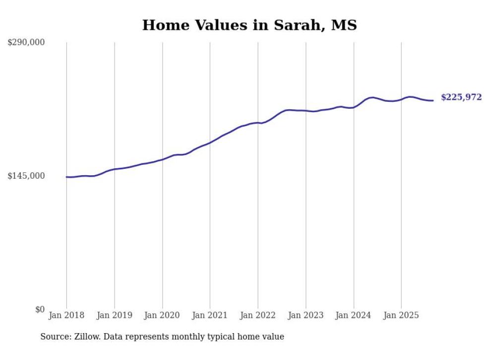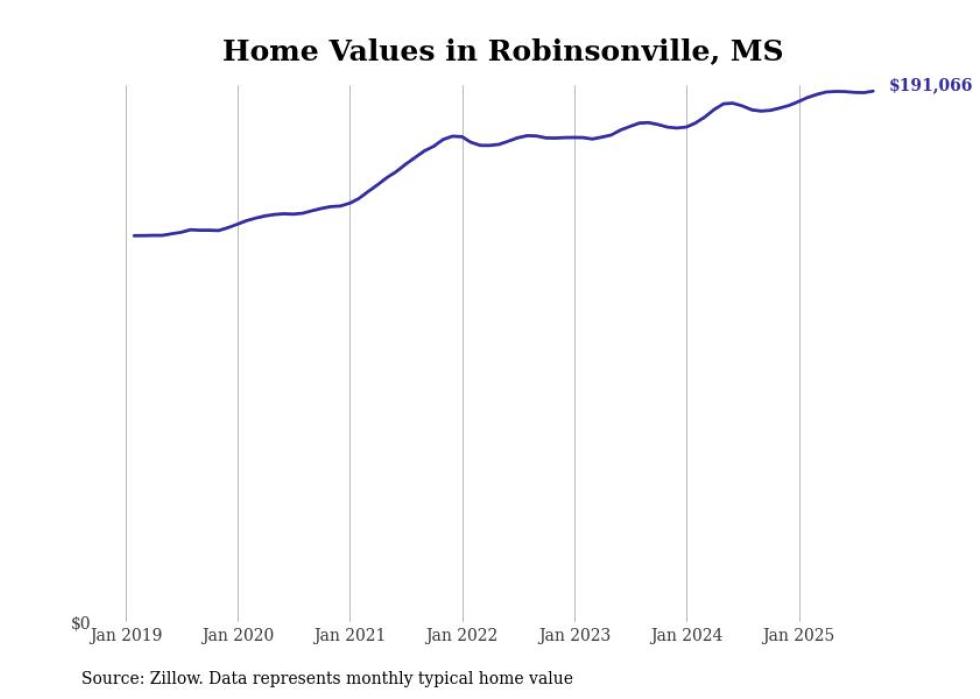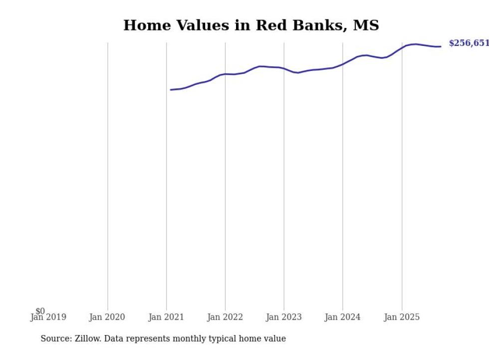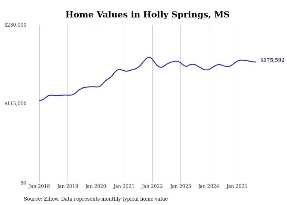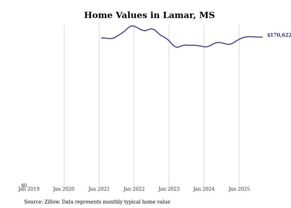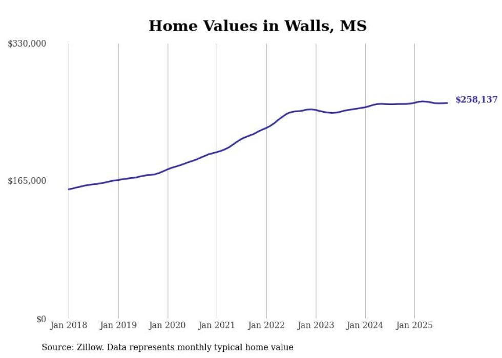 Stacker compiled a list of cities with the most expensive homes in the Memphis, TN-MS-AR metro area using data from Zillow. Charts show the monthly typical home value since January 2018.