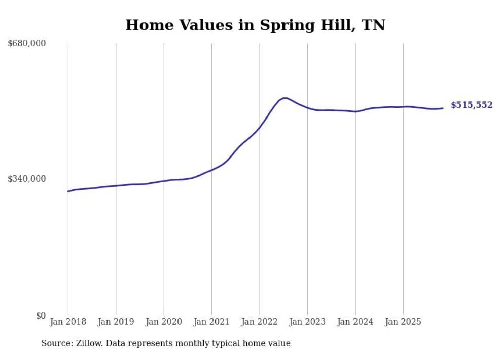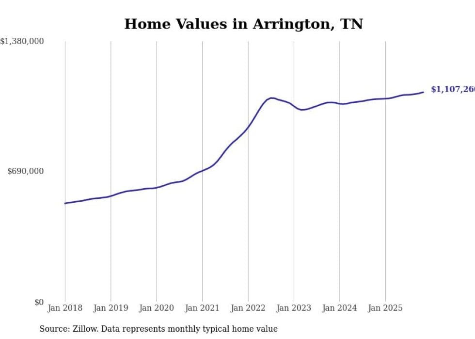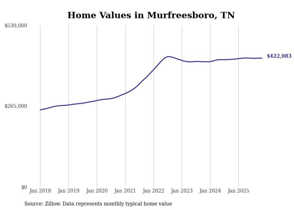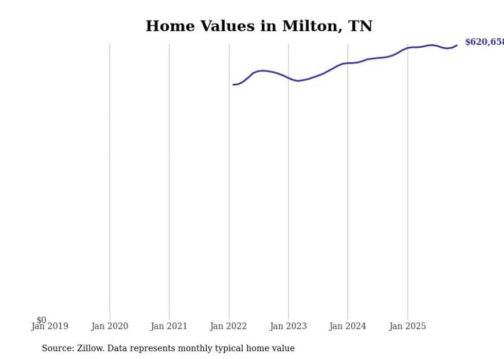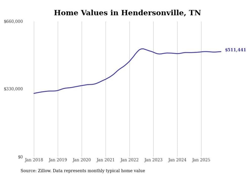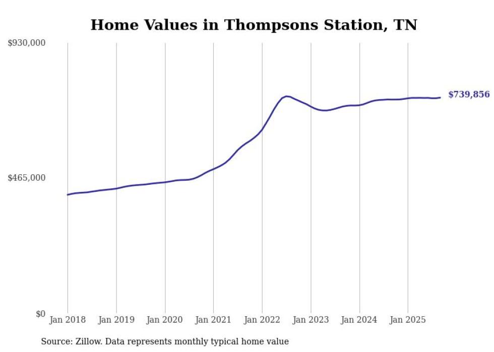 Stacker compiled a list of cities with the most expensive homes in the Nashville metro area using data from Zillow. Charts show the monthly typical home value since January 2018. Data was available for 75 cities and towns.