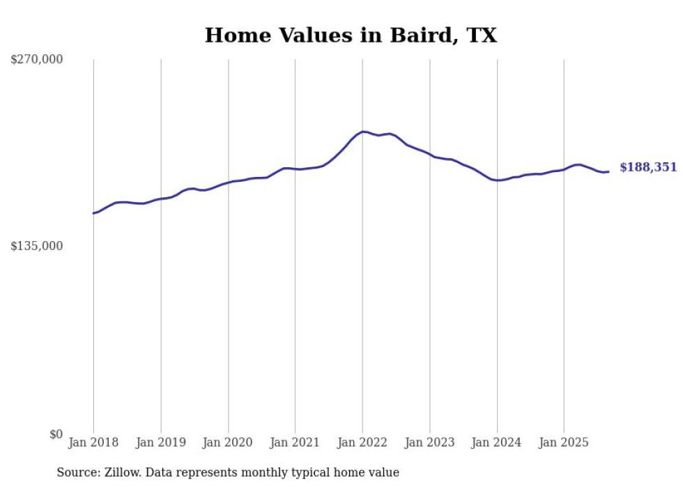 Stacker compiled a list of cities with the most expensive homes in the Abilene, TX metro area using data from Zillow. Charts show the monthly typical home value since January 2018.