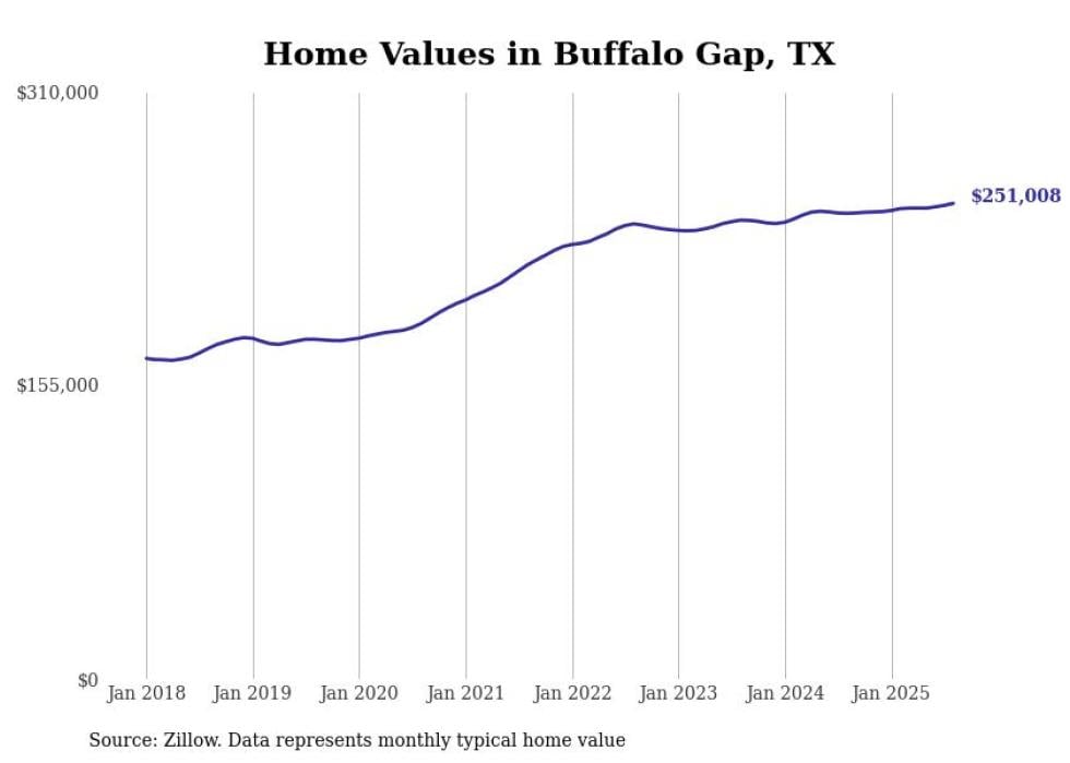 Stacker compiled a list of cities with the most expensive homes in the Abilene metro area using data from Zillow. Charts show the monthly typical home value since January 2018. All 15 cities and towns with data available were included in the list.