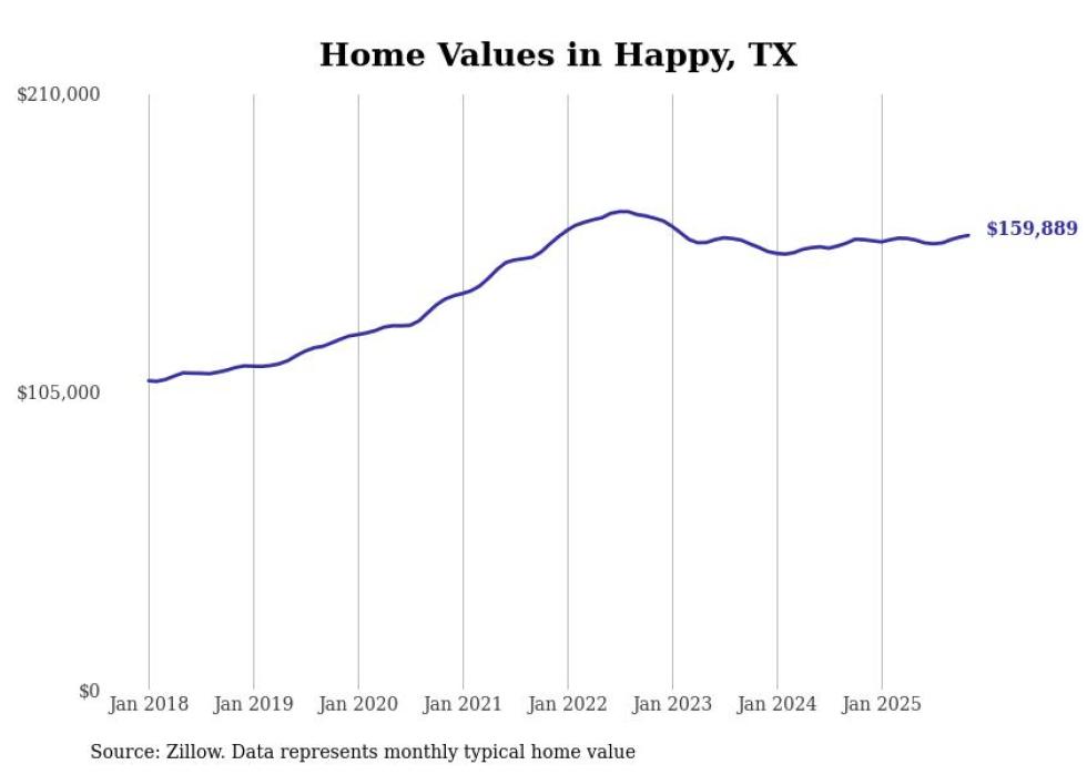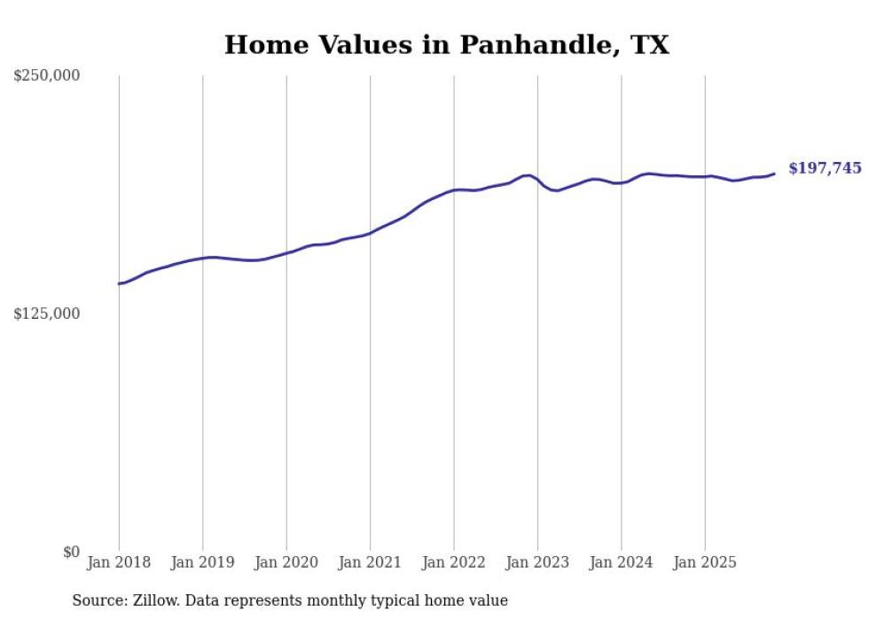 Stacker compiled a list of cities with the most expensive homes in the Amarillo, TX metro area using data from Zillow. Charts show the monthly typical home value since January 2018.