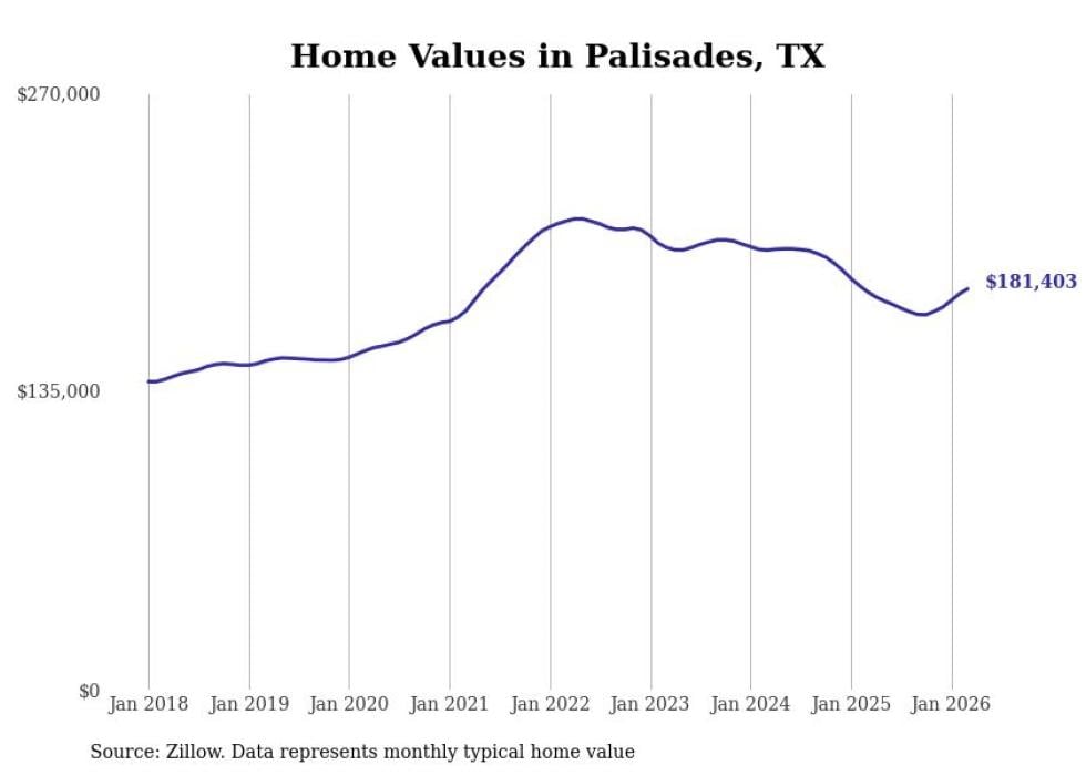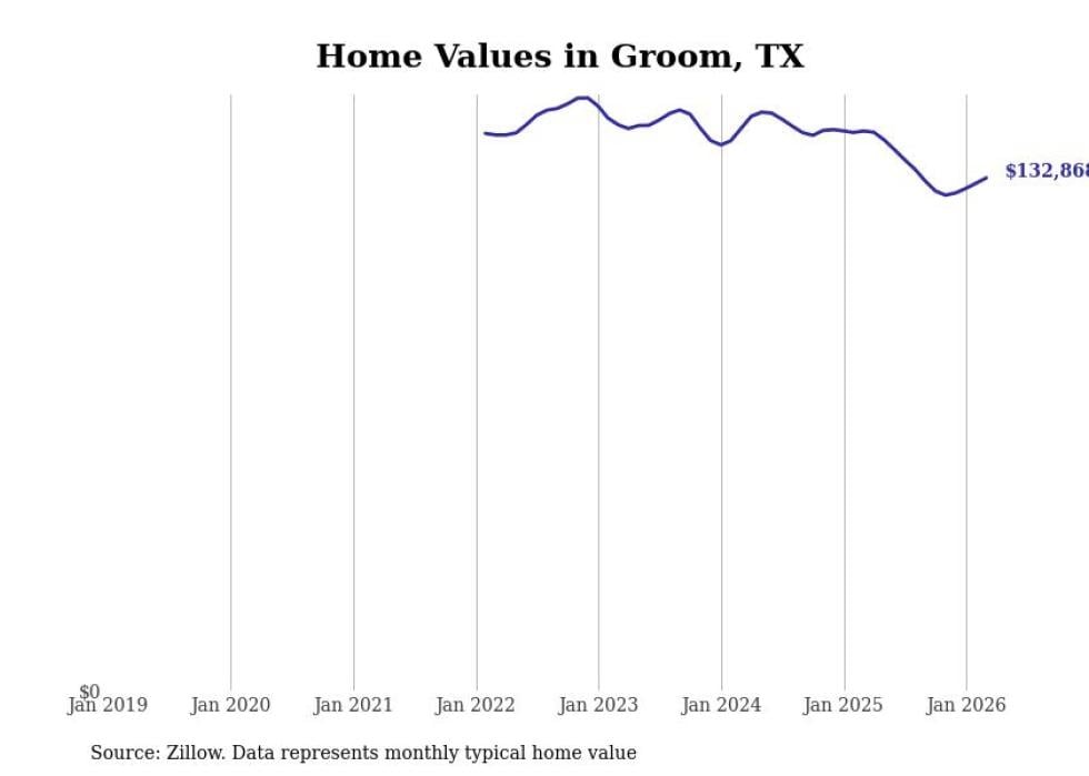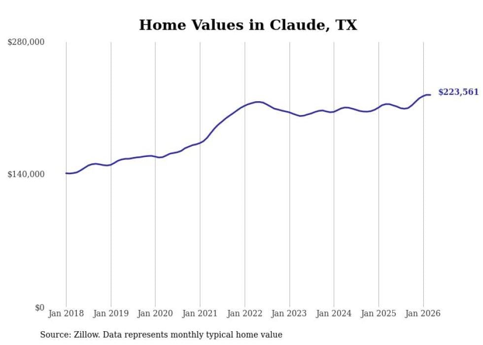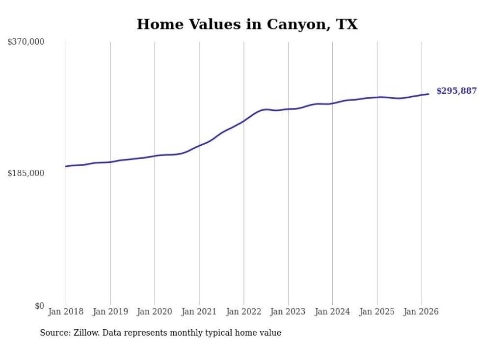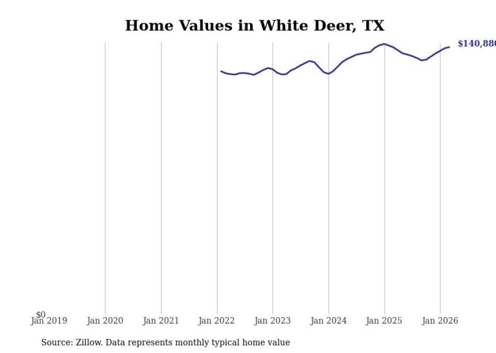 Stacker compiled a list of cities with the most expensive homes in the Amarillo metro area using data from Zillow. Charts show the monthly typical home value since January 2018. All 10 cities and towns with data available were included in the list.