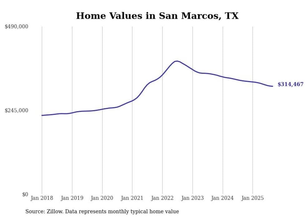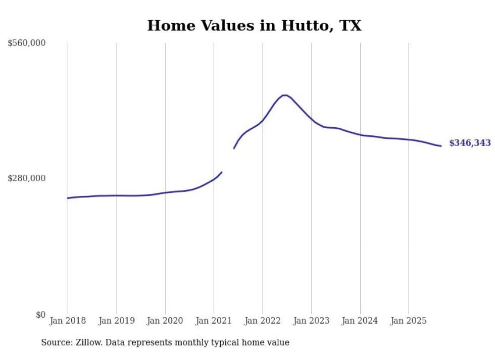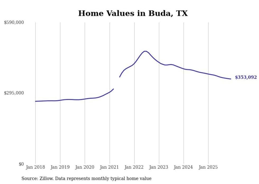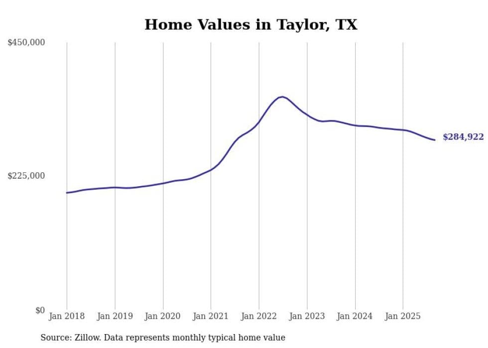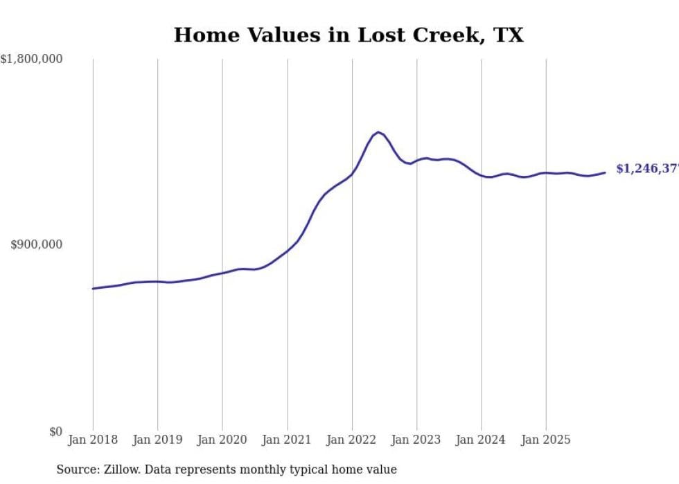 Stacker compiled a list of cities with the most expensive homes in the Austin-Round Rock-Georgetown, TX metro area using data from Zillow. Charts show the monthly typical home value since January 2018.