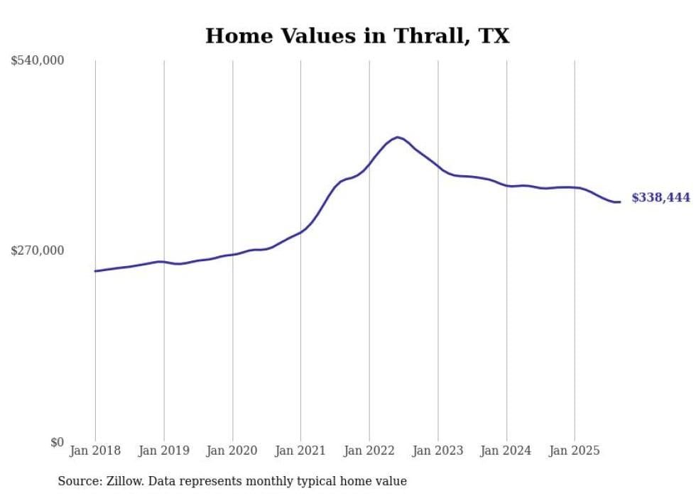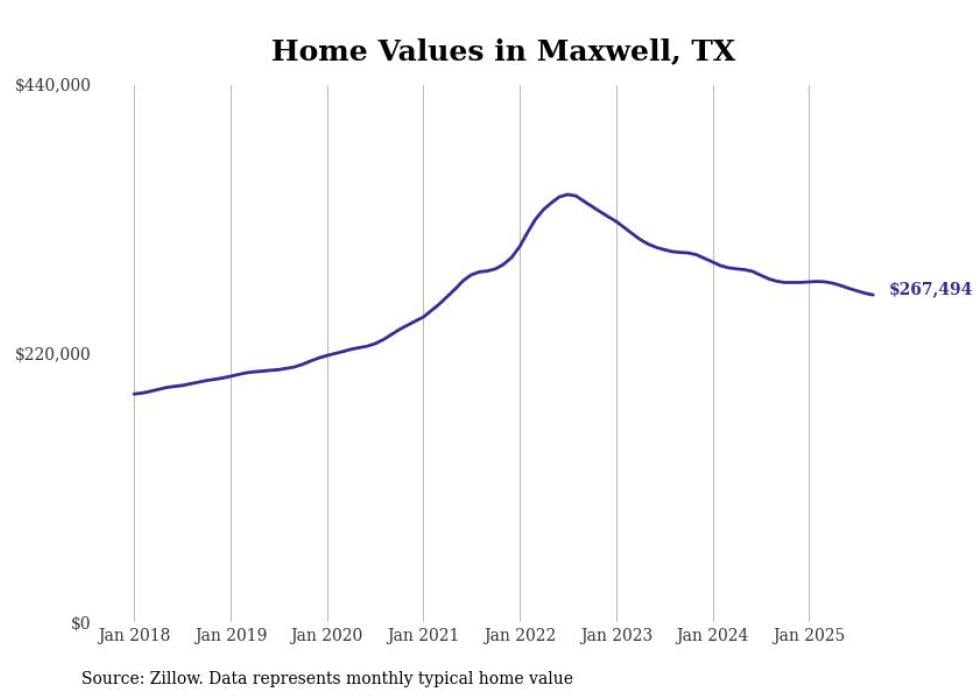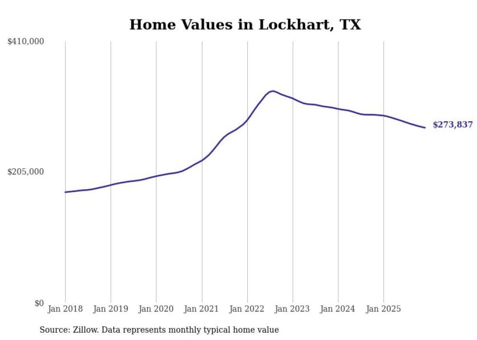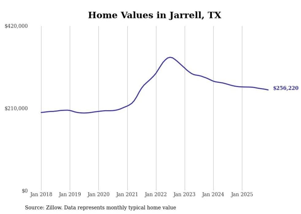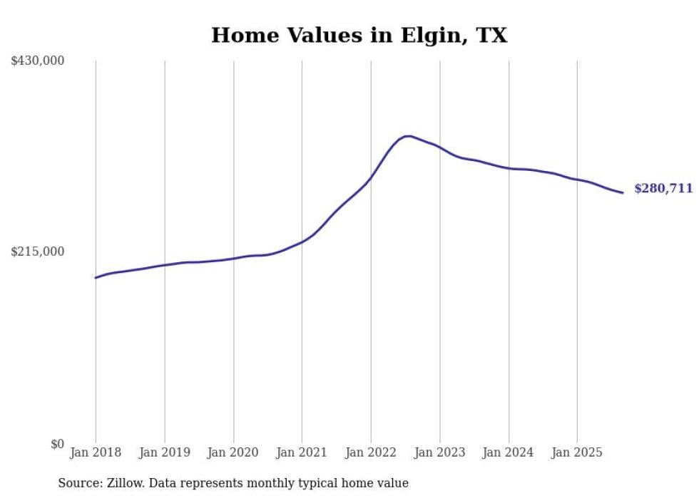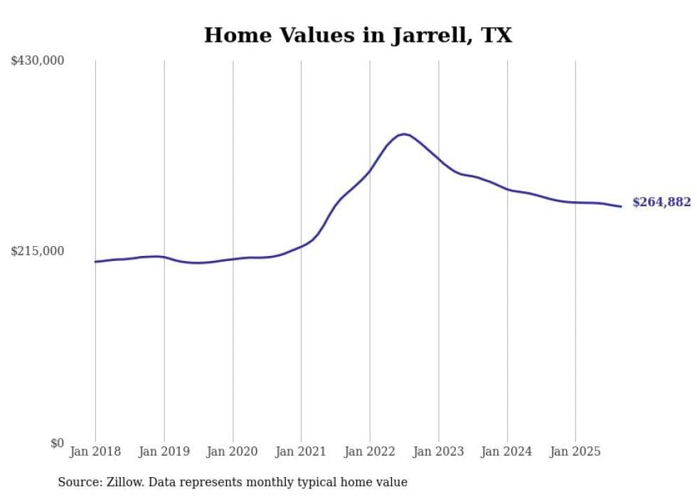 Stacker compiled a list of cities with the most expensive homes in the Austin-Round Rock-Georgetown, TX metro area using data from Zillow. Charts show the monthly typical home value since January 2018.