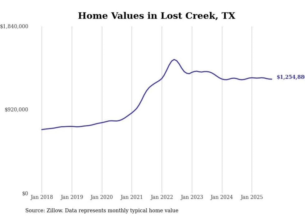 - Typical home value: $1,254,880 (#3 most expensive city in metro)