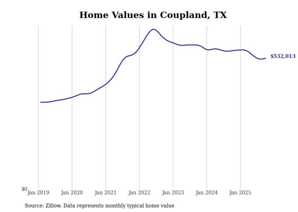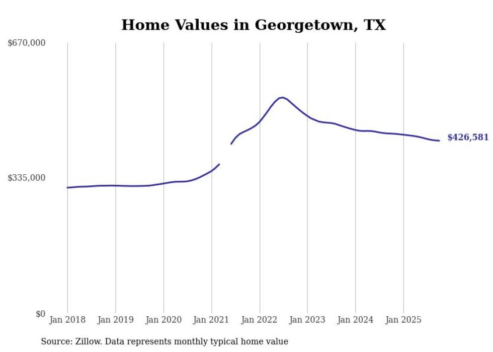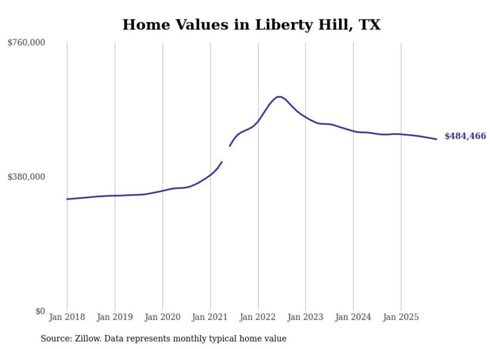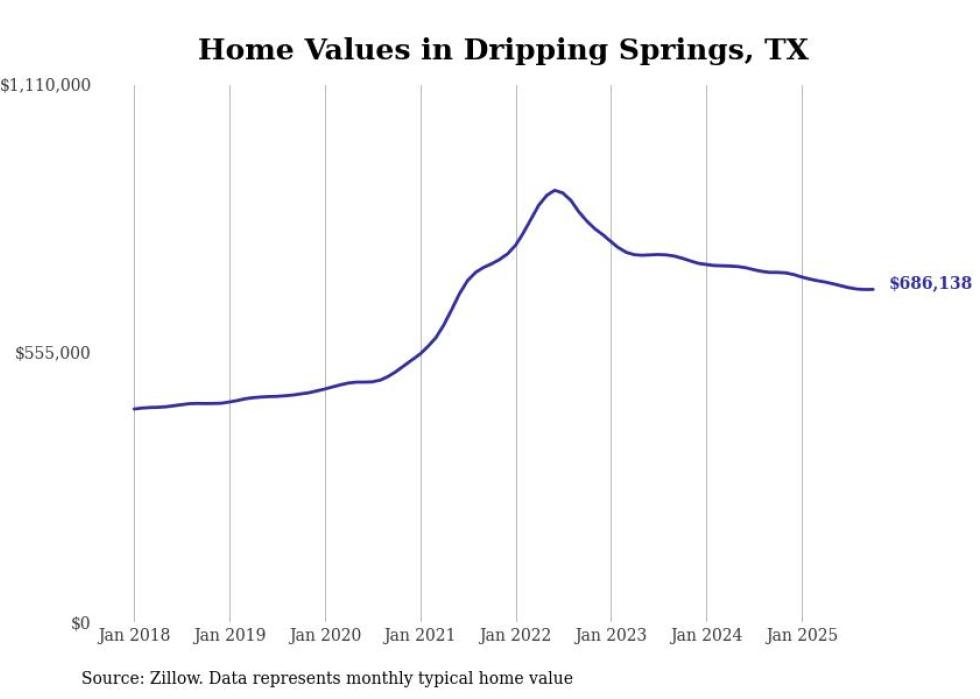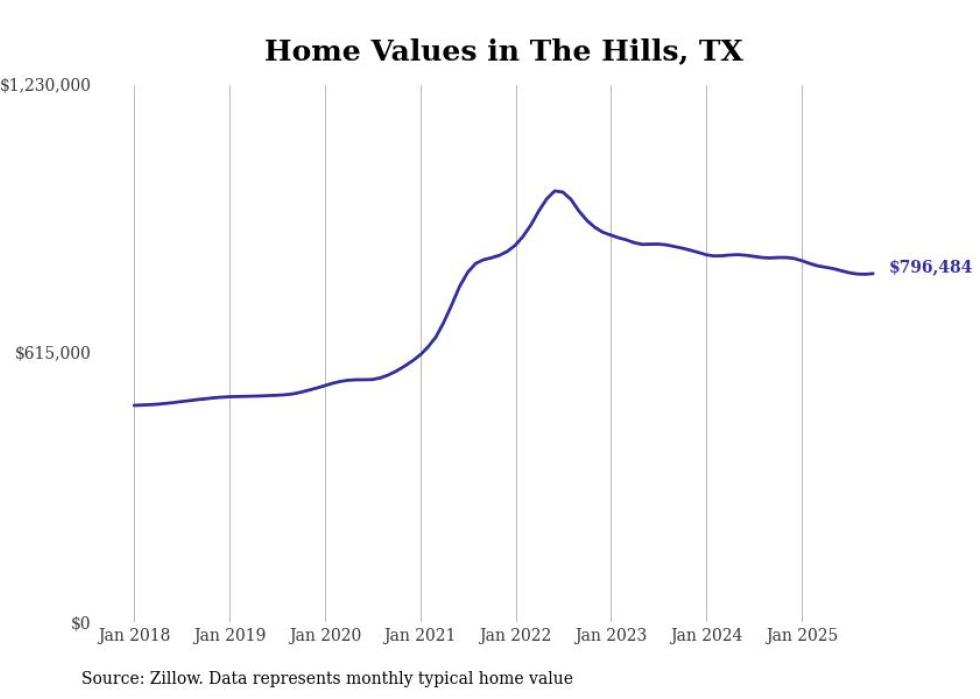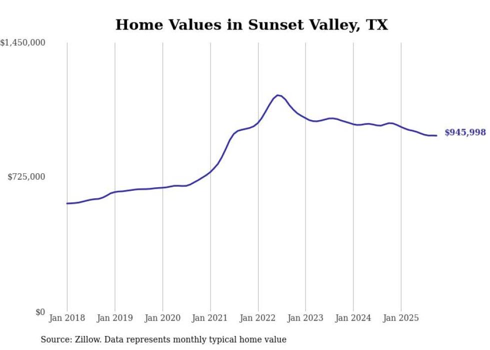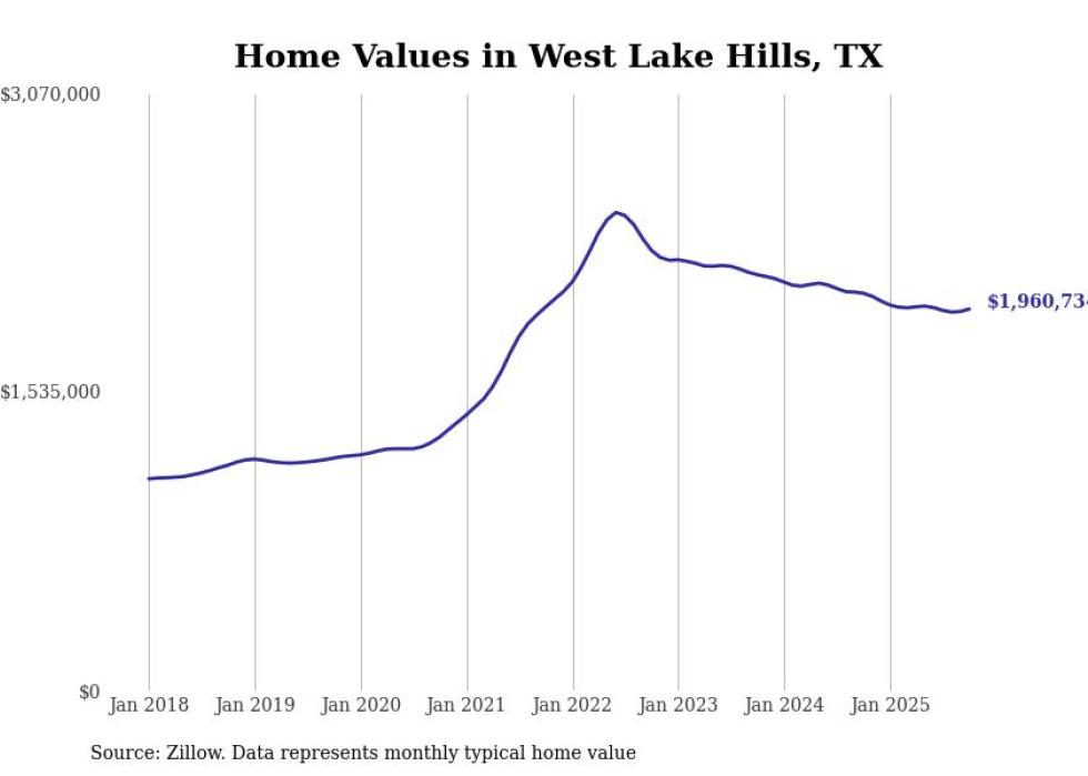 Stacker compiled a list of cities with the most expensive homes in the Austin metro area using data from Zillow. Charts show the monthly typical home value since January 2018. Data was available for 53 cities and towns.