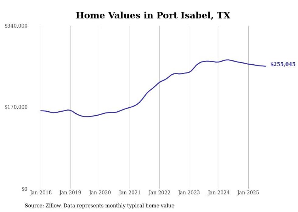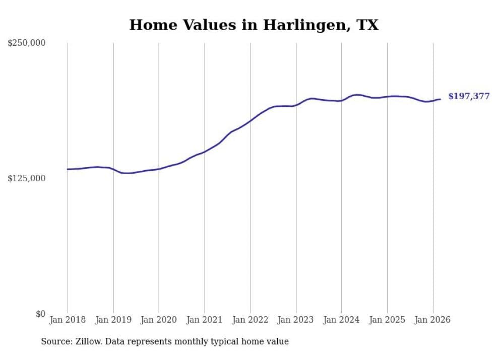 Stacker compiled a list of cities with the most expensive homes in the Brownsville-Harlingen, TX metro area using data from Zillow. Charts show the monthly typical home value since January 2018.