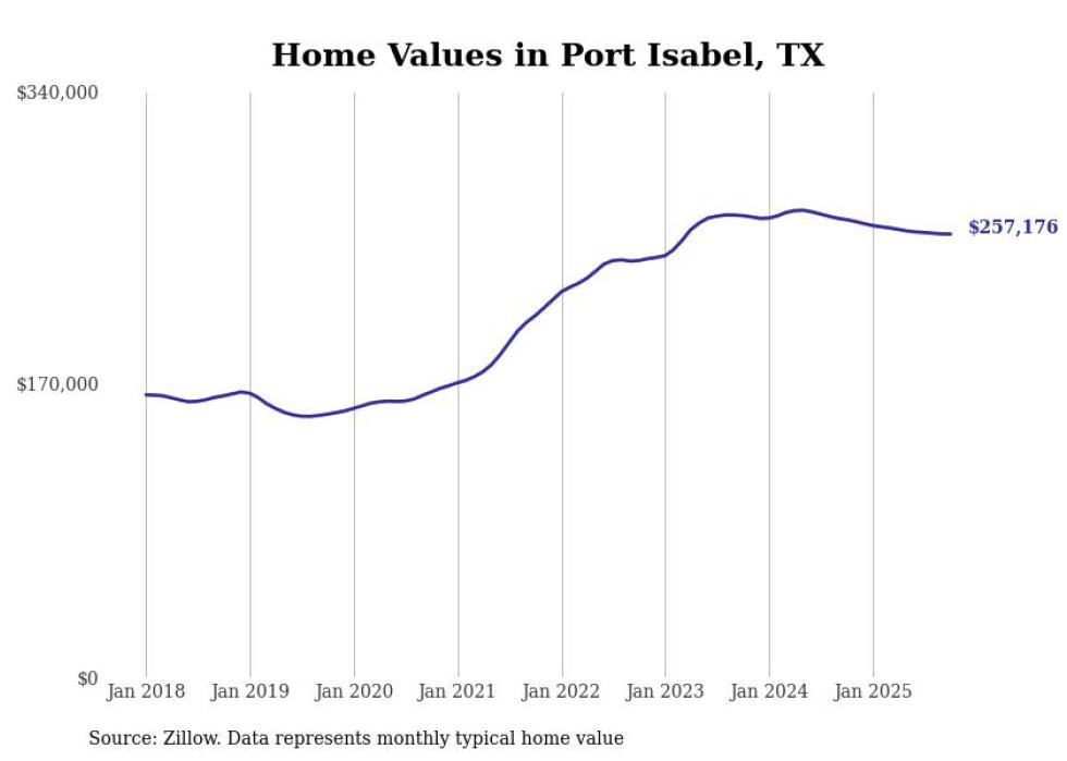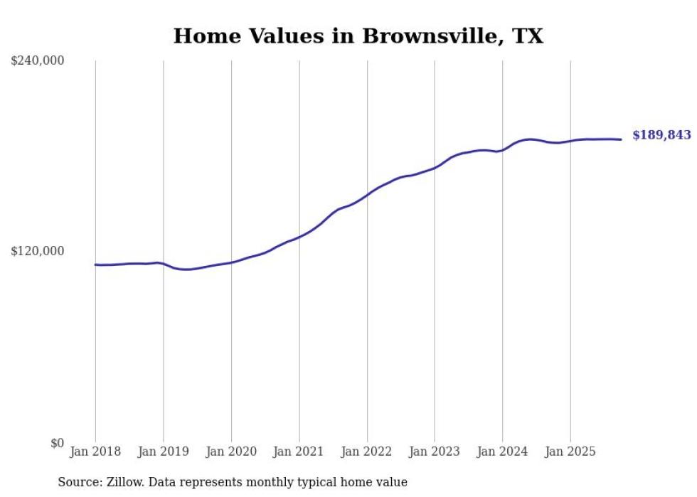 Stacker compiled a list of cities with the most expensive homes in the Brownsville metro area using data from Zillow. Charts show the monthly typical home value since January 2018. All 12 cities and towns with data available were included in the list.