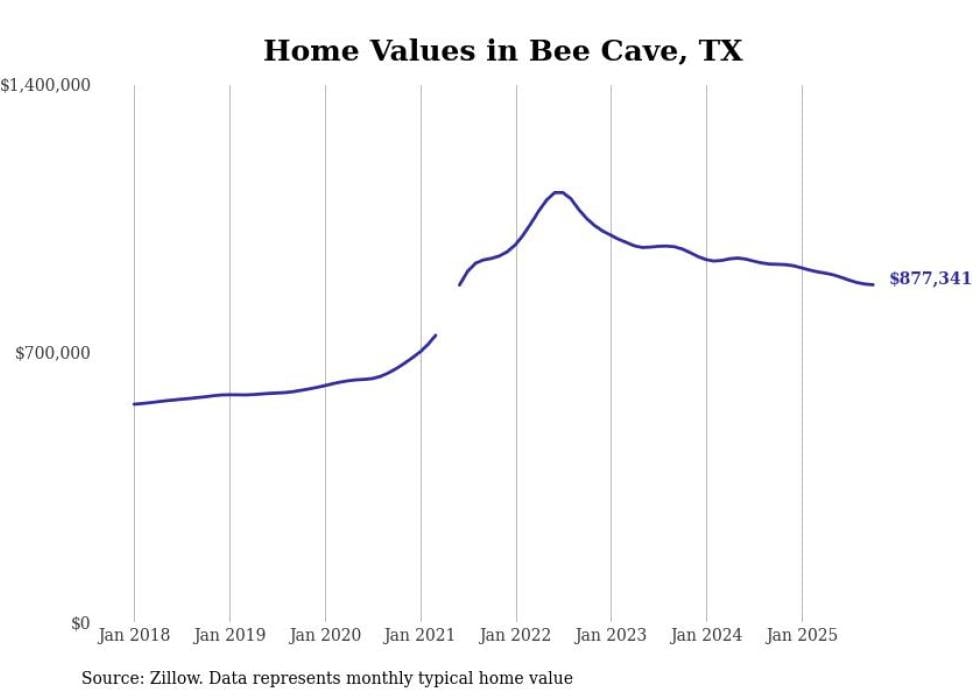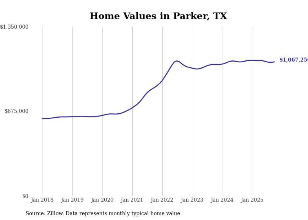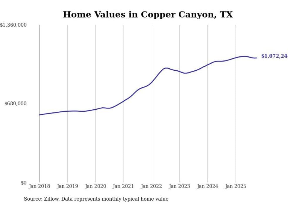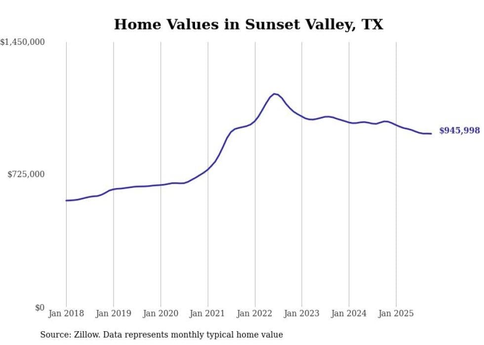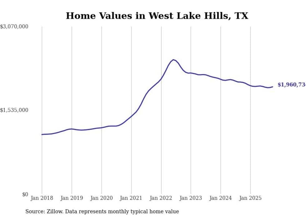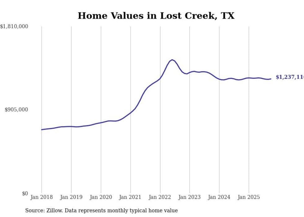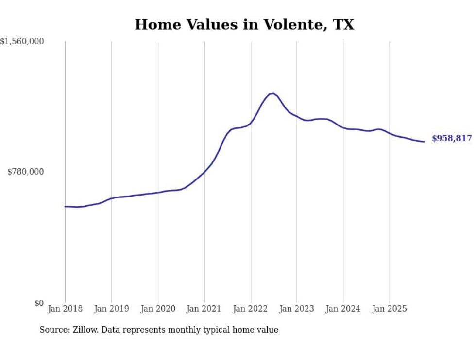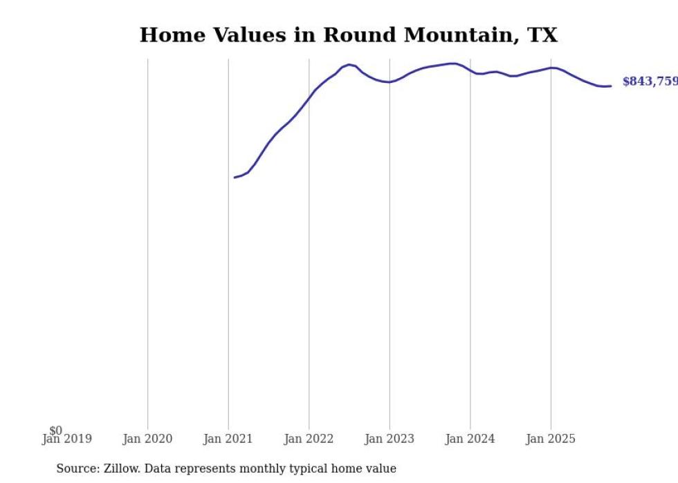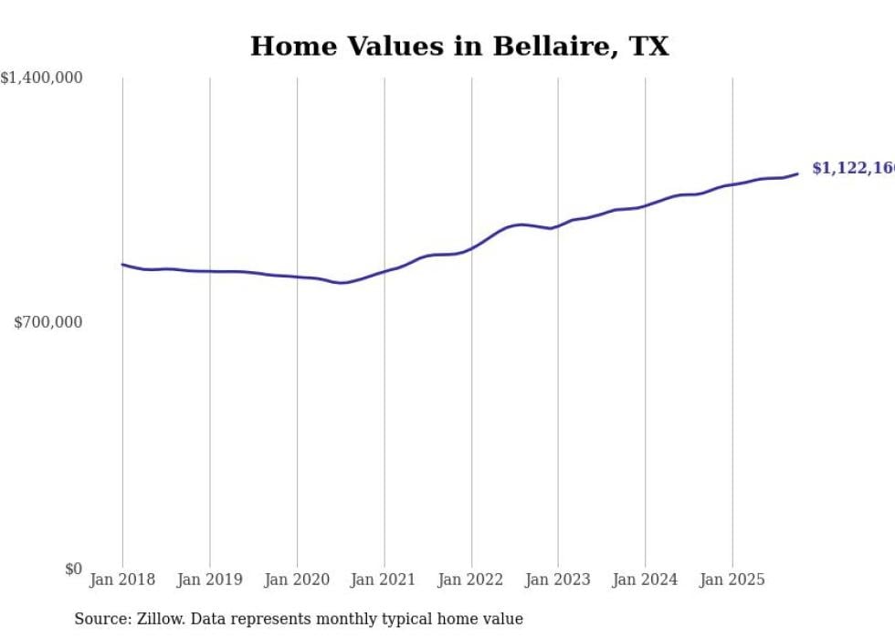 Stacker compiled a list of cities with the most expensive homes in Texas using data from Zillow. Cities are ranked by the Zillow Home Values Index for all homes as of October 2025. The charts in this story were created automatically using Matplotlib.