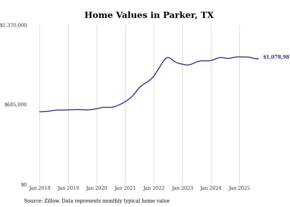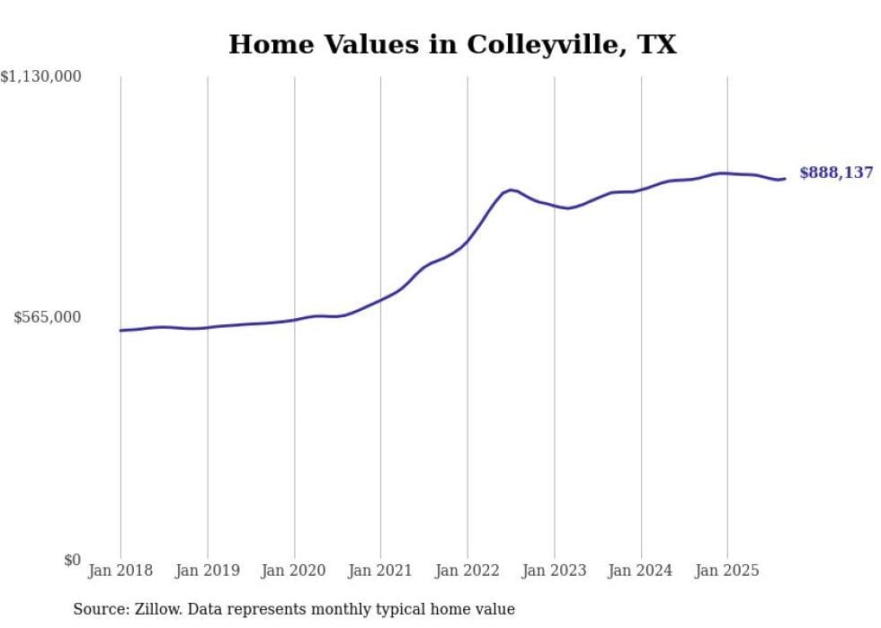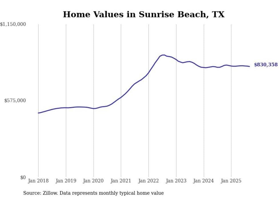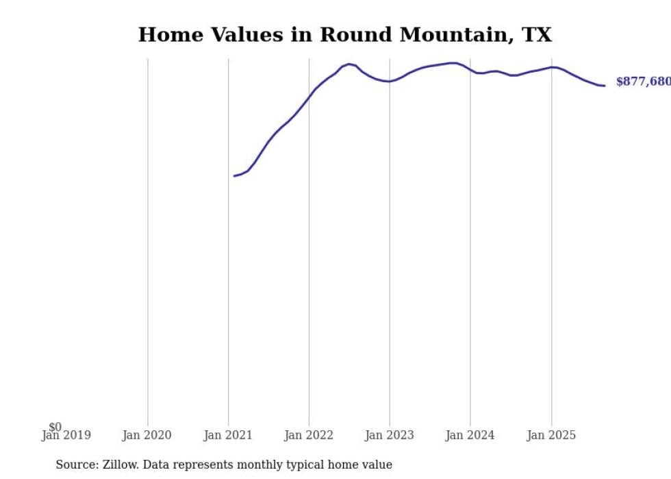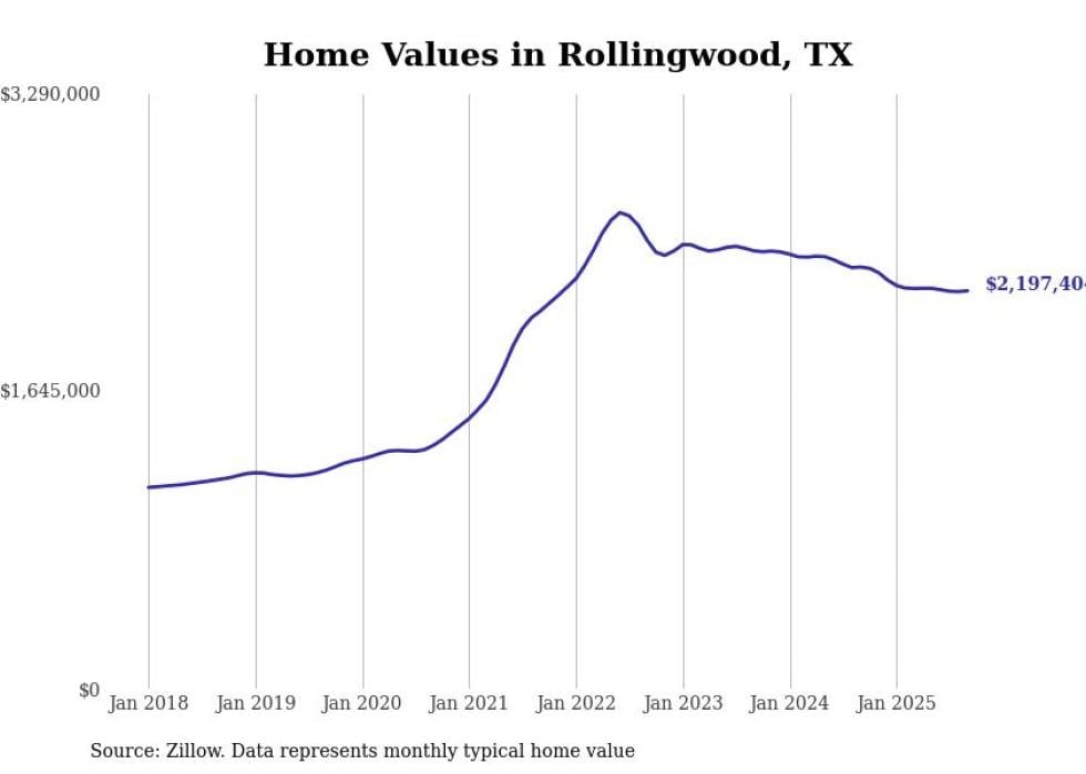 Stacker compiled a list of cities with the most expensive homes in Texas using data from Zillow. Cities are ranked by the Zillow Home Values Index for all homes as of September 2025. The charts in this story were created automatically using Matplotlib.