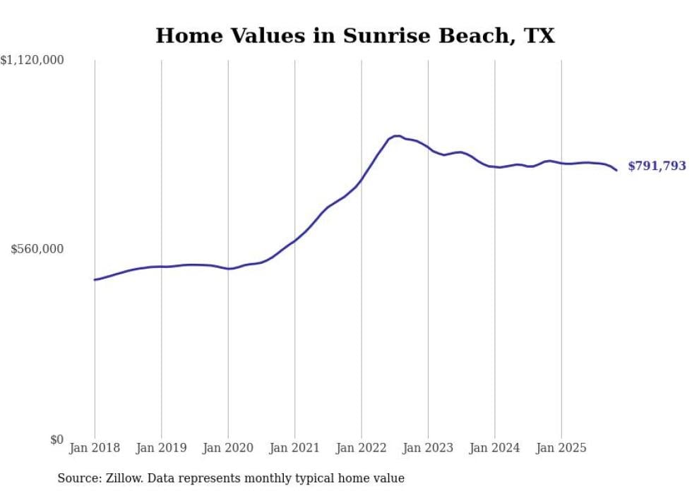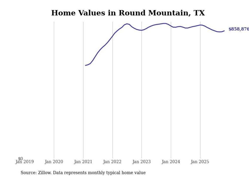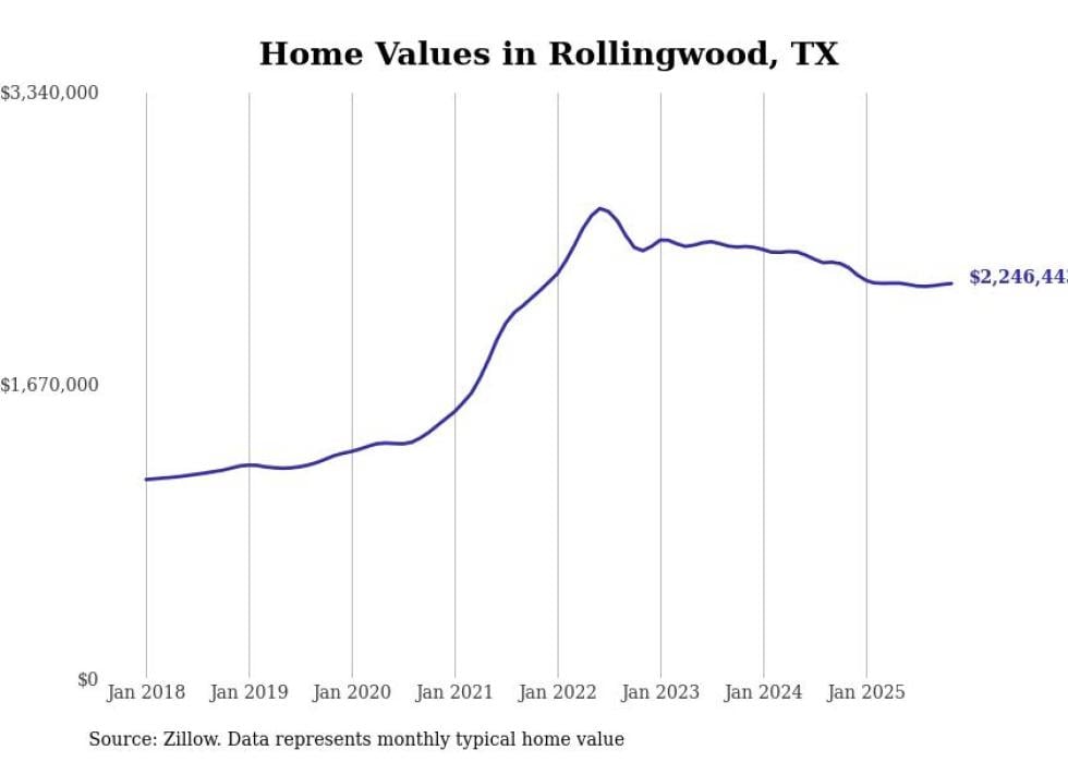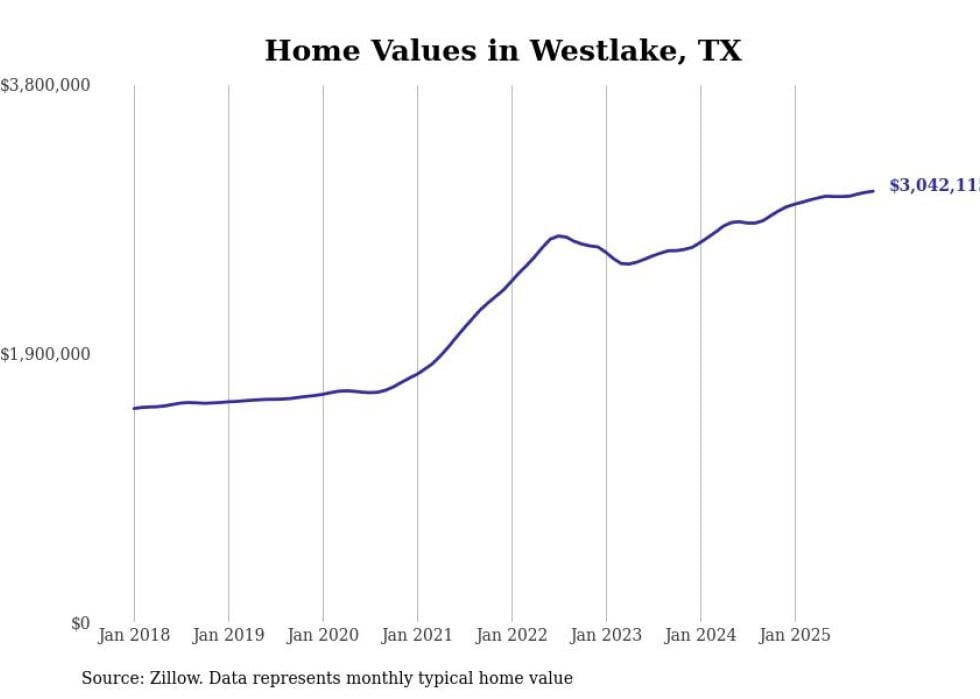 Stacker compiled a list of cities with the most expensive homes in Texas using data from Zillow. Cities are ranked by the Zillow Home Values Index for all homes as of November 2025. The charts in this story were created automatically using Matplotlib.