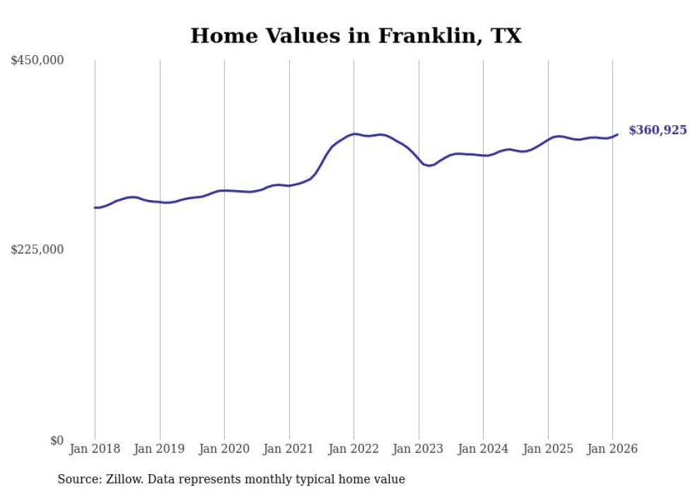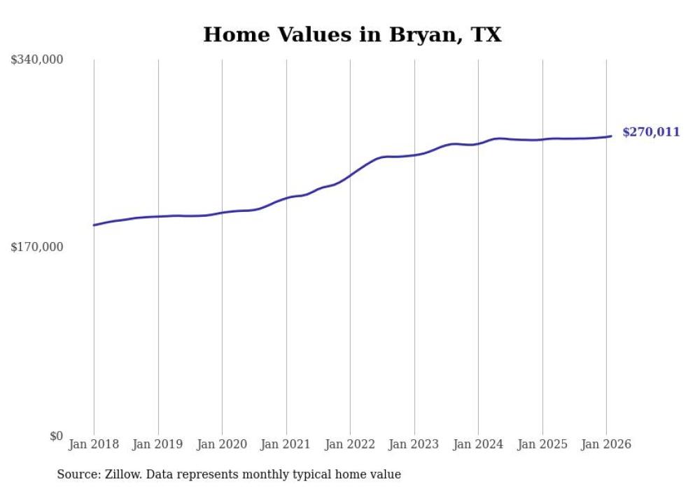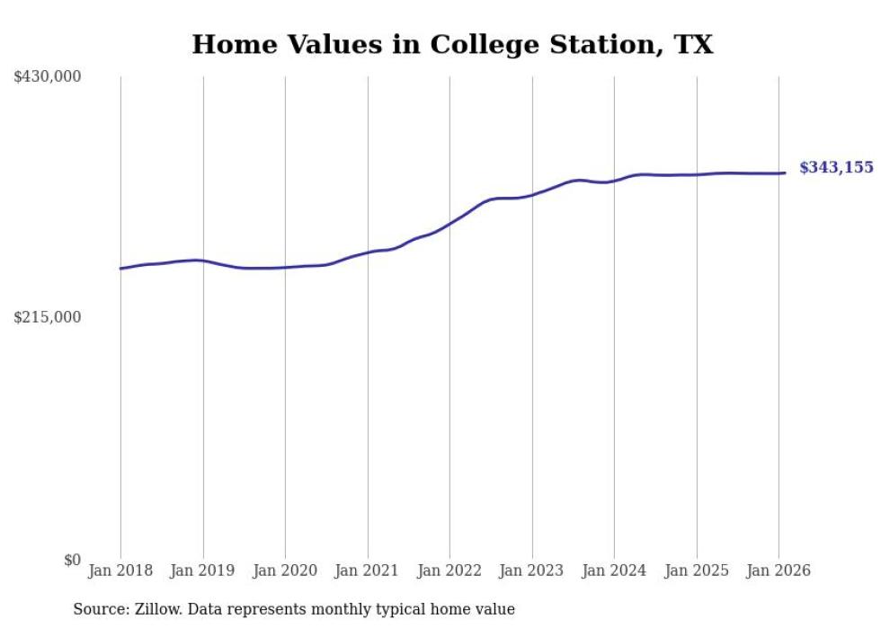 Stacker compiled a list of cities with the most expensive homes in the College Station-Bryan, TX metro area using data from Zillow. Charts show the monthly typical home value since January 2018.