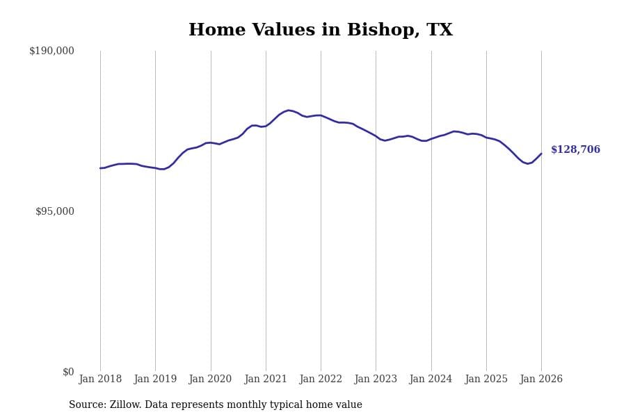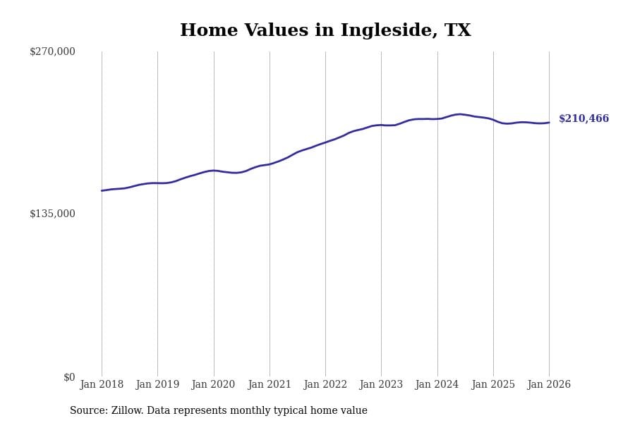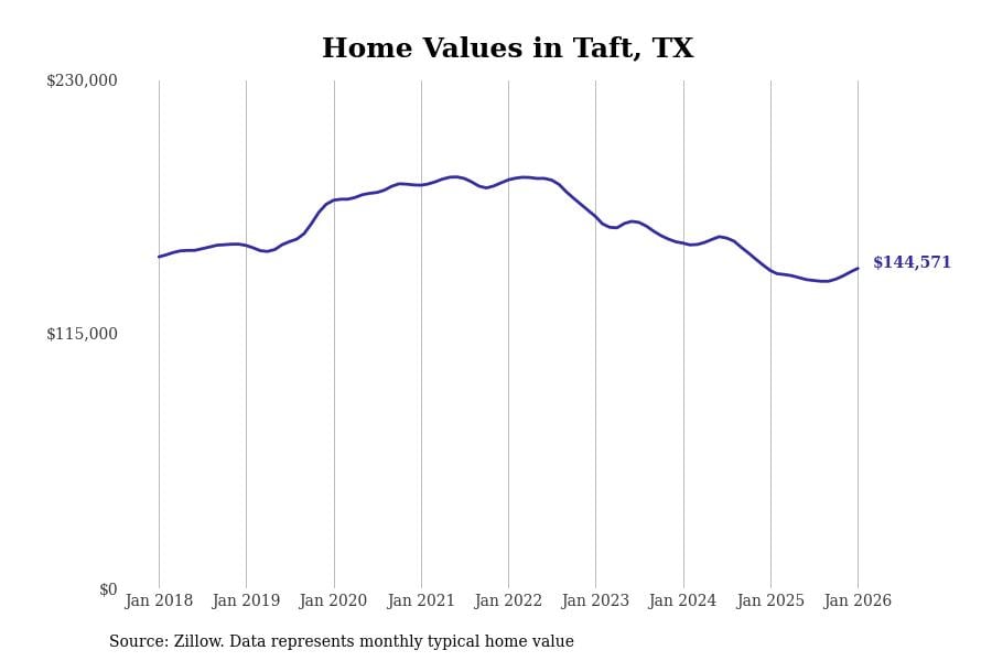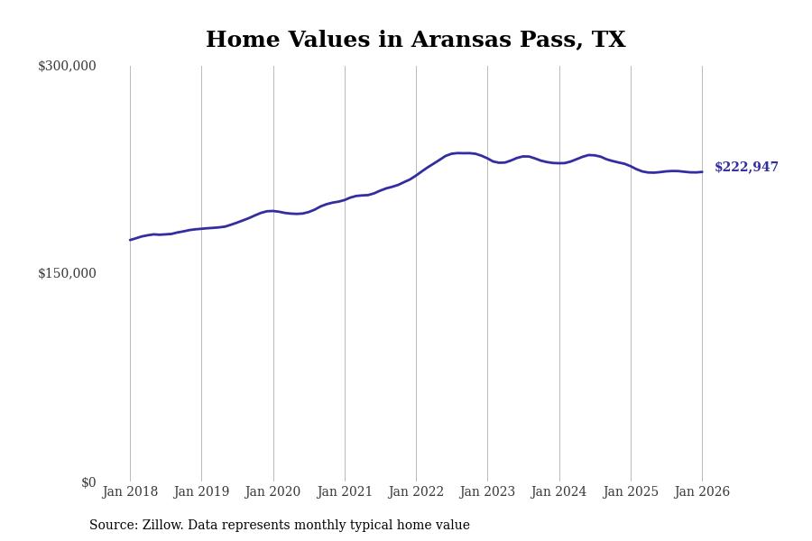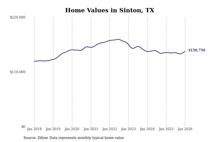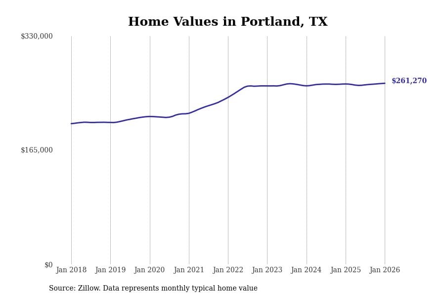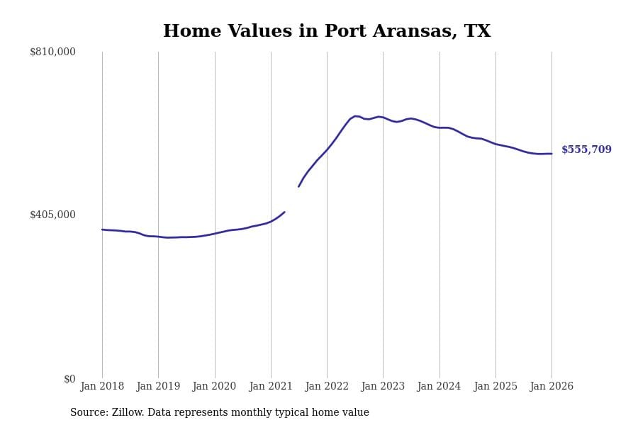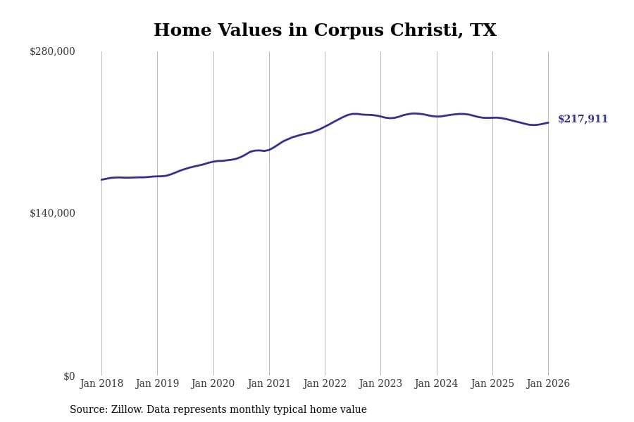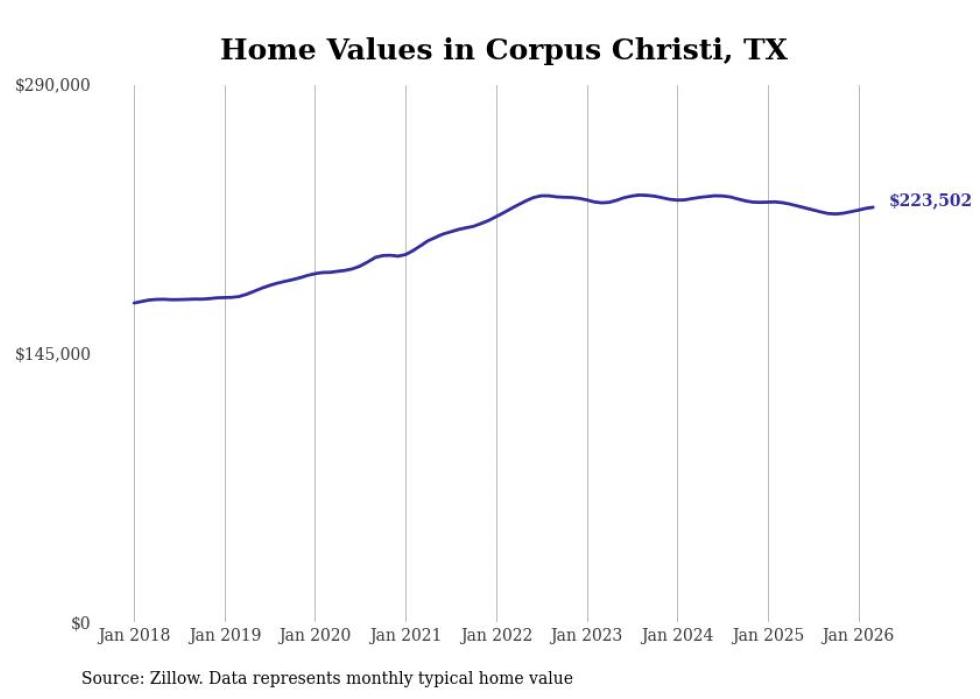 Stacker compiled a list of cities with the most expensive homes in the Corpus Christi metro area using data from Zillow. Charts show the monthly typical home value since January 2018. All 12 cities and towns with data available were included in the list.