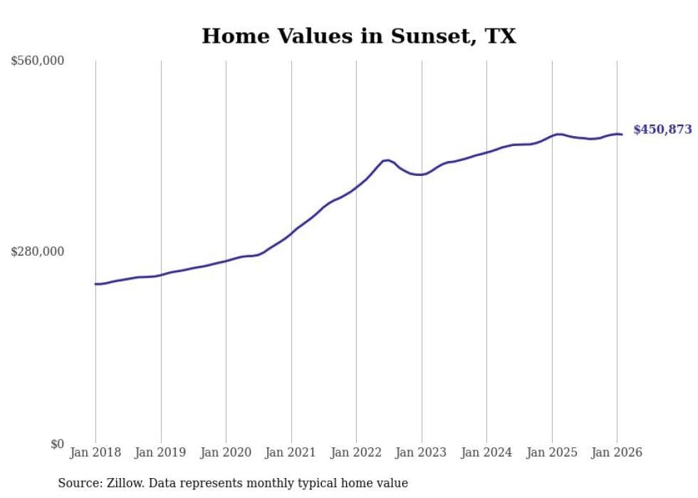 Stacker compiled a list of cities with the most expensive homes in the Dallas-Fort Worth-Arlington, TX metro area using data from Zillow. Charts show the monthly typical home value since January 2018.