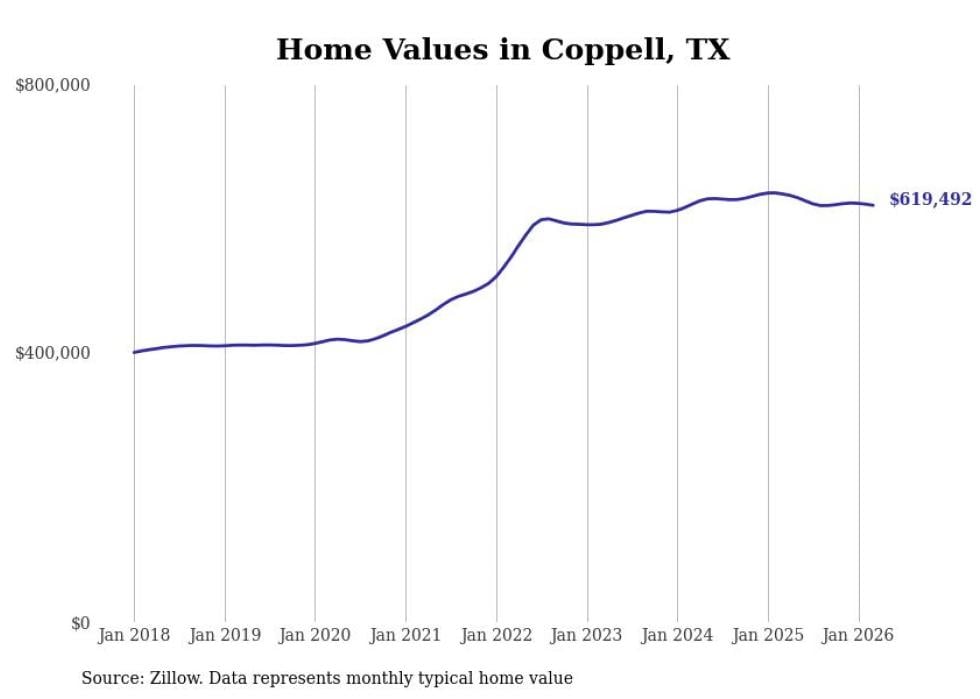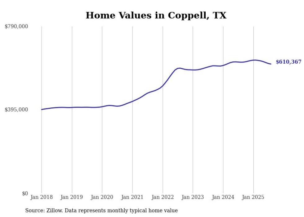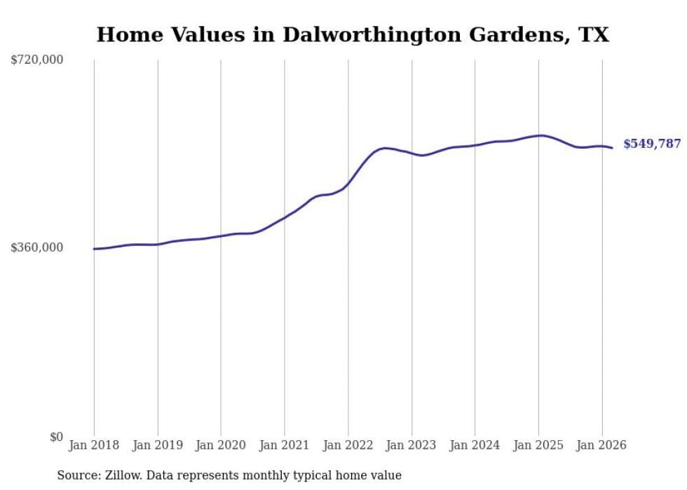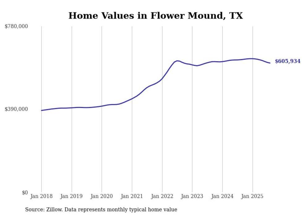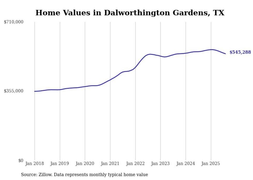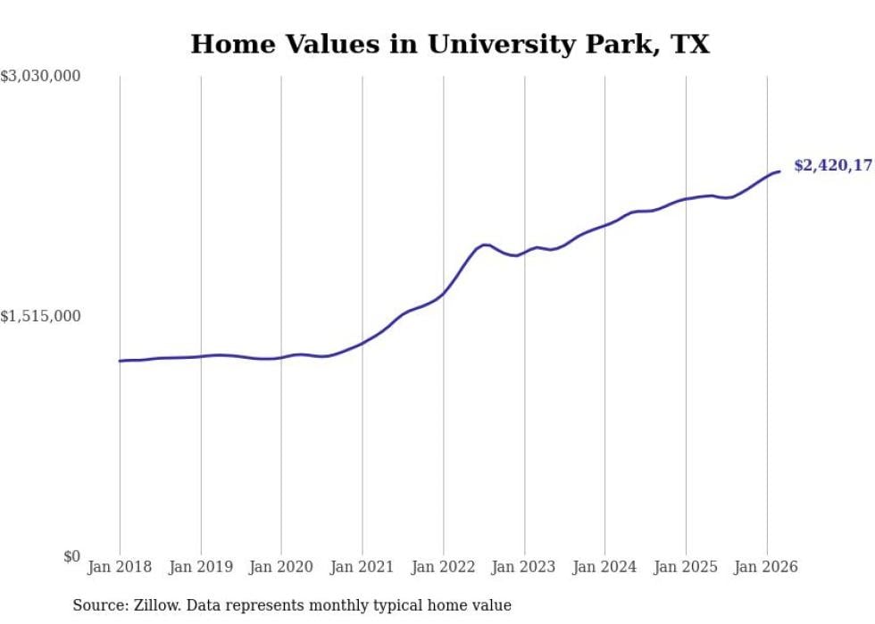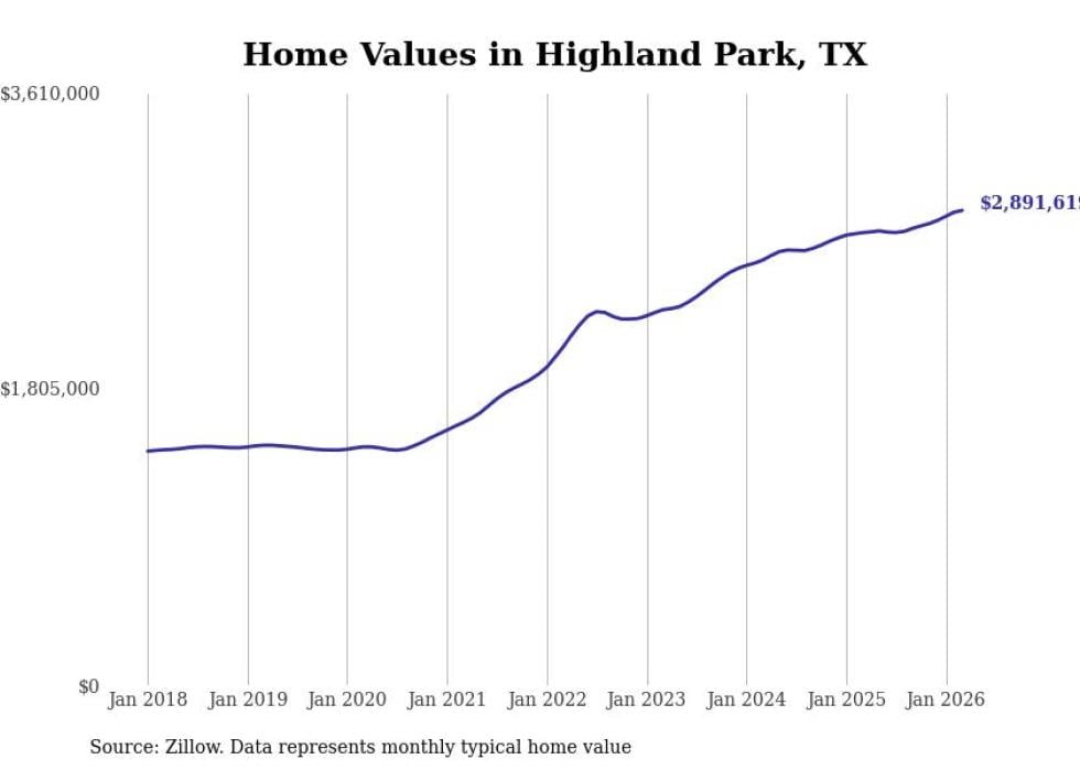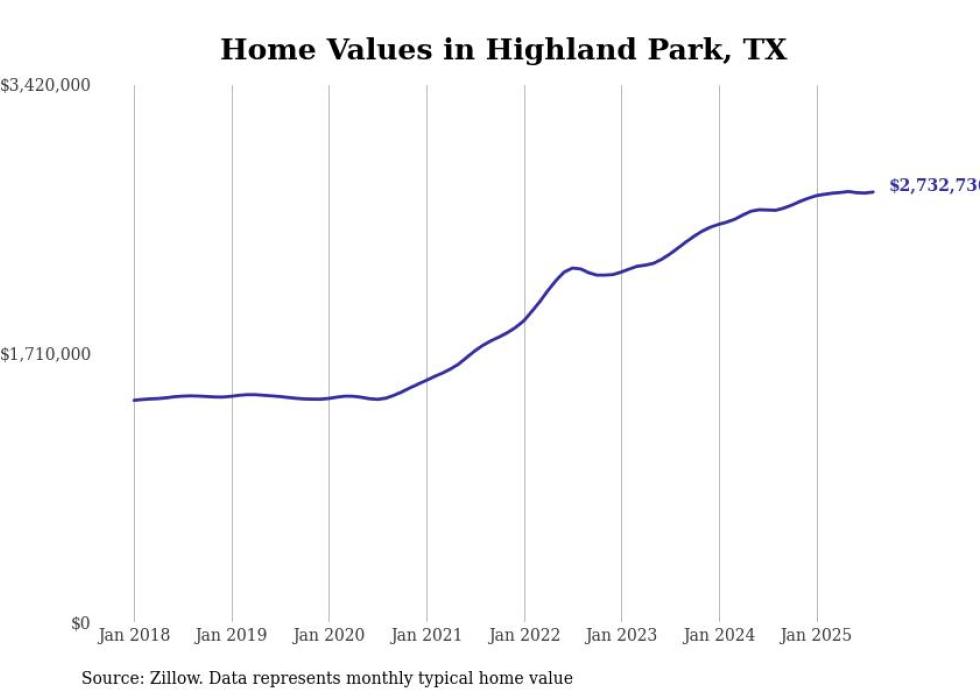 Stacker compiled a list of cities with the most expensive homes in the Dallas metro area using data from Zillow. Charts show the monthly typical home value since January 2018. Data was available for 177 cities and towns.