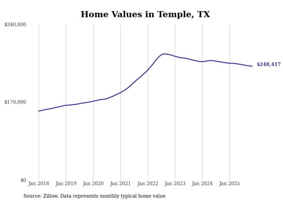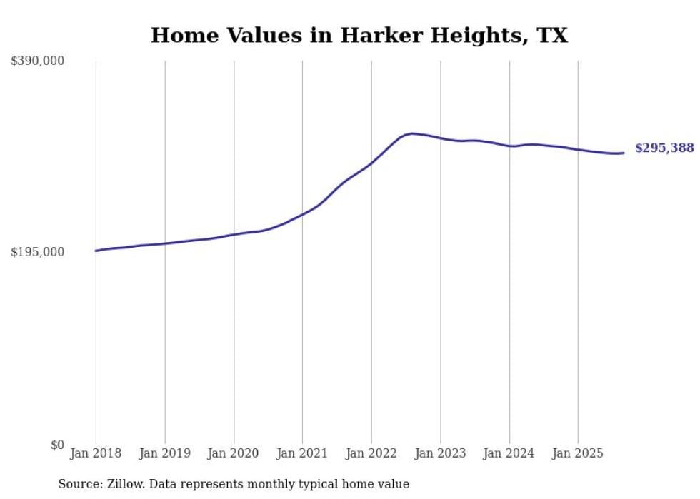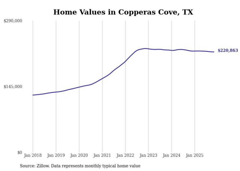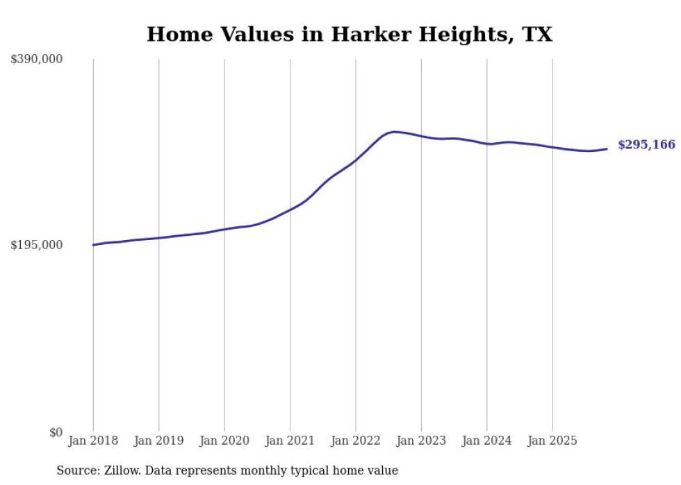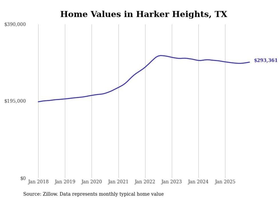 Stacker compiled a list of cities with the most expensive homes in the Killeen-Temple, TX metro area using data from Zillow. Charts show the monthly typical home value since January 2018.