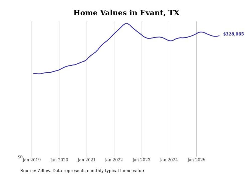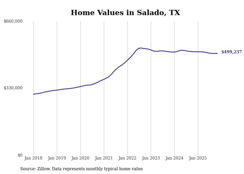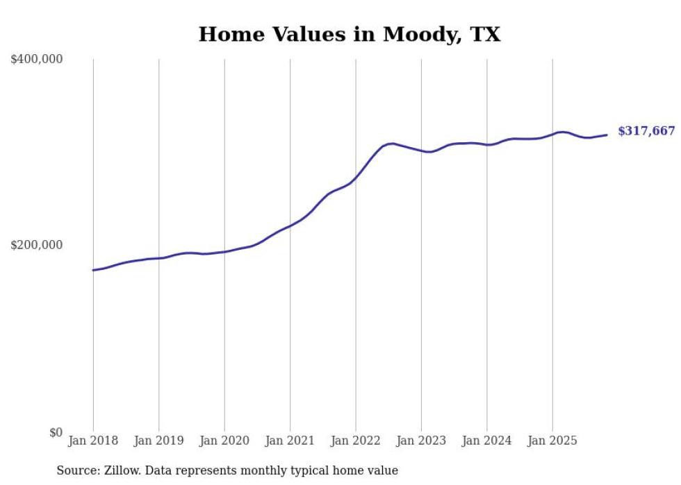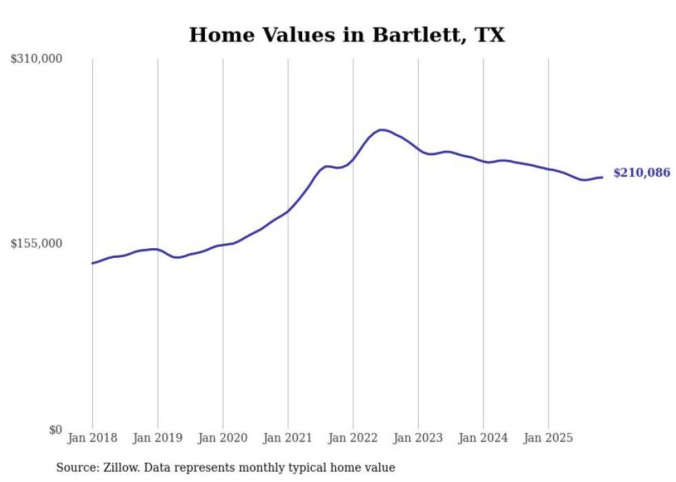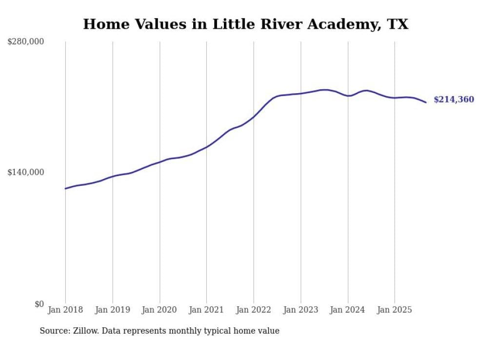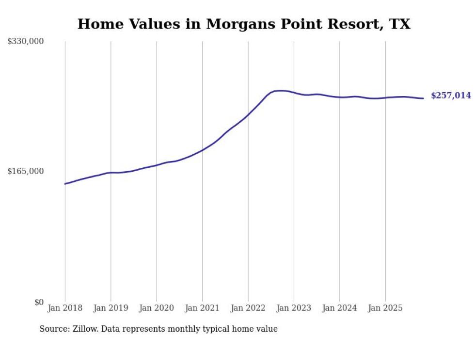 Stacker compiled a list of cities with the most expensive homes in the Killeen-Temple, TX metro area using data from Zillow. Charts show the monthly typical home value since January 2018.