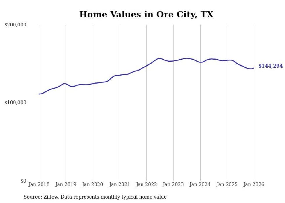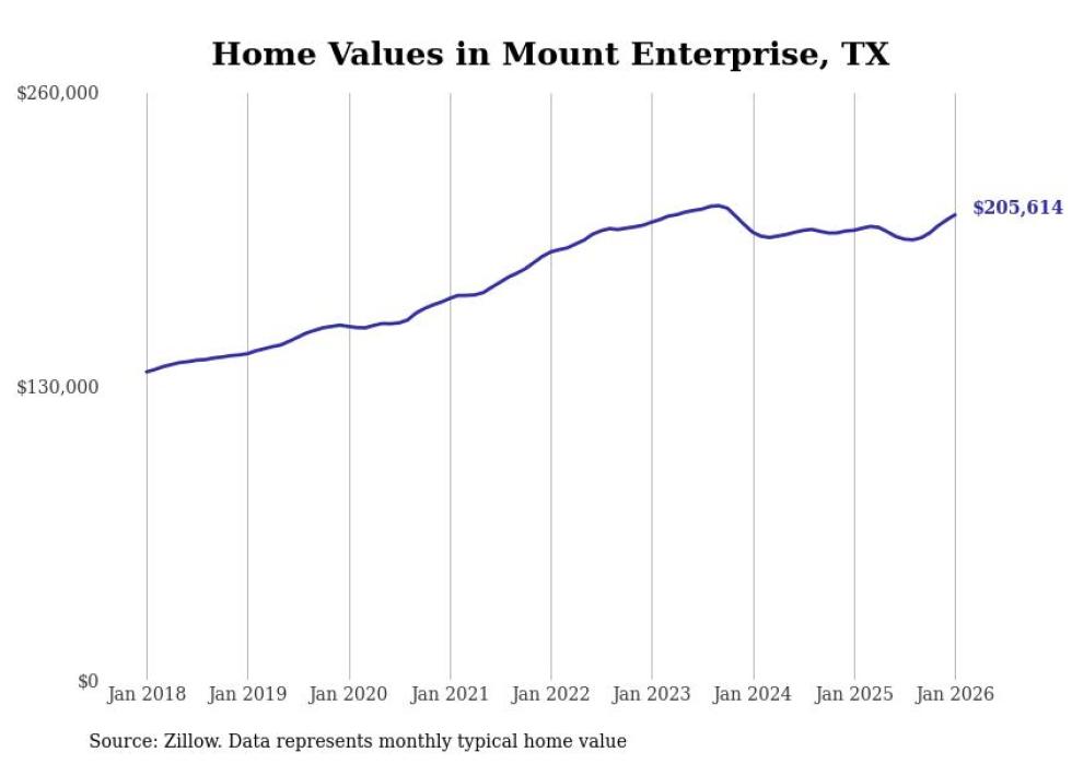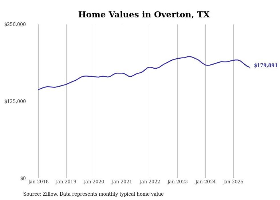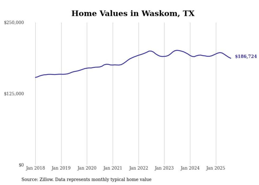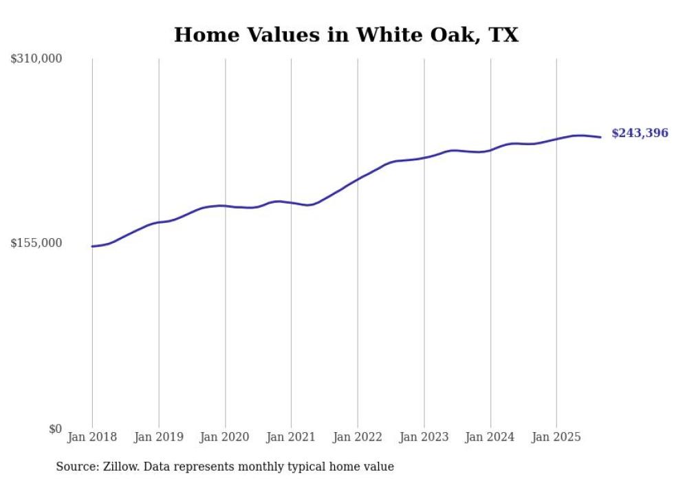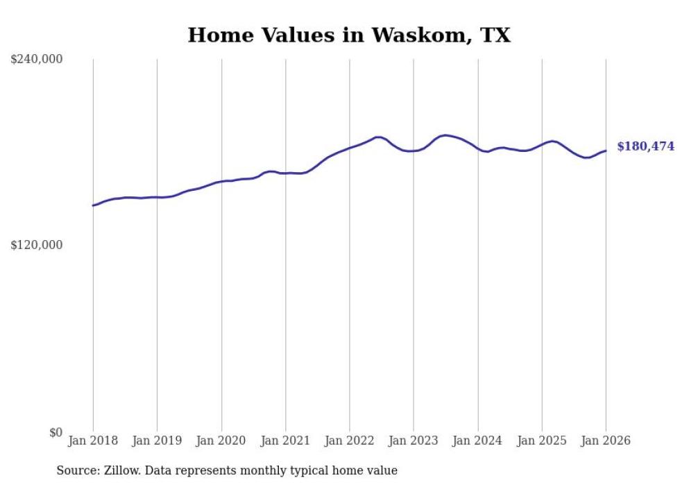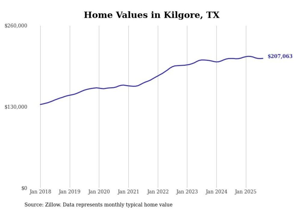 Stacker compiled a list of cities with the most expensive homes in the Longview, TX metro area using data from Zillow. Charts show the monthly typical home value since January 2018.