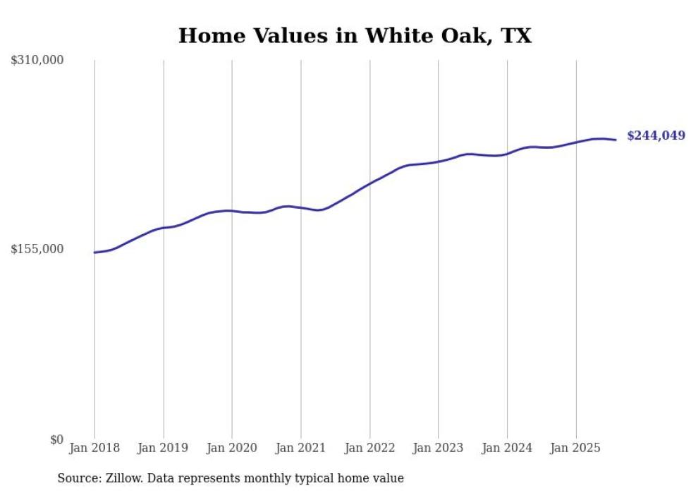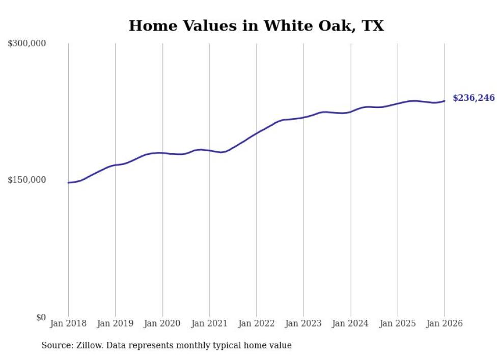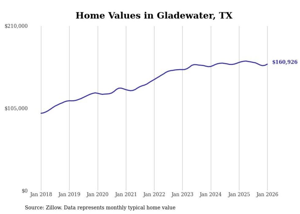 Cities with the fastest-growing home prices in the Longview, Texas metro area