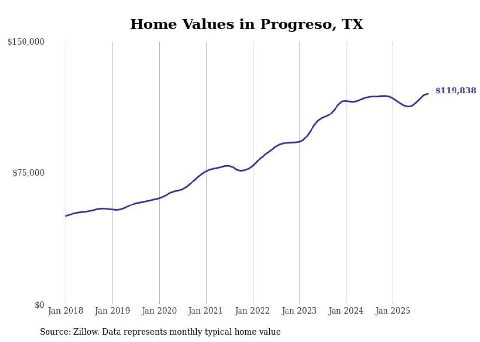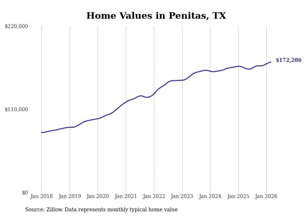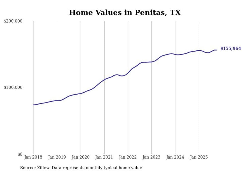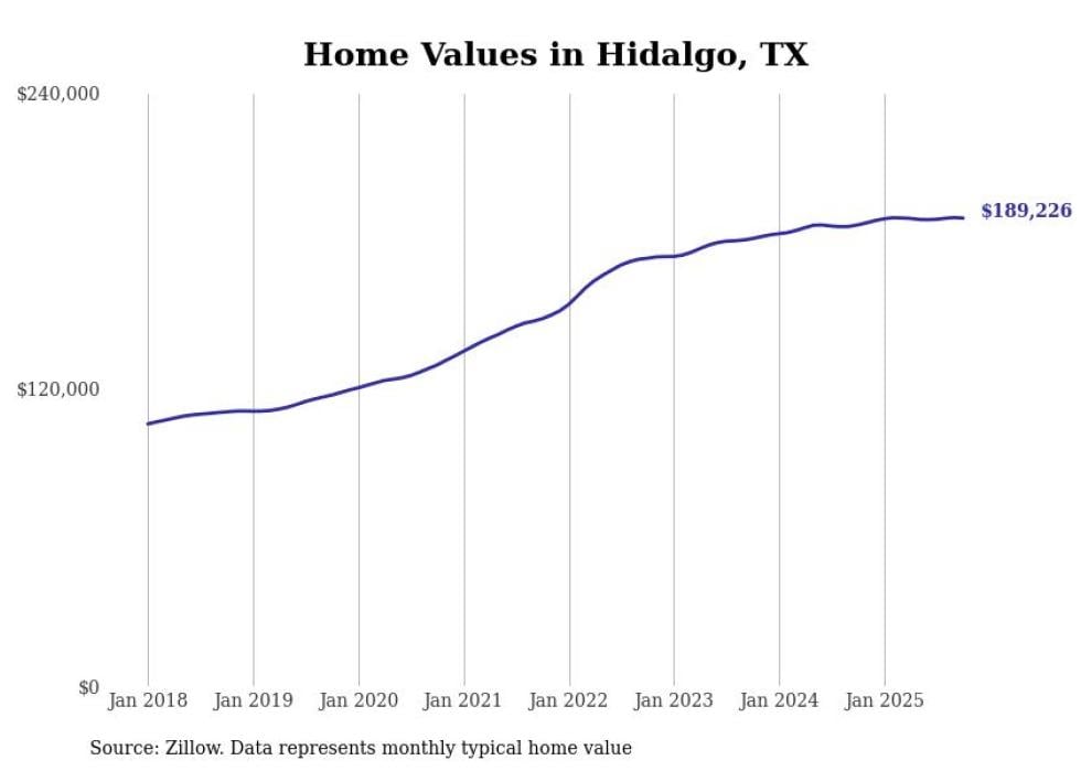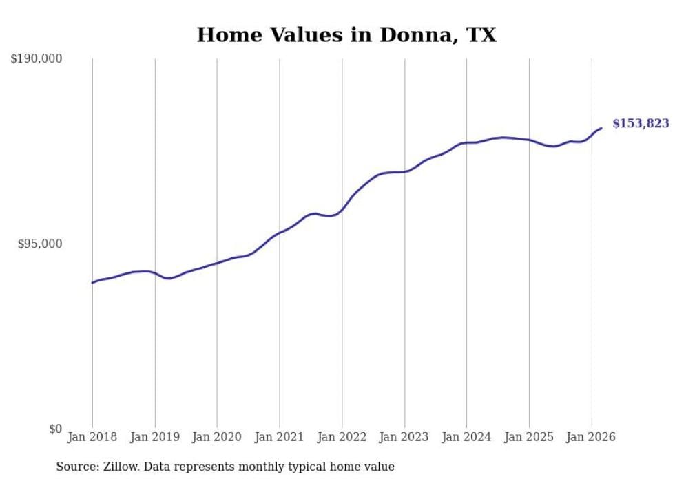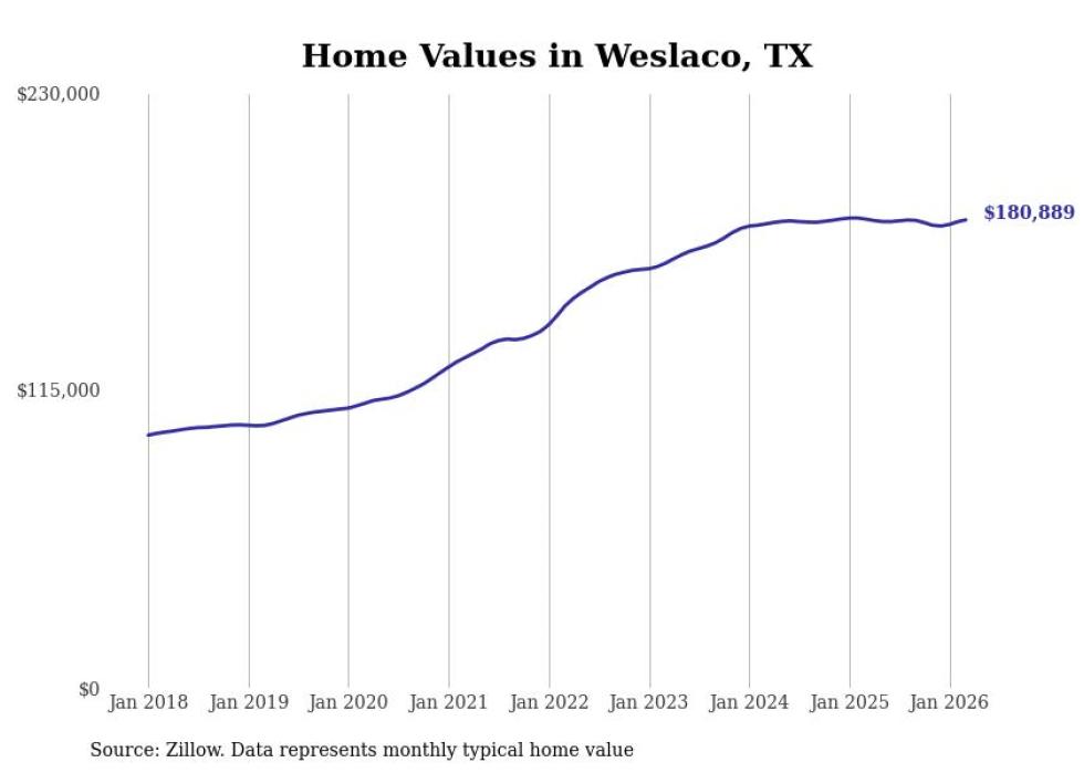 Stacker compiled a list of cities with the most expensive homes in the McAllen-Edinburg-Mission, TX metro area using data from Zillow. Charts show the monthly typical home value since January 2018.