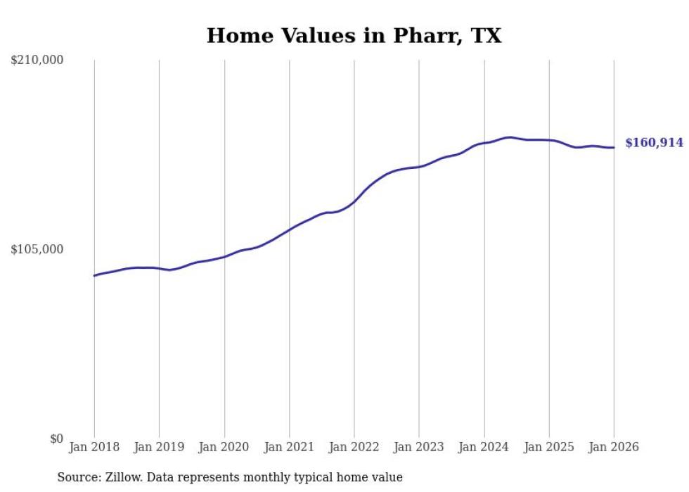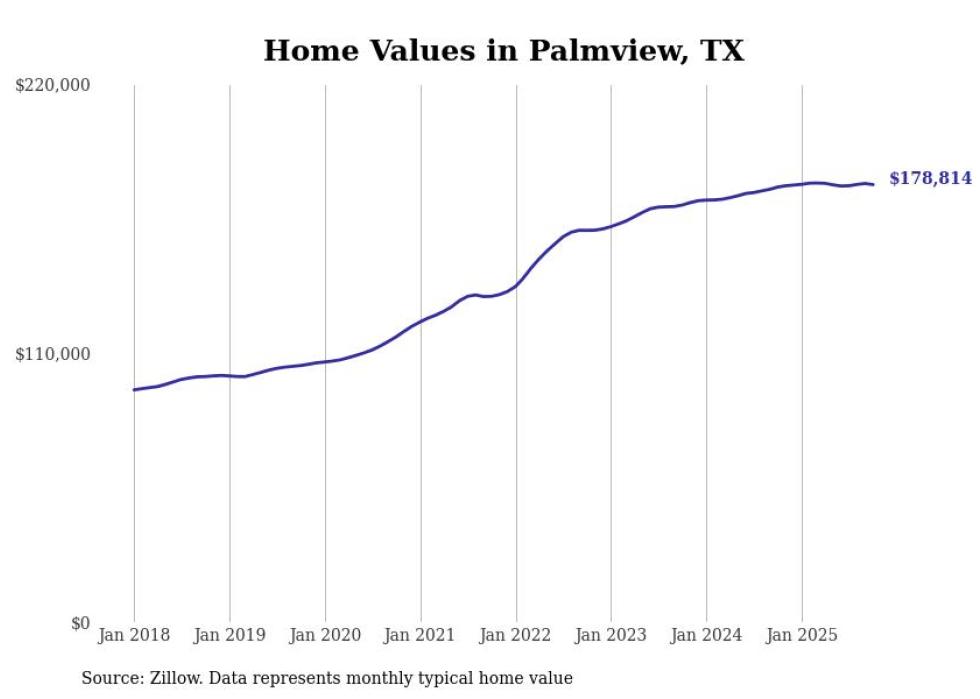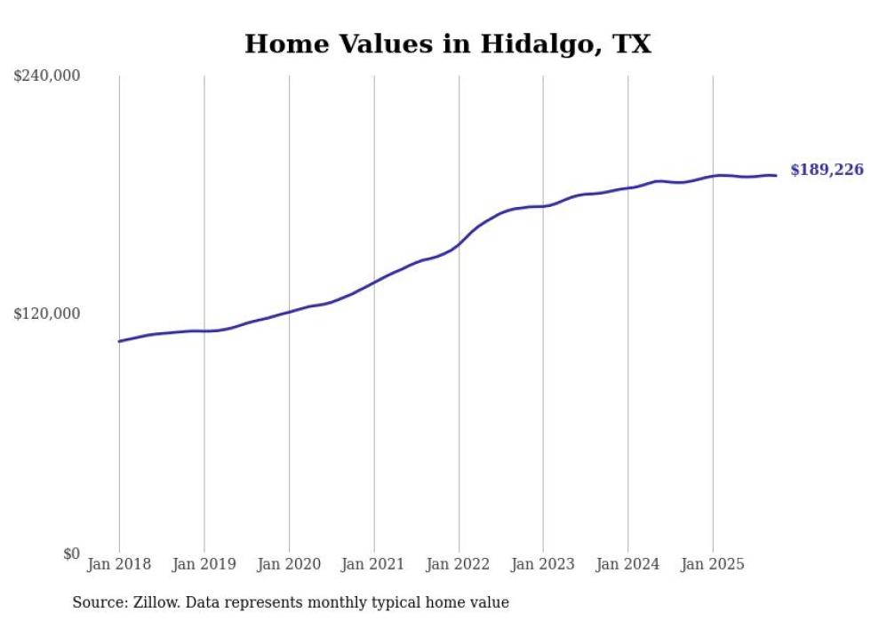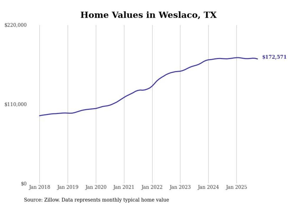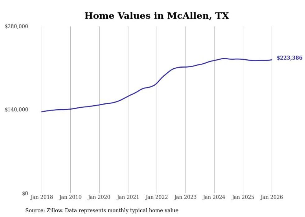 Stacker compiled a list of cities with the most expensive homes in the McAllen metro area using data from Zillow. Charts show the monthly typical home value since January 2018. Data was available for 31 cities and towns.