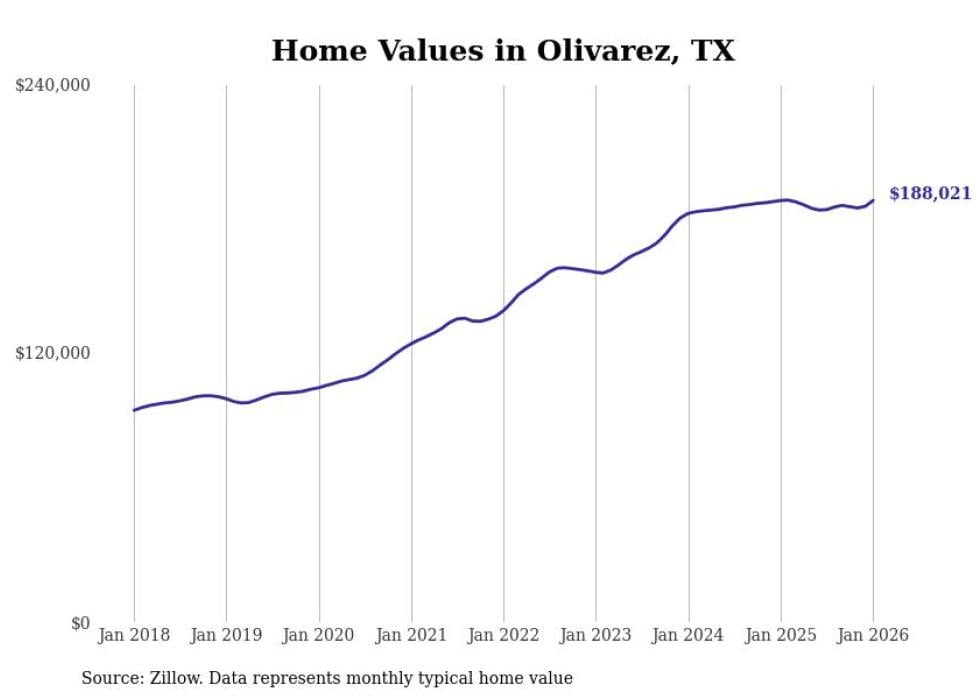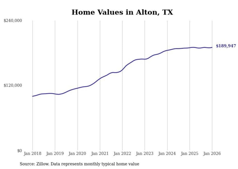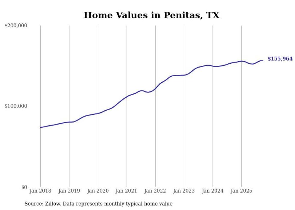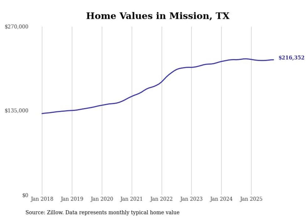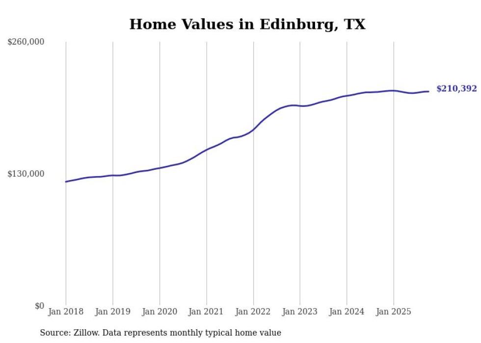 Stacker compiled a list of cities with the most expensive homes in the McAllen metro area using data from Zillow. Charts show the monthly typical home value since January 2018. Data was available for 31 cities and towns.