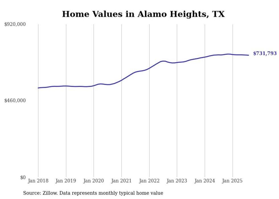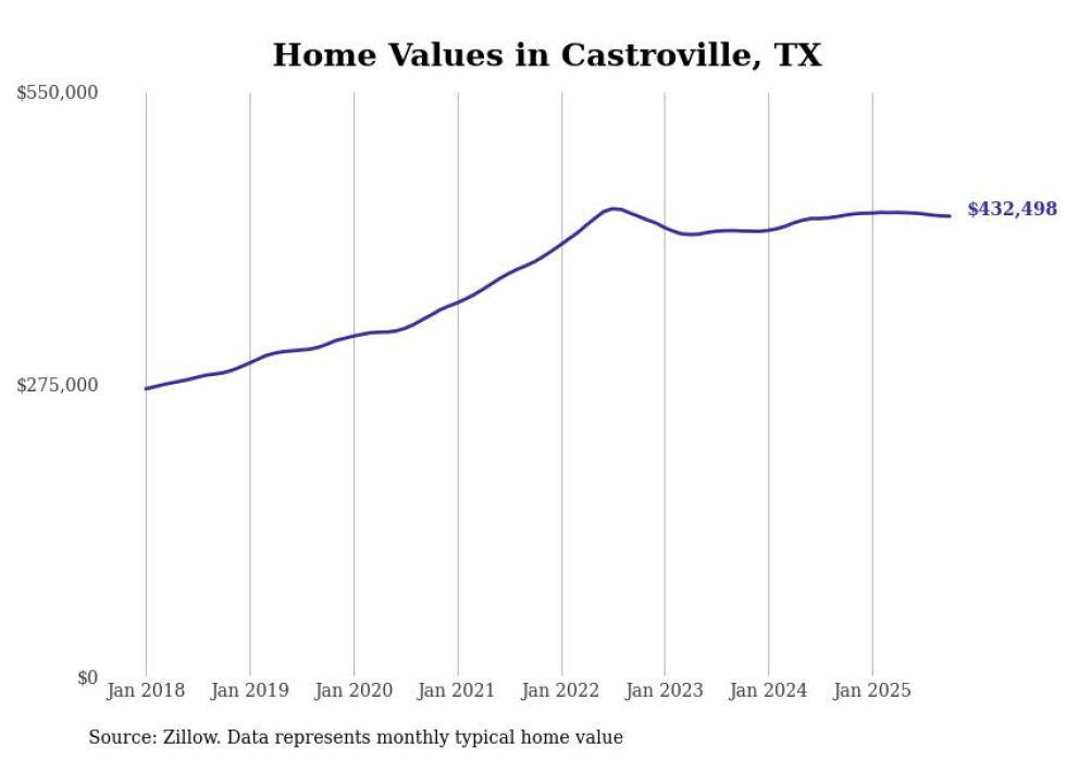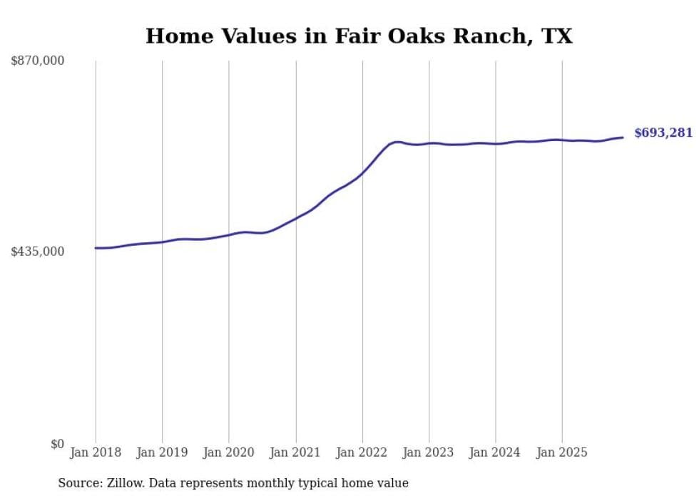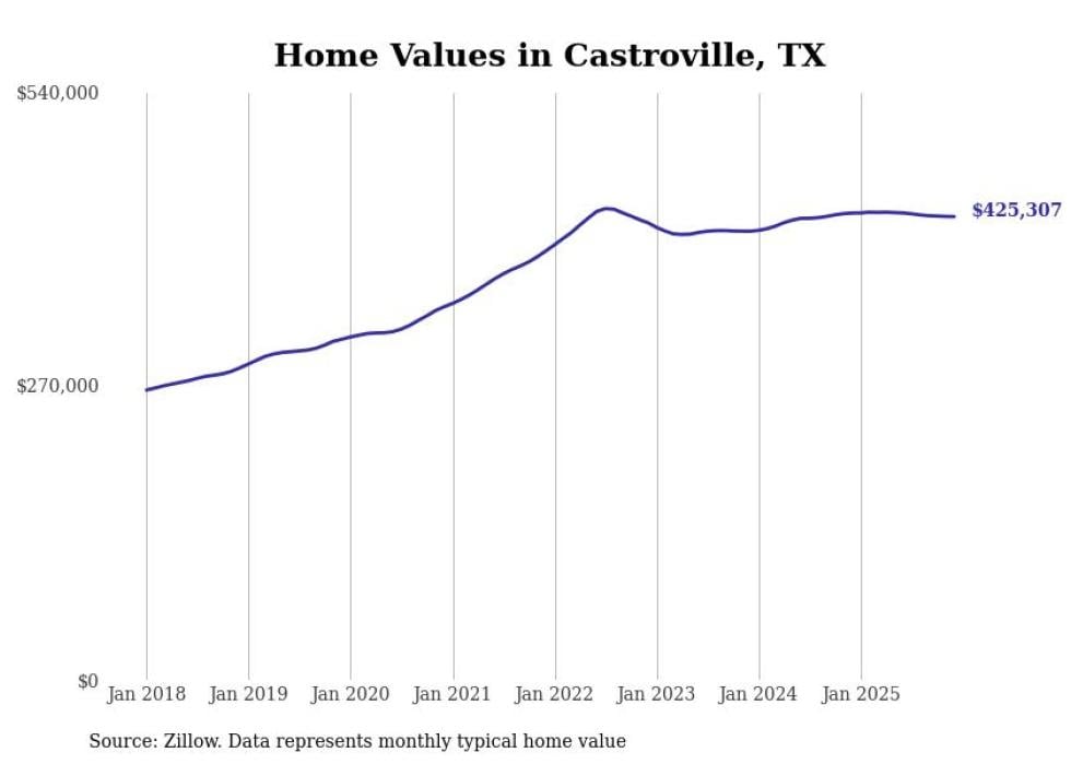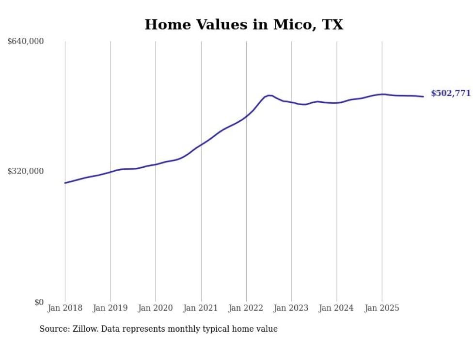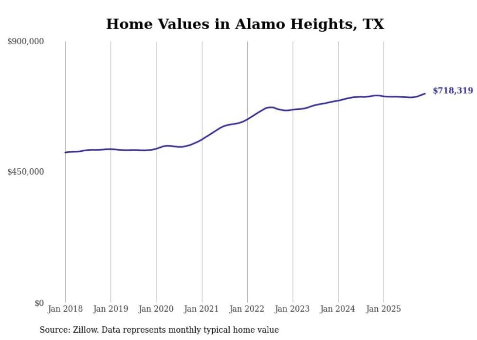 Stacker compiled a list of cities with the most expensive homes in the San Antonio metro area using data from Zillow. Charts show the monthly typical home value since January 2018. Data was available for 64 cities and towns.