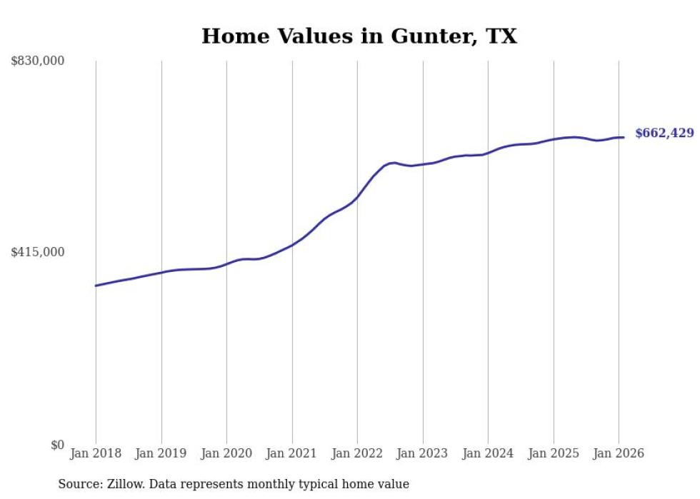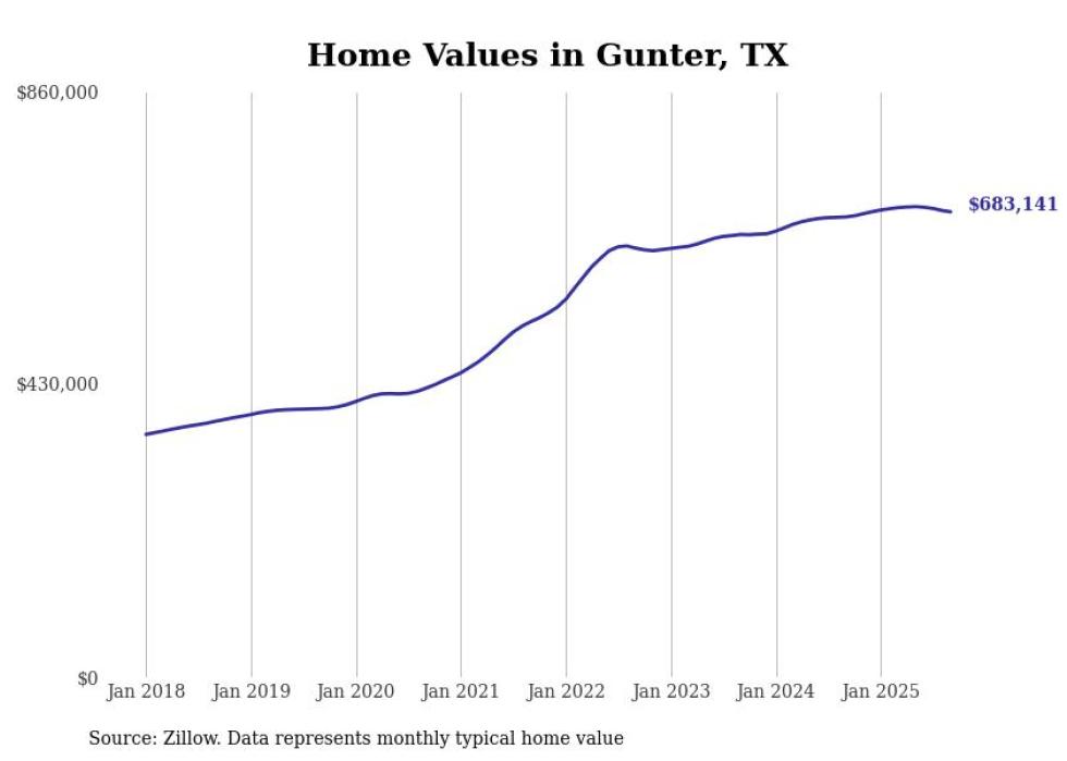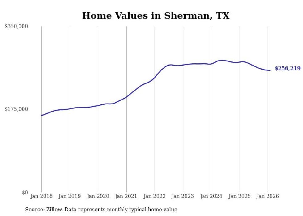 Stacker compiled a list of cities with the most expensive homes in the Sherman metro area using data from Zillow. Charts show the monthly typical home value since January 2018. All 12 cities and towns with data available were included in the list.