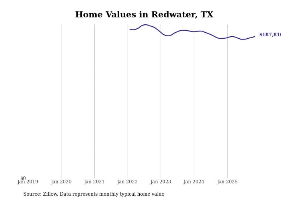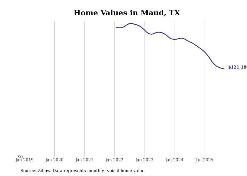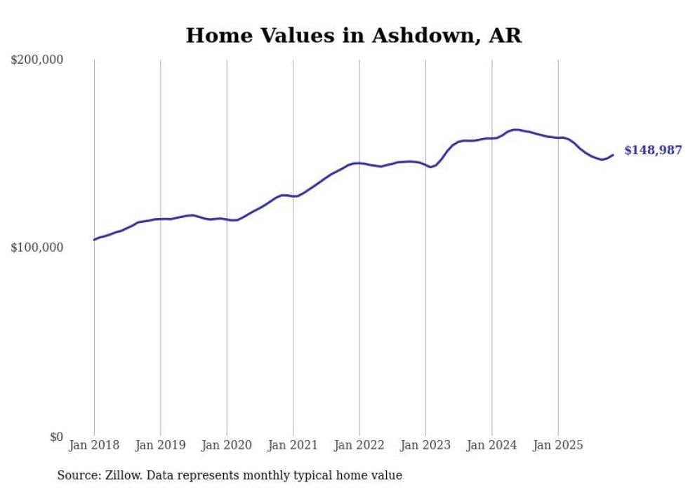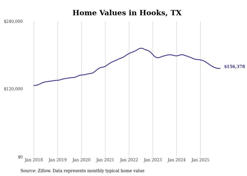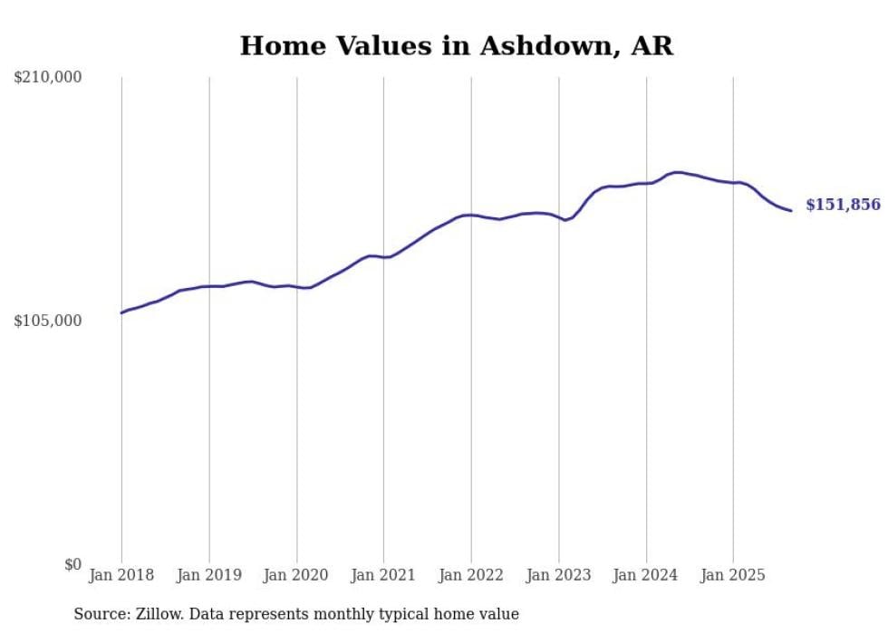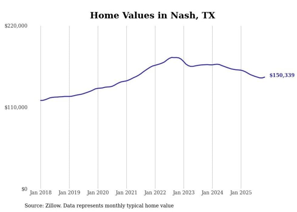 Stacker compiled a list of cities with the most expensive homes in the Texarkana, TX-AR metro area using data from Zillow. Charts show the monthly typical home value since January 2018.
