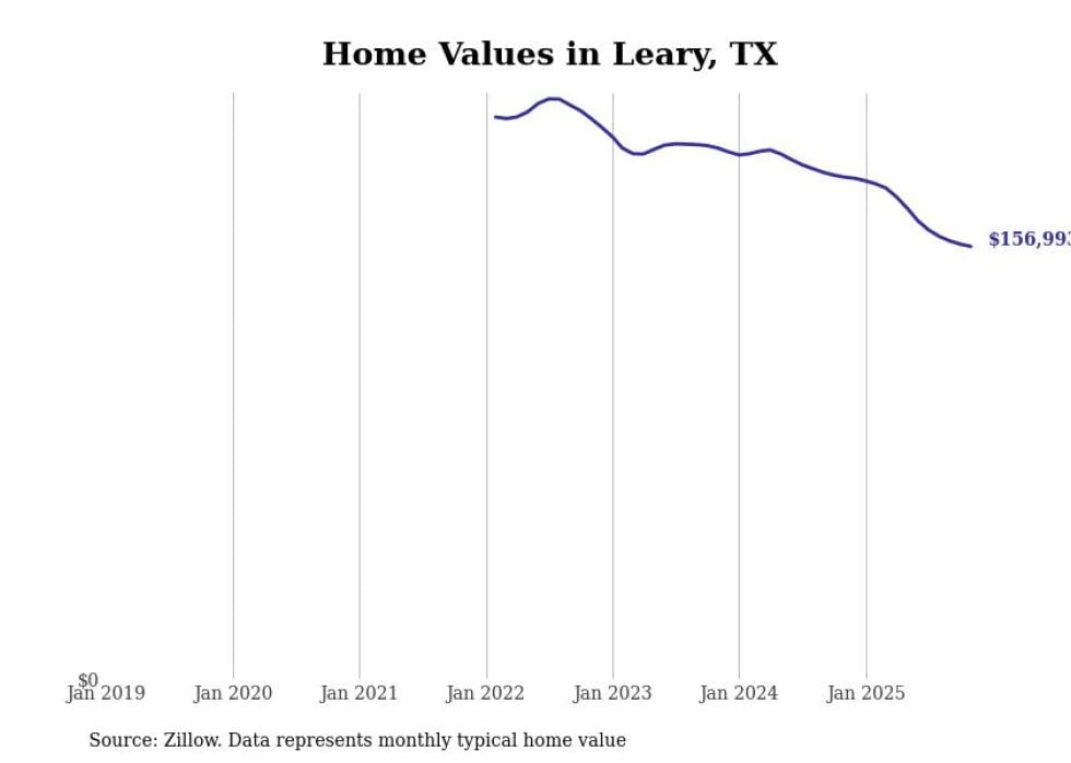 Stacker compiled a list of cities with the most expensive homes in the Texarkana metro area using data from Zillow. Charts show the monthly typical home value since January 2018. All 15 cities and towns with data available were included in the list.