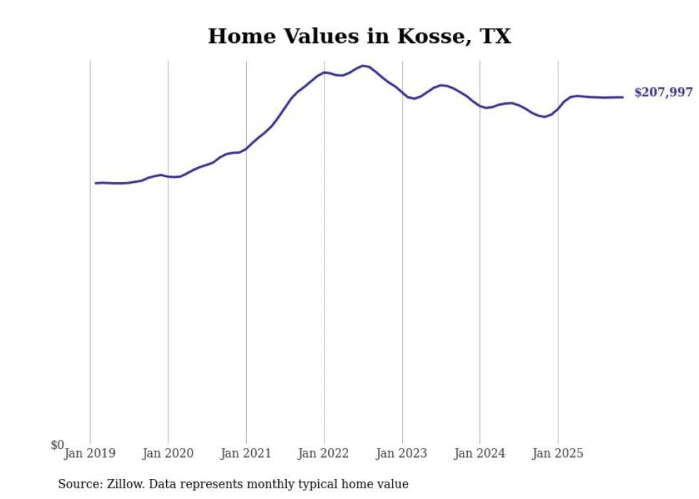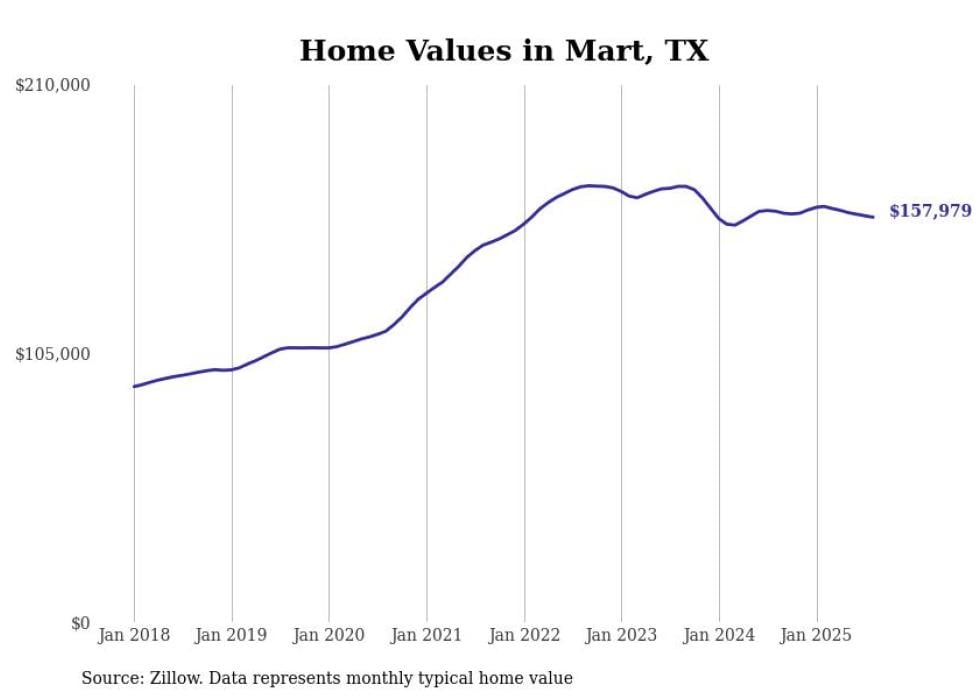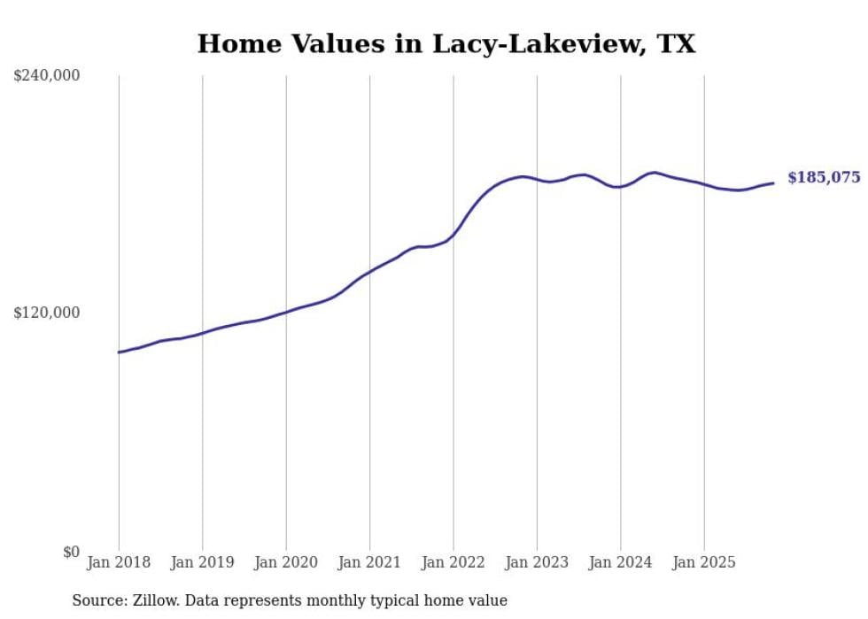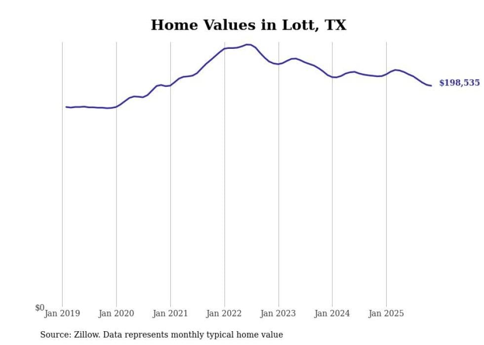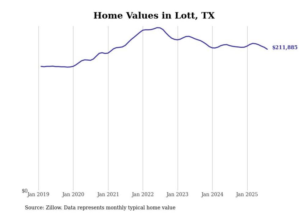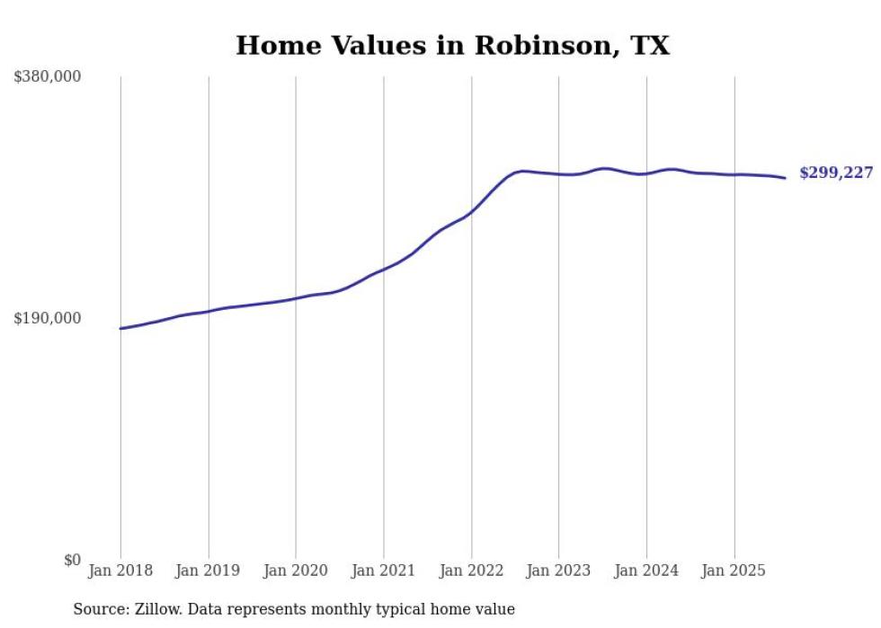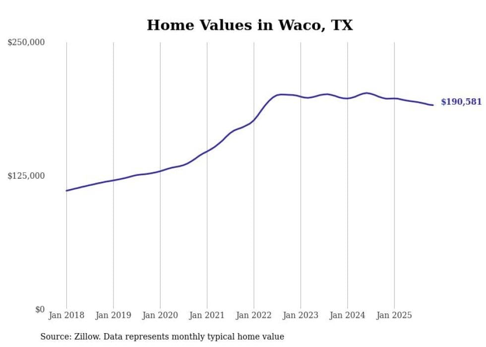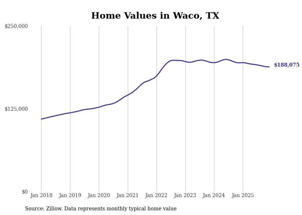 Stacker compiled a list of cities with the most expensive homes in the Waco metro area using data from Zillow. Charts show the monthly typical home value since January 2018. All 20 cities and towns with data available were included in the list.