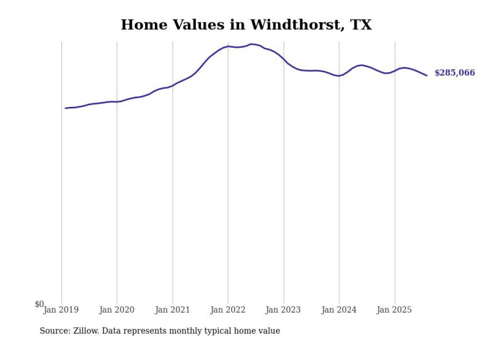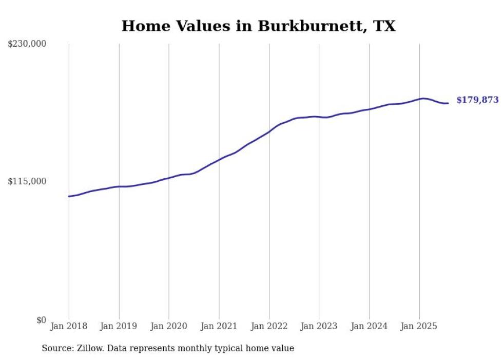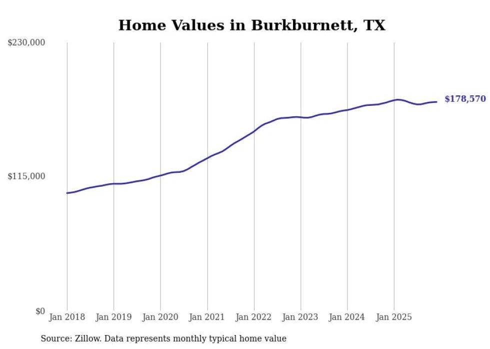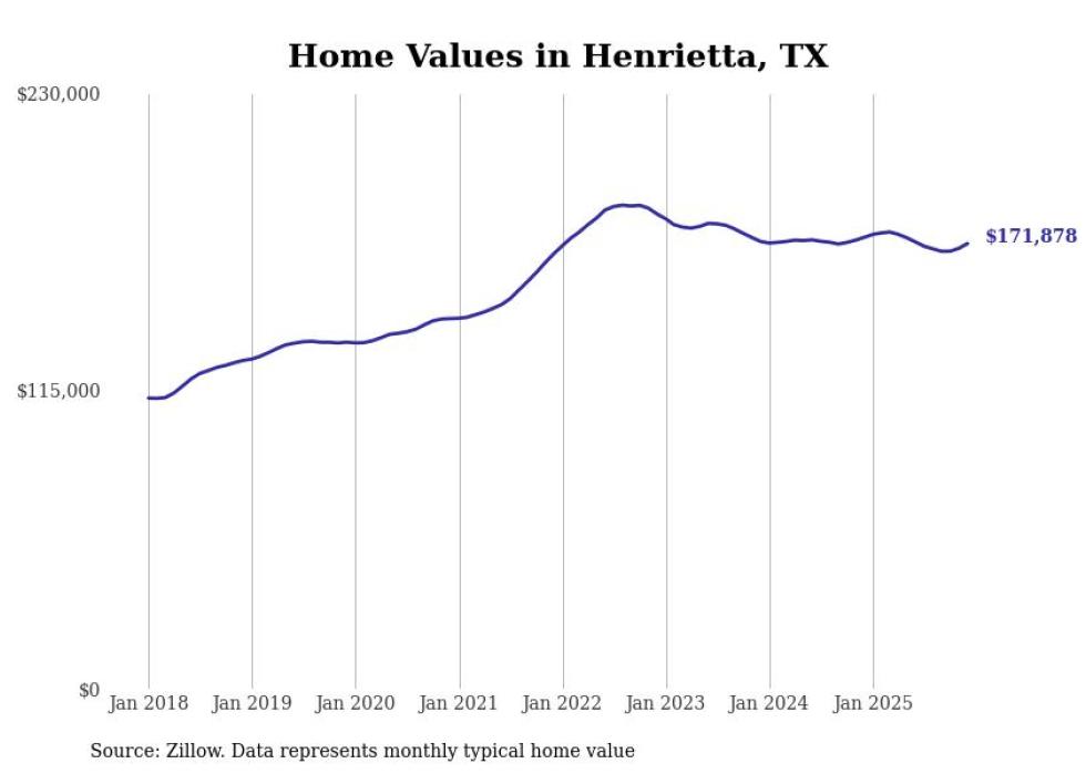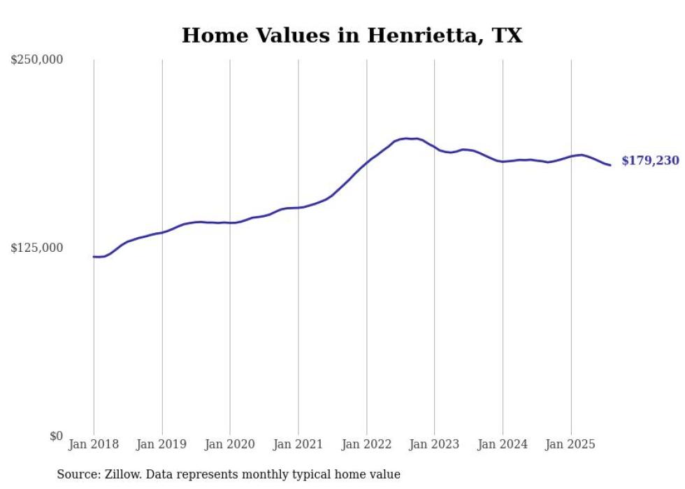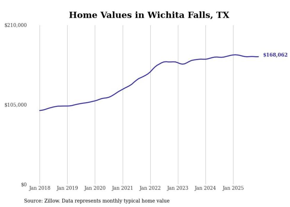 Stacker compiled a list of cities with the most expensive homes in the Wichita Falls metro area using data from Zillow. Charts show the monthly typical home value since January 2018. All 12 cities and towns with data available were included in the list.