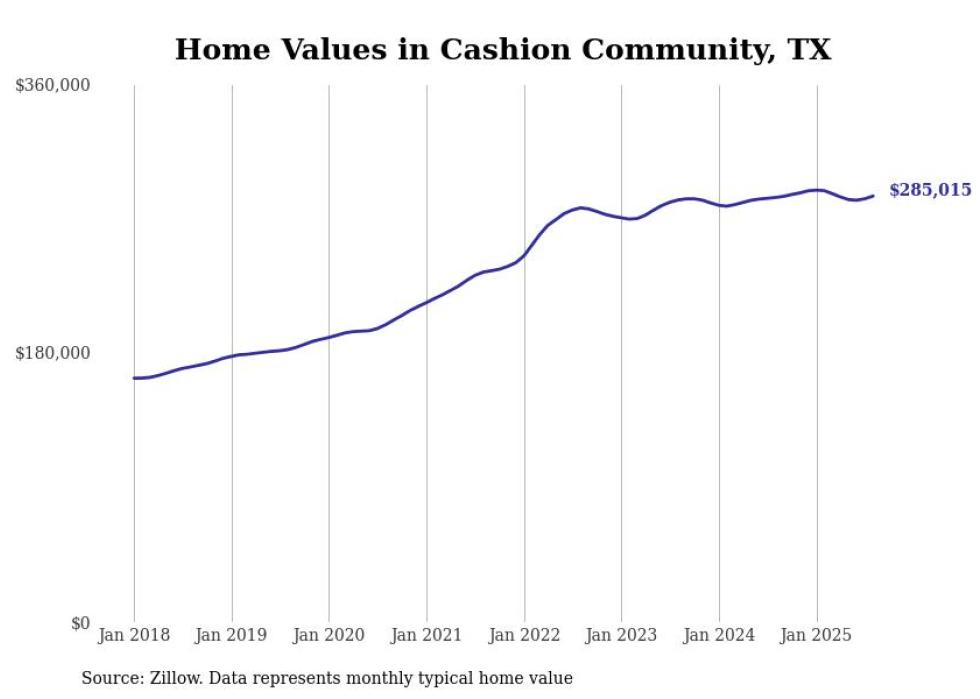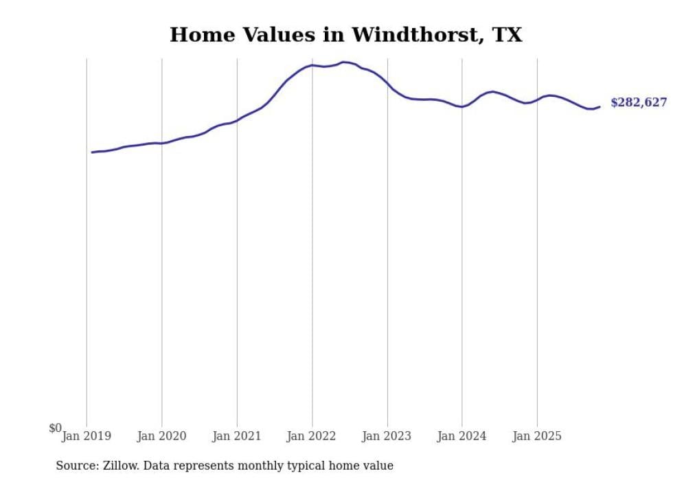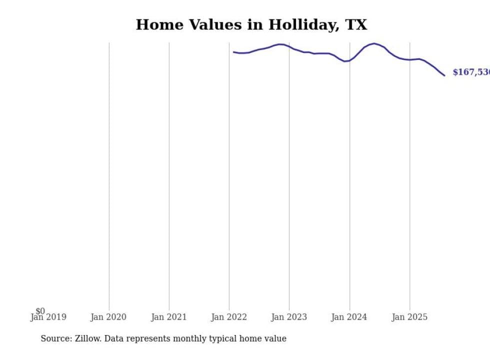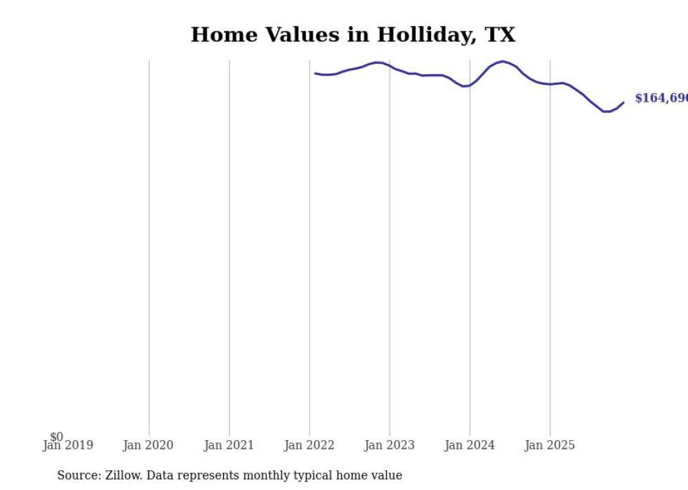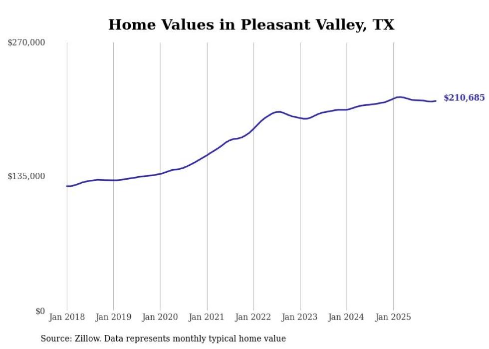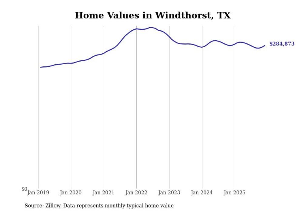 Stacker compiled a list of cities with the most expensive homes in the Wichita Falls metro area using data from Zillow. Charts show the monthly typical home value since January 2018. All 12 cities and towns with data available were included in the list.