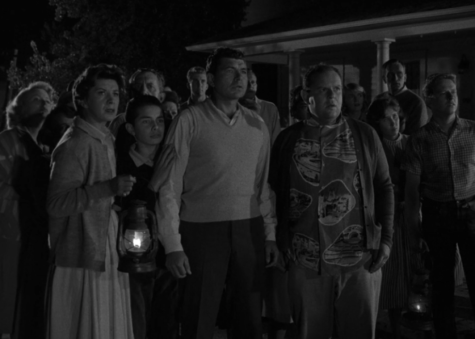 When the lights go out on a tree-lined, suburban street, someone suggests that aliens are attacking. As the weirdness continues, neighbors become suspicious of each other, escalating to mass hysteria. The aliens, who do want to control the planet, watch from a distance as humans do a perfectly fine job of destroying themselves.