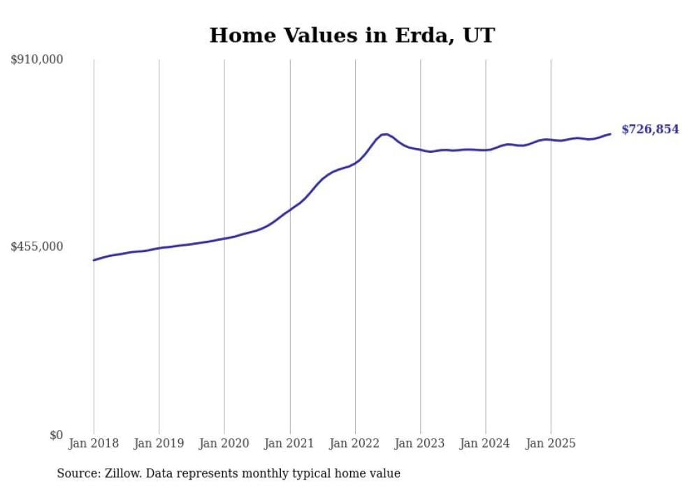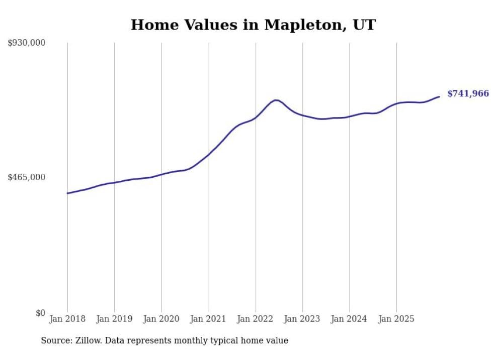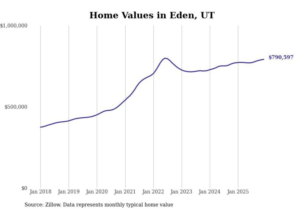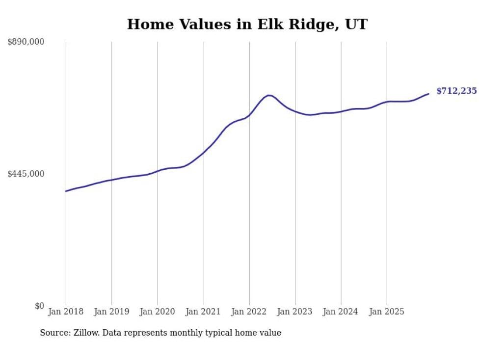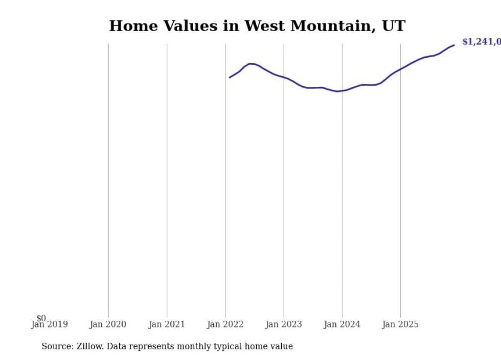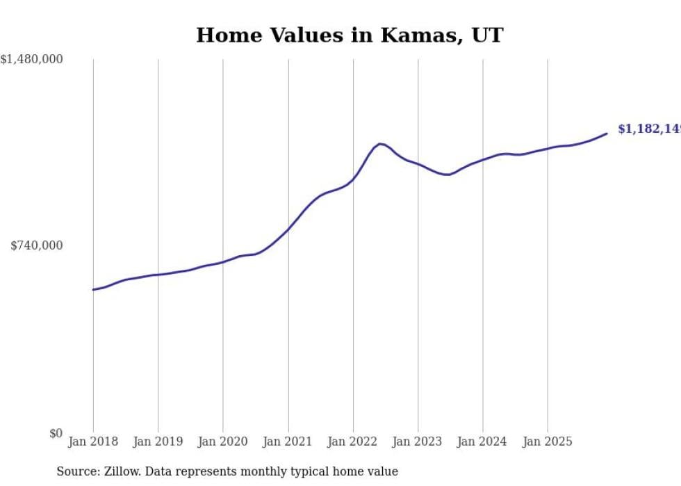 Stacker compiled a list of cities with the most expensive homes in Utah using data from Zillow. Cities are ranked by the Zillow Home Values Index for all homes as of December 2025. The charts in this story were created automatically using Matplotlib.