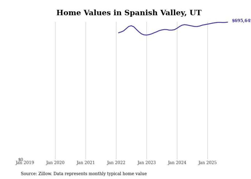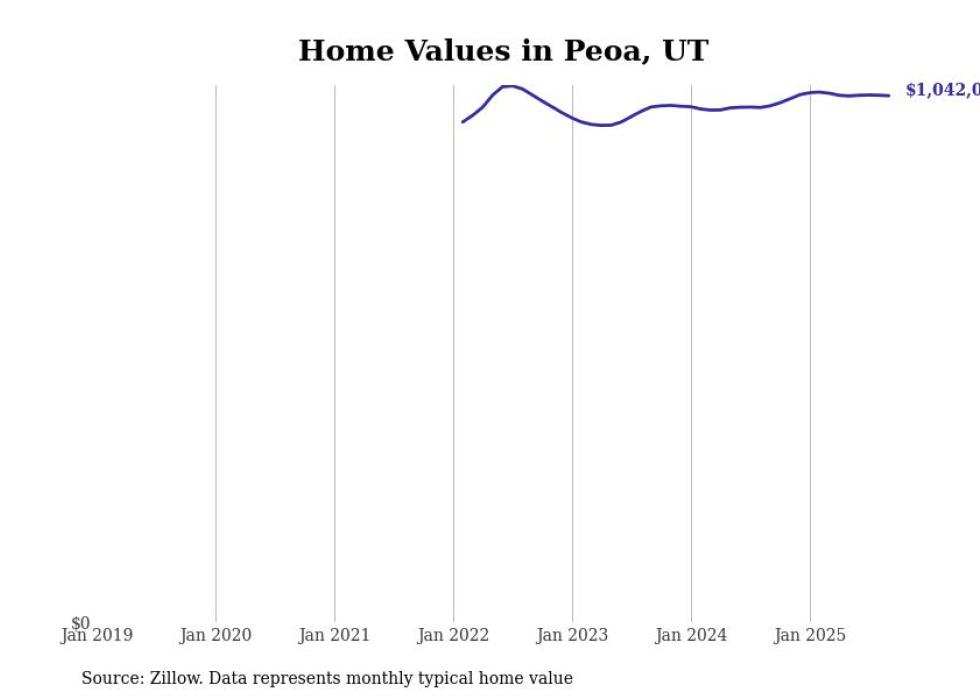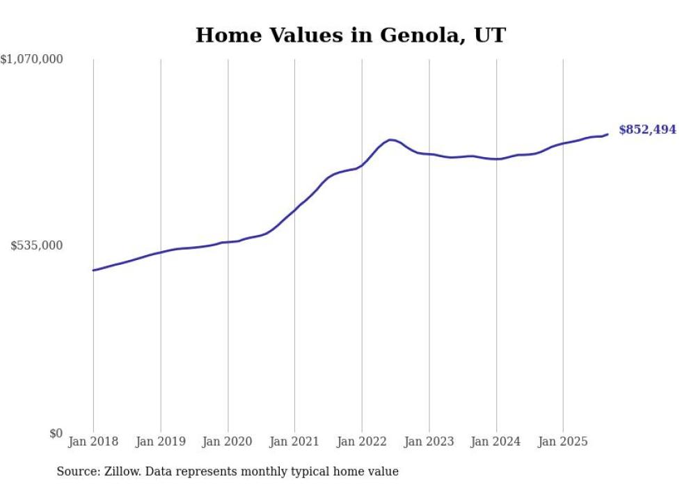 Stacker compiled a list of cities with the most expensive homes in Utah using data from Zillow. Cities are ranked by the Zillow Home Values Index for all homes as of September 2025. The charts in this story were created automatically using Matplotlib.
