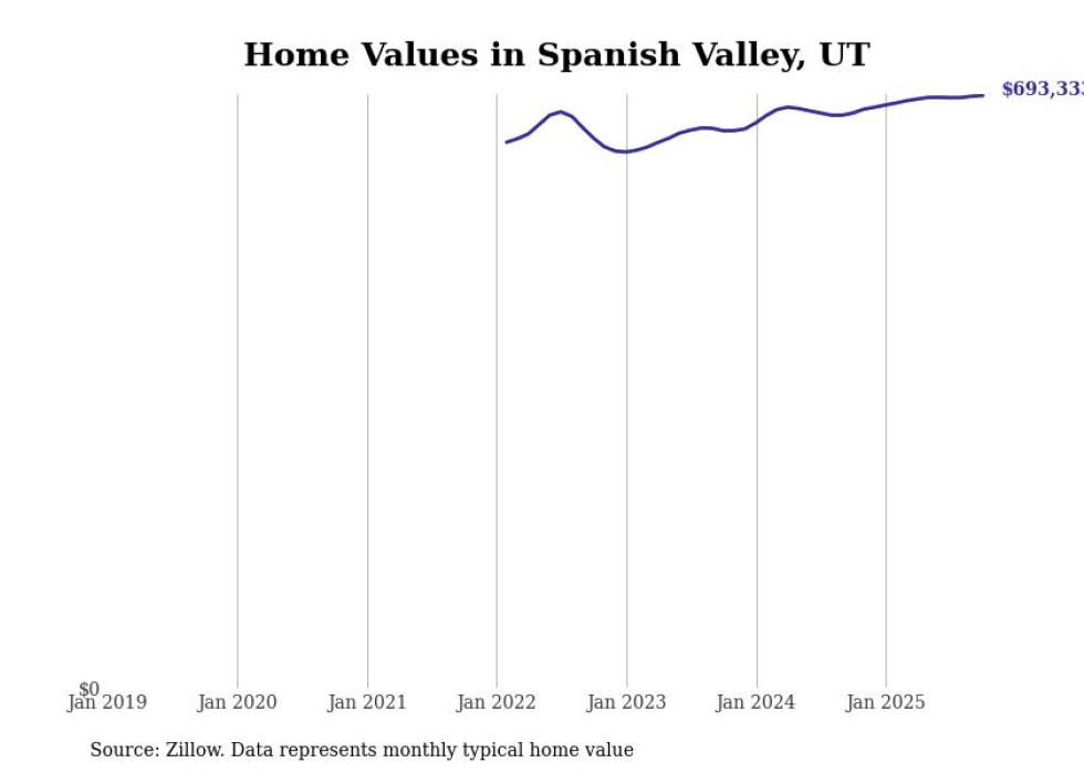 Stacker compiled a list of cities with the most expensive homes in Utah using data from Zillow. Cities are ranked by the Zillow Home Values Index for all homes as of October 2025. The charts in this story were created automatically using Matplotlib.