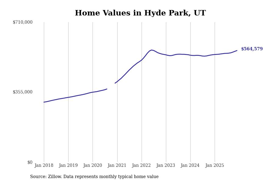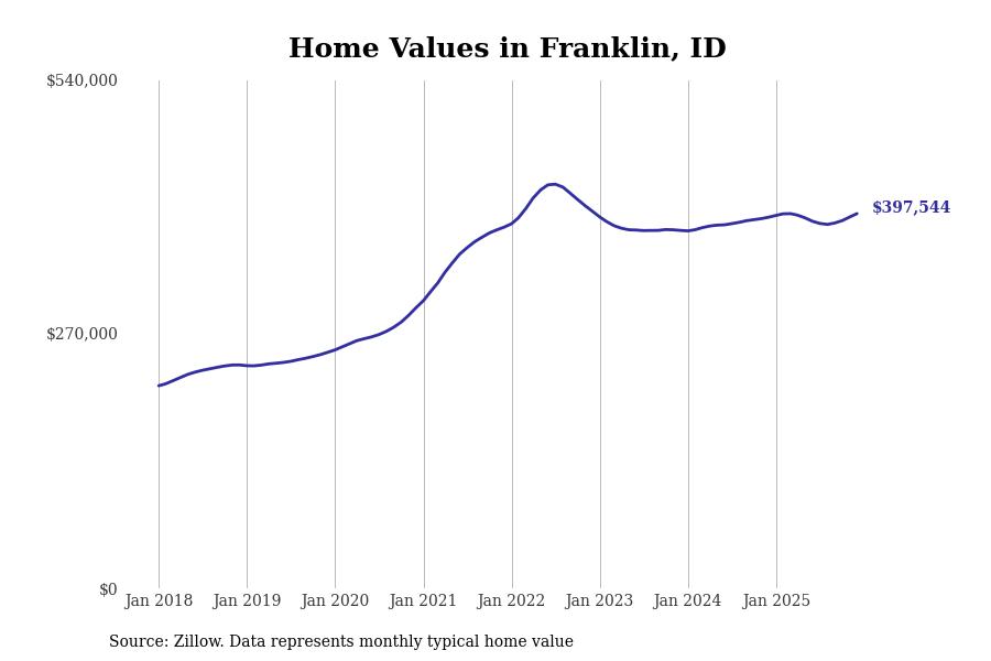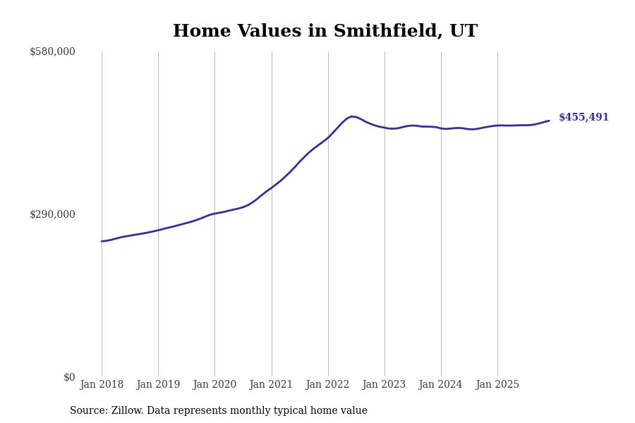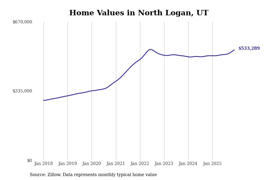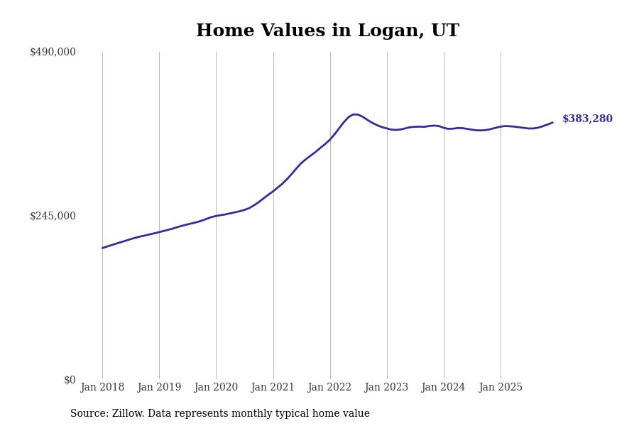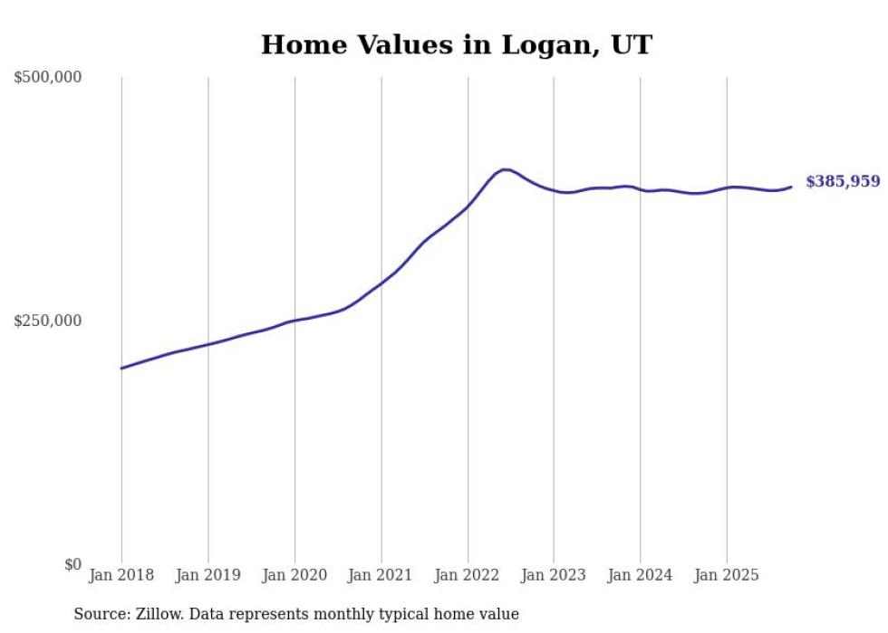 Stacker compiled a list of cities with the most expensive homes in the Logan, UT-ID metro area using data from Zillow. Charts show the monthly typical home value since January 2018.