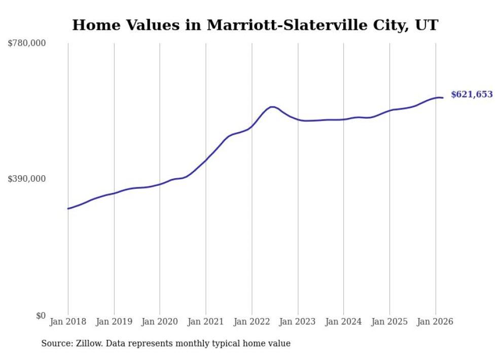 Stacker compiled a list of cities with the most expensive homes in the Ogden-Clearfield, UT metro area using data from Zillow. Charts show the monthly typical home value since January 2018.