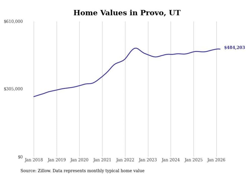 Stacker compiled a list of cities with the most expensive homes in the Provo-Orem, UT metro area using data from Zillow. Charts show the monthly typical home value since January 2018.